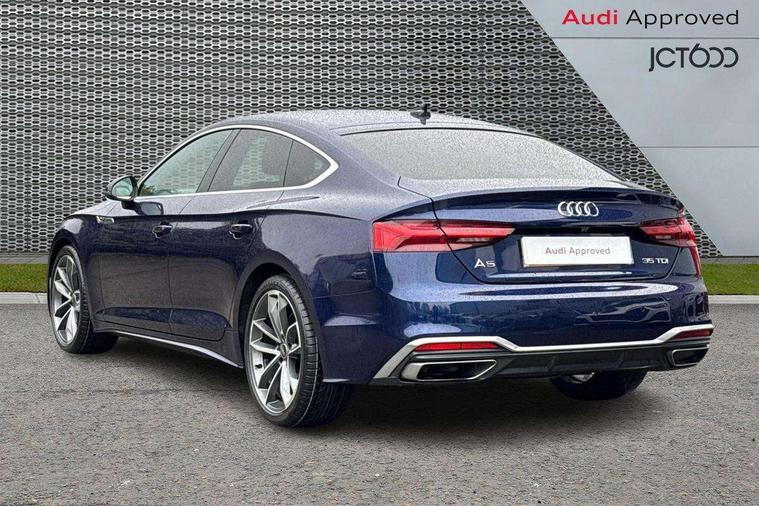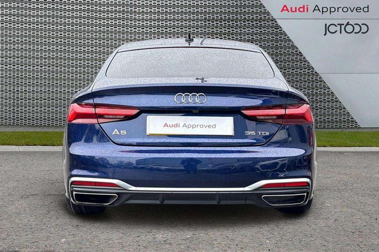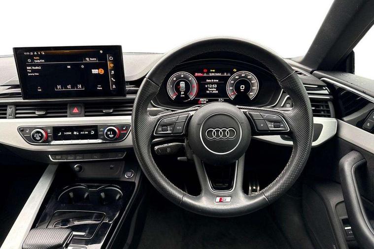 Audi connect safety and service (e-call), Audi connect with Amazon Alexa Integration, Audi drive select (Auto, Comfort, Dynamic, Efficiency and Individual), Audi parking system plus with front and rear sensors, Audi smartphone interface, Audi virtual cockpit - 12.3" full colour digital instrument cluster, vehicle/engine speed, Radio/media information+Driver assistance systems, Automatic start-stop system with coasting functionality and efficiency programme, Bluetooth interface, Electro-mechanical power steering, Email, calendar and text messages displayed via MMI, MMI nav+ with MMI touch - 10.1" high resolution MMI display, touch sensitive, 3D map, route/country info, dynamic route guide, personal route assist, Power operated tailgate, Rear view camera, Service interval indicator, Voice control system, Diesel particulate filter, Sports suspension lowered by 23mm, 8 passive loudspeakers, CD player, DAB digital radio reception, Two additional USB ports for rear passenger in rear centre console, Two SDXC card slots, Audi matrix LED headlights with LED rear lights + dynamic front and rear indicators, Auto dimming door mirrors, Auto dimming rear view mirror, Body colour bumpers, Body colour door handles, Body colour front spoiler lip, Body colour side sill trim, Body coloured door mirrors, Electric adjustable heated door mirrors, Electric folding door mirrors, Electric front windows, Front fog lights, Honeycomb structure radiator grille in grained matt black, Kerb-view function for passenger side, LED daytime running lights, LED side indicator lights integrated into door mirrors, LED third brake light, Matt aluminium silver tailpipe trim, Privacy glass, Rain and light sensors, Rear side wing doors, S line badges on front wings, S line front and rear bumpers with side skirts, S Line rear diffuser in matt titanium black with trim strip in matt aluminium silver, Side air inlets in grained matt black with matt aluminium silver inlay, Variable front intermittent wipers, Windscreen with acoustic glazing, 3 seat bench in 2nd row, 4 way electric lumbar support for driver and front passenger, 40/20/40 split folding 3 seater rear bench seat, Adjustable steering column, Black cloth headlining, Black perforated leather gearknob, Contrast stitching on seats, steering wheel and gear lever gaiter, Deluxe 3 zone electronic climate control, Front centre armrest, Front head restraints, Front/rear floor mats, Heated front seats, Illuminated door sill trim with S logo, ISOFIX child seat mounting and top tether, Luggage compartment mat, Manual seat adjustment, Rear centre armrest, Rear headrests, Single front passenger seat, Stainless steel pedals, Sunvisors with vanity mirrors, LED interior light pack - A5/RS5, 3x3 point rear seatbelts, 6 airbags - Driver, front passenger, curtain and side airbags, Electromechanical parking brake, Electronic Stabilisation Control (ESC) including ABS, ASR and EDL, Front passenger airbag deactivation, Height adjustable front seatbelts, Hill hold assist, Manual child lock in rear doors, Multi collision brake assist, Pop-up bonnet for pedestrian protection, Pre sense city, Seatbelt monitoring, Tyre pressure warning, Variable restraint system, Warning triangle and first aid kit, Anti theft alarm system, Anti theft wheel bolts, Immobiliser, Keyless Go, Remote central locking, Matt brushed aluminium inlays, Tool kit, Tyre repair kit,