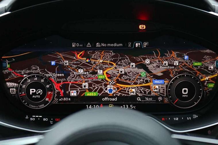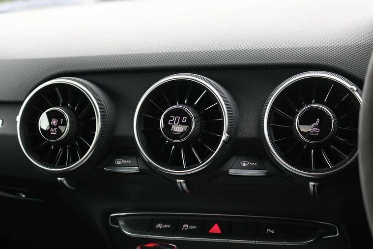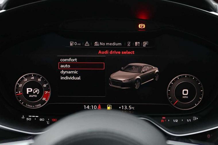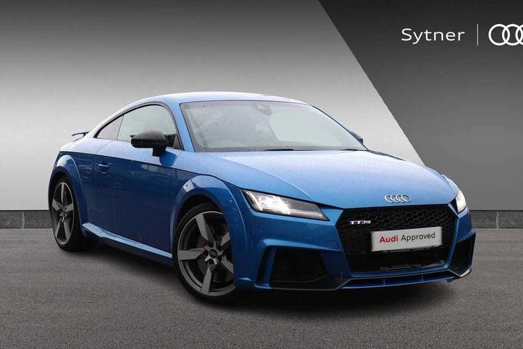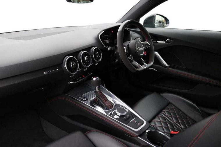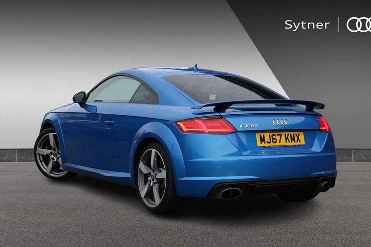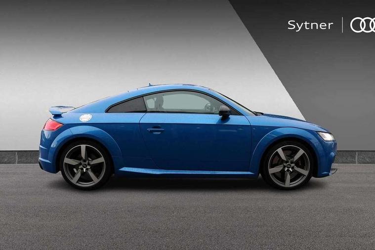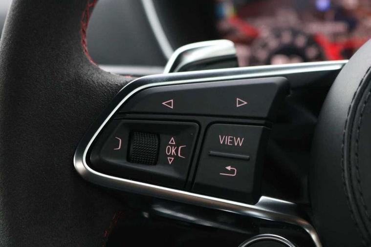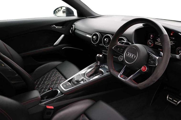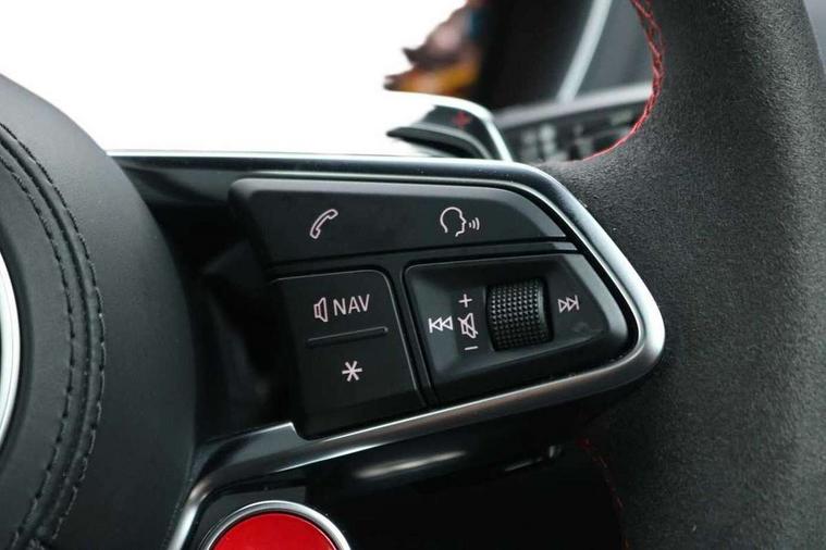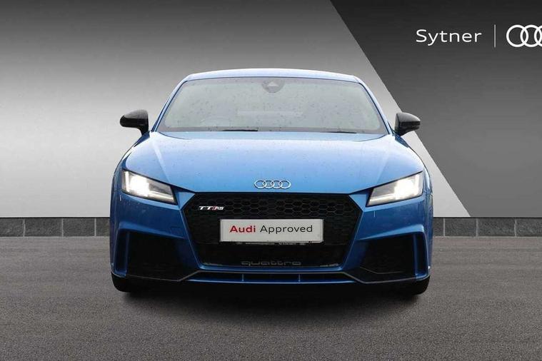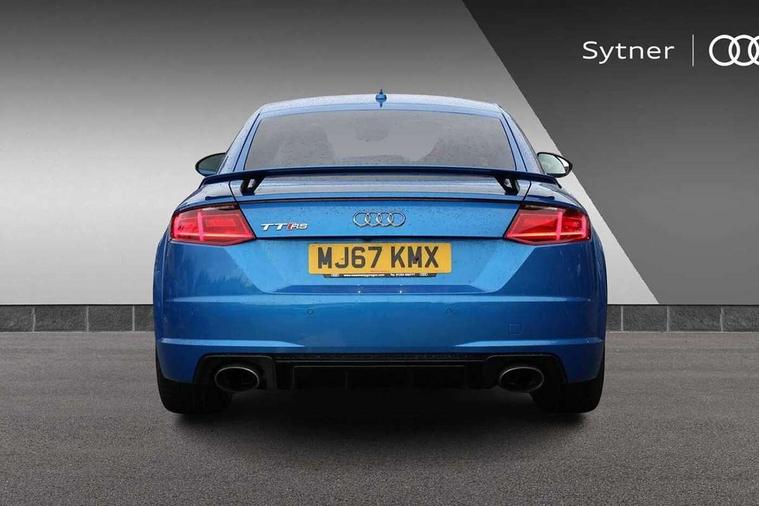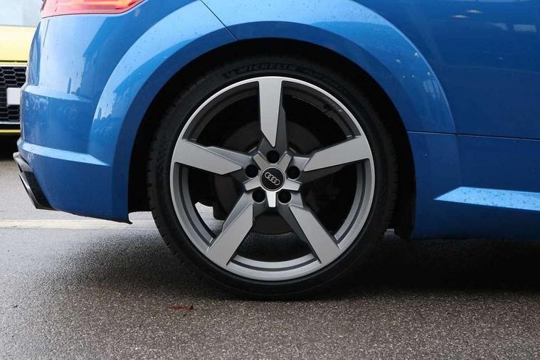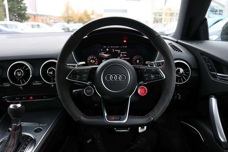 Audi active lane assist, Audi connect, Audi drive select, Audi parking system plus with front and rear sensors, Audi virtual cockpit - 12.3" high-resolution LCD display with fully customisable instrument cluster, Cruise control + speed limiter, MMI navigation plus with MMI touch, MMI touch panel, Mobile phone preparation with bluetooth interface, Progressive power assisted steering, Service interval indicator, TT RS specification sports suspension, Audi music interface, Audi sound system, Auxiliary input socket, Bluetooth audio streaming, DAB Digital radio, MMI Radio with CD player and SD/XC card slot, All weather LED headlights, Audi Beam uses LEDs to project the Audi Sport logo, Auto dimming rear view mirror, Auto headlight range control, Body colour bumpers, Electric front windows, Front spoiler, Green tinted heat insulating glass, LED daytime running lights, Rain and light sensors, RS design body styling, Sunband for windscreen, Twin oval tailpipes, 3 spoke alcantara sports leather multi-function steering wheel including paddle shift, Alcantara gear knob gaiter, Aluminium door sill trims, Black headlining, Deluxe auto air conditioning with integrated digital display, Electric lumbar support, Extended aluminium look with stainless steel pedals, Front centre armrest, Front head restraints, Front passenger seat isofix location point, Heated front seats, Height adjustable driver's seat, Height/reach adjust steering wheel, Interior elements in slate grey, ISOFIX on outer rear seats, Split folding rear seat, Top tether anchor plate for isofix child seat, LED interior light pack - TT/TT RS, Non smoking pack - TT/TT RS, 3 point front seat belts, ABS, ASR traction control, Curtain airbags, Driver/Front Passenger airbags, EDL traction control, Electromechanical parking brake, ESP, First aid kit, Front passenger airbag deactivation, Front side airbags, Head airbags, Seatbelt warning, Warning triangle, Anti theft alarm, Immobiliser, Keyless Start, Locking wheel bolts, Remote central locking, Tyre repair kit,