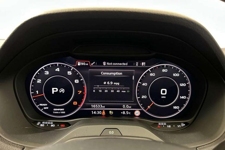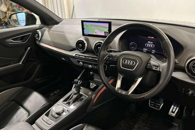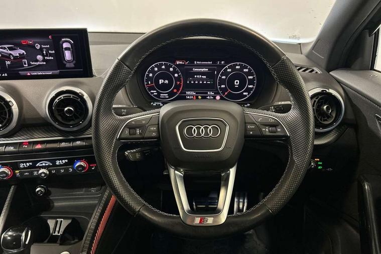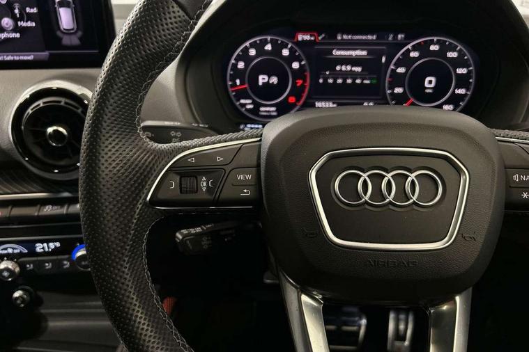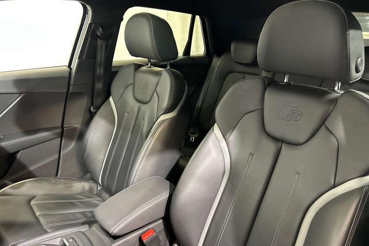 Adaptive cruise control with active lane assist/emergency assist, Audi connect navigation and infotainment includes innovative services, Audi connect remote and control connects your vehicle to your smartphone, Audi drive select, Audi phone box with wireless charging, Audi side assist including rear cross-traffic assist and audi pre sense basic, Audi smartphone interface, Audi virtual cockpit, Automatic start/stop system with recuperation, Bluetooth interface includes bluetooth audio streaming, Camera based traffic sign recognition, MMI navigation plus with MMI touch, Power operated tailgate, Progressive steering, Traffic jam assist with emergency assist, Adaptive suspension with damping control, 2 x SDXC card reader, DAB Digital radio, DVD Drive, Auto dimming rear view mirror, Black window trims, Body colour door mirrors, Brake lights, tail lights, reversing lights, and rear number plate lights in LED technology, Brilliant black exterior mirror caps, Bumper in full body colour paint finish, Electrically adjustable, folding, auto dimming and heated door mirrors with integrated LED side indicators, Front windscreen with grey tinted sunband, Matrix headlights with LED rear lights, dynamic rear indicators, cornering lights, Panoramic glass sunroof, Privacy glass - dark tinted rear and rear side windows from B-pillar backwards, Wheel arch trims in manhattan grey, 3 spoke leather trimmed multi-function steering wheel with height and reach adjustable, 4-way electric lumbar support for front seats including seat height adjustment for both front seat, 40/20/40 split folding rear seat bench with centre armrest and cupholder, Black cloth headlining, Black with contrasting stitching on the armrests, Door armrest and knee pads in artifical leather, Dual zone electronic climate control, Fine Nappa leather upholstery with S embossed logo + front sport seats, Front and rear head restraints, Front centre armrest, Front/rear floor mats, Illuminated door sill trims with S logo, ISOFIX child seat mounting for front passenger with airbag deactivation and outer rear seat including top tether attachment point for outer rear seats, Stainless steel pedals, Black styling pack - Q2, Comfort and sound pack - Q2, LED interior lighting pack advanced - Q2, Plus pack - Q2, Storage pack - Q2, 3x3 point rear seatbelts, 6 airbags - Front, curtain and front side airbags, Electromechanical parking brake, Electronic stabilisation control including ABS, ASR and EDL, Hill hold assist, Pre-sense front with pedestrian recognition, Seatbelt monitoring, Tyre pressure warning light, Warning triangle and first aid kit, Advanced key, Anti theft alarm, Anti theft wheel bolts, Electronically operated child locks, Aluminium interior element, Format design illuminated inlays, 19" 5 arm turbine design audi sport alloy wheels in matt titanium grey diamond cut finish, Tool kit,