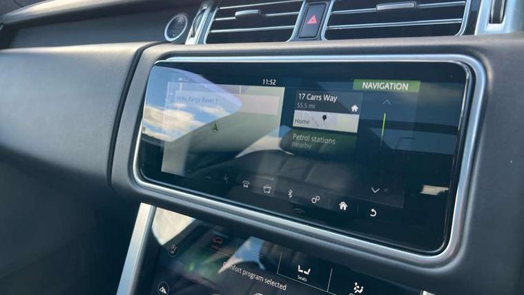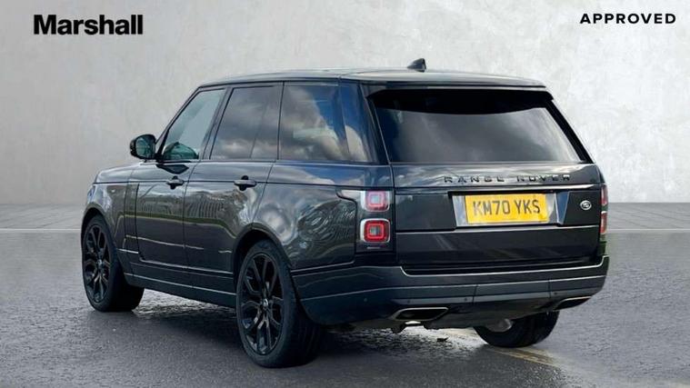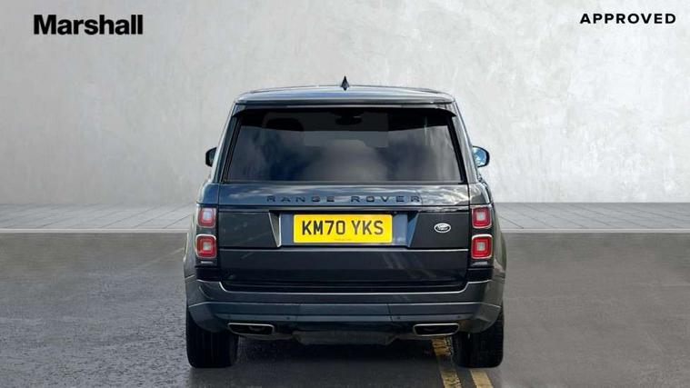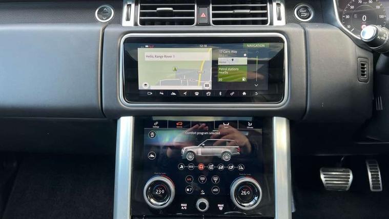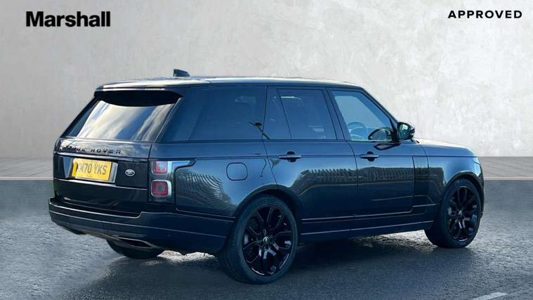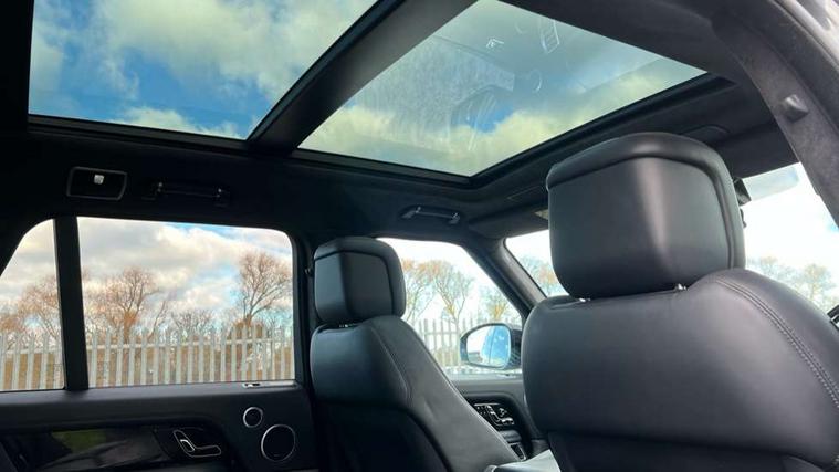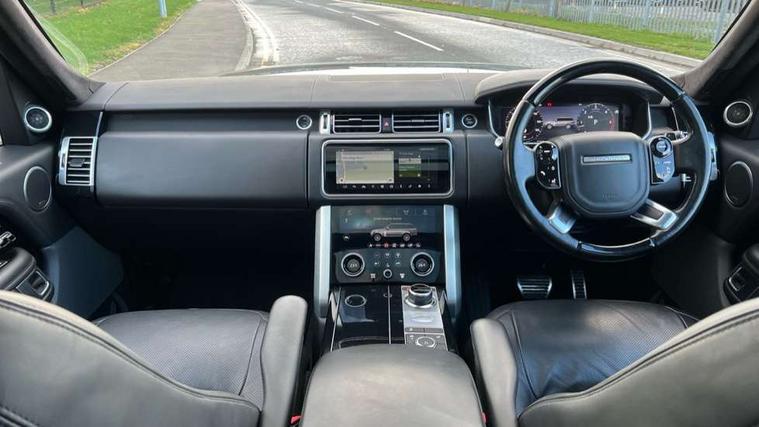 Android Auto, Apple car play, Bluetooth mobile phone connection, Dynamic route guidance, Electric power assisted steering (EPAS), Interactive Driver display instrument cluster, Lane departure warning system, Navigation pro system with 10" touch screen, app interface and media storage, Powered gesture tailgate/boot lid, Push button starter, Rear camera wash, Rotary shifter, Service interval indicator, Touch pro duo system, Trip computer, Voice control system, 8 speed automatic transmission, Adaptive dynamics, All Wheel Drive (AWD), Automatic access height, Diesel particulate filter, Electronic air suspension, Twin speed transfer box, Digital Audio Broadcast radio-DAB, Digital TV, InControl app, USB socket, Acoustic windscreen, Auto dimming interior rear view mirror, Auto self levelling headlights, Automatic headlights, Body coloured bumpers, Centre high mounted stop light, Door/quarter lights in toughened plate glass, Electric windows with one touch open/close and anti trap, Electrical towing preparation, Follow me home headlights, Front and rear recovery eyes, Front fog lights, Headlamp power wash, Heated rear window, Heated windscreen includes heated washer jets, Illuminated metal treadplates with brand name script, Integrated twin tailpipes, LED rear lamps, LED tail lights, No badges, Power fold, auto-dimming, heated door mirrors with memory and approach lights, Power front/rear windows with global close, Privacy glass, Rain sensing windscreen wipers, Rear fog lights, Rear wash/wipe, Side repeater indicators in mirror, Sliding Panoramic roof includes gesture sunblind and auto sunblind, Trailer stability assist, 12V power point in luggage area, 12V power sockets, 3 rear headrests, Black gearshift paddles, Bright metal pedals, Carpet mats, Centre console with storage and armrest, Configurable Ambient interior lighting, Customer configurable single point entry, Driver and passenger front seat armrests, Easy boot loading, Electrically adjustable steering column, Folding rear seats, Front and rear cupholders, Front and rear grab handles, Front headrests, Front seat back map pockets, Heated steering wheel, Loadspace cover, Loadspace light, Lockable glovebox, Luggage compartment lighting, Luggage tie down in loadspace, Perforated Windsor leather upholstery, Rear centre armrest, Rear ISOFIX, Soft close doors, Suede cloth headlining, Through load facility, Twin blade sunvisors with Illuminated vanity mirrors, Black exterior pack - Range Rover, 3 rear 3 point seatbelts, Anti-lock braking system (ABS), Auto lock system when vehicle in motion, Cornering brake control (CBC), Curtain airbags, Customer configurable autolock, Driver/front passenger head+thorax airbag, Drivers knee airbag, DSC - Dynamic Stability Control, Electronic brake force distribution, Electronic parking brake, Electronic traction control, Emergency braking, ESP, Front airbags with passenger seat occupant detector, Front seatbelt pretensioners with force limiters, Front side airbags, Grey anodised brake calipers, Height adjustable front seatbelts, Hill descent control, Hill launch assist, Low traction launch, Power operated child locks, Roll stability control, Tyre pressure monitoring system (TPMS), Immobiliser, Intrusion sensor and alarm, Keyless entry, Locking wheel nuts, Remote central locking,