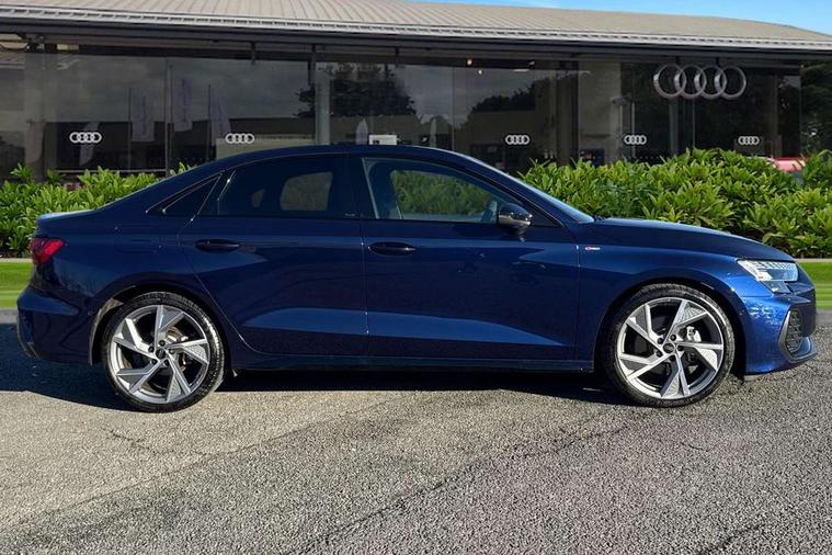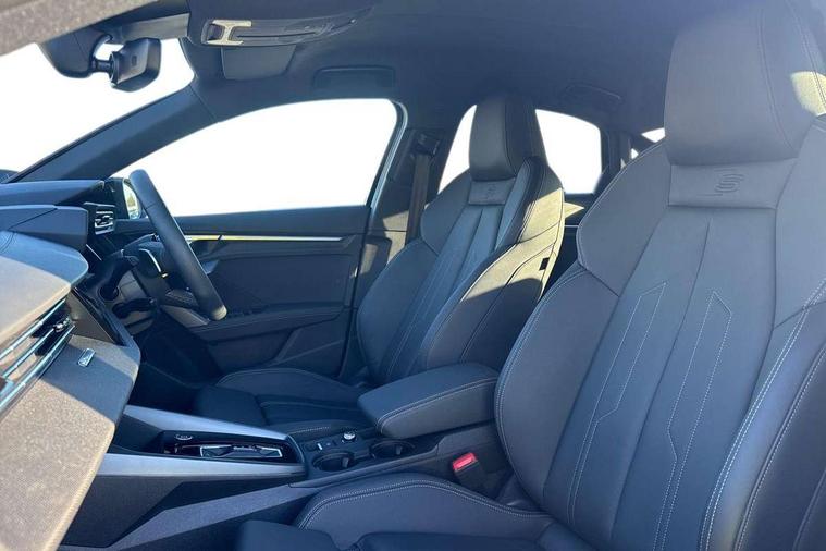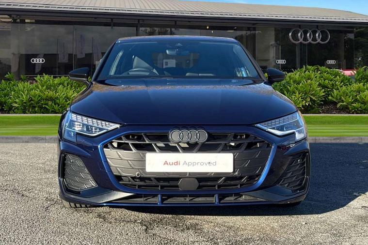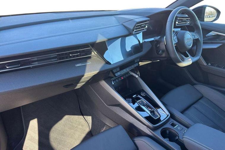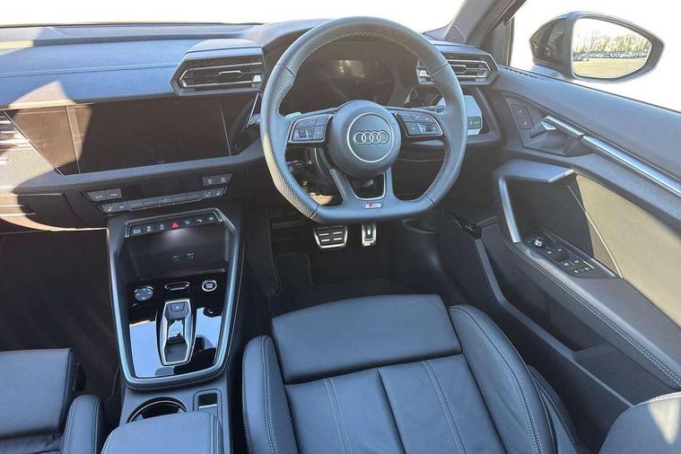 Adjustable speed limiter, Audi drive select, Audi smartphone interface with app store includes wireless Apple carplay, Android auto and Amazon alexa integration, Audi virtual cockpit plus - 12.3" full HD resolution dynamic digital instrument cluster, Automatic start/stop system with recuperation, Bluetooth interface, Camera based traffic sign recognition, Collision avoidance assistant, Cruise control, Distraction and Fatigue warning, e-Call (emergency call), Electromechanical power speed sensitive steering, Lane departure warning system, MMI Navigation Plus with high resolution 10.1" colour touch screen display, Park Assist with parking system Plus, Service indicator, Trip computer, Voice control system with natural language interaction, Sports suspension, Audi Phonebox light with wireless charging, Audi sound system - 10 loudspeakers including centre loudspeaker and subwoofer, DAB Digital radio, USB ports with charging function in the rear, Acoustic glass windscreen, Anthracite grey Audi rings (front and rear), Audi beam uses LEDs to project the Audi logo onto the ground as you exit your A3, Auto dimming frameless rear view mirror, Black accents front and rear bumpers, Black accents in the area of the Audi single frame grille, Black accents window trims strips, Electrically adjustable/heated/folding/auto dimming door mirrors with integrated LED indications + kerb view function for passenger side, Exterior model badging, Front electric windows, Heat insulating glass windscreen, Illuminated door sills with aluminium inserts at the front with S logo, LED 3rd brake light, LED daytime running lights, LED headlights with LED rear lights and dynamic rear indicators, Light and rain sensors, Privacy glass - dark tinted rear window, rear door and side windows, Rear boot, Rear electric windows, Rear side wing doors, 12V socket and storage compartment in front centre console, 3 seat bench in 2nd row, 3 spoke flat bottomed leather multifunction sport steering wheel with gear shift paddles, 3-zone deluxe automatic air conditioning, 4 way electrically adjustable lumbar support for driver and front passenger, 40/20/40 split folding rear seat bench, Black cloth headlining, Front and rear centre armrest in artificial leather, Front and rear centre armrest in artificial leather with contrasting stitching on armrests and instrument panel, Front and rear headrests, Front/rear floor mats, Heated front seats, Height and reach adjustable steering wheel, Manual boot compartment lid, Manually adjustable front seats, Rear cup holders, S badging on the steering wheel, Seat side bolsters, Single front passenger seat, Stainless steel pedals and front footrest in black, Twin leather upholstery with front sports seats S embossed logo, Aluminium interior elements pack - A3, Multi-coloured LED interior lighting package - A3 Black Edition, 3x3 point rear seat belts, Driver and front passenger airbag with passenger airbag deactivation, Electronic Stabilisation Control (ESC) including ABS, ASR and EDL, First aid kit with warning triangle and 2 safety vests, Front side airbags with head airbags and interaction airbag, Hill hold assist, Pre-sense front with pedestrian and cyclist detection, Seatbelt monitoring, Tyre pressure loss indicator, Anti theft alarm, Anti-theft wheel bolts, Electronically operated child locks, Immobiliser, Remote central locking with safelock, Inlays in black Impressum woven textile,