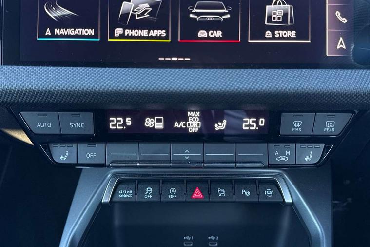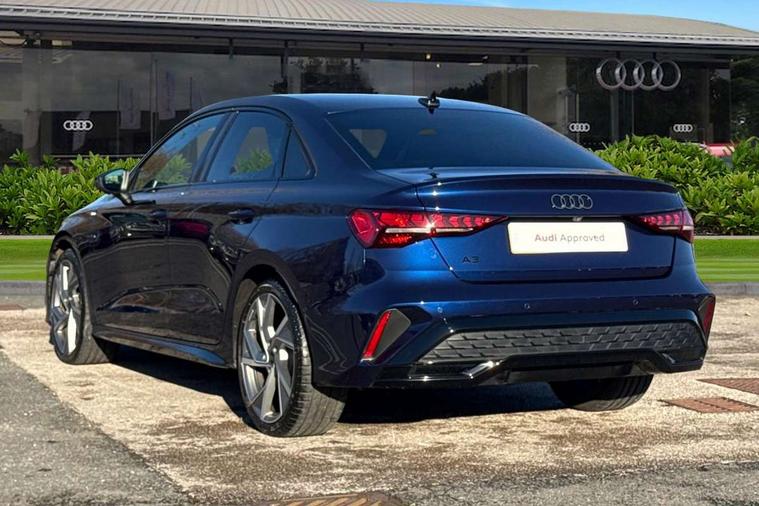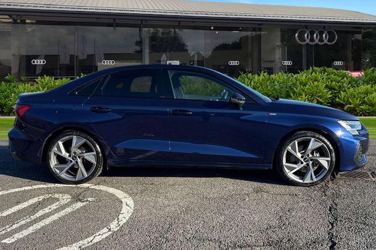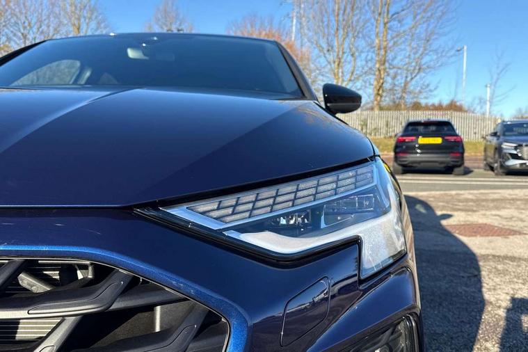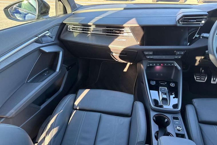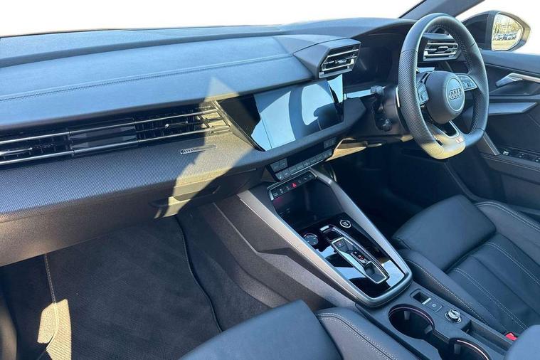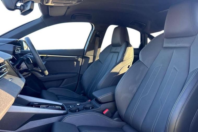 Adjustable speed limiter, Audi drive select, Audi smartphone interface with app store includes wireless Apple carplay, Android auto and Amazon alexa integration, Audi virtual cockpit plus - 12.3" full HD resolution dynamic digital instrument cluster, Automatic start/stop system with recuperation, Bluetooth interface, Camera based traffic sign recognition, Collision avoidance assistant, Cruise control, Distraction and Fatigue warning, e-Call (emergency call), Electromechanical power speed sensitive steering, Emergency assist, Lane departure warning system, MMI Navigation Plus with high resolution 10.1" colour touch screen display, Park Assist with parking system Plus, Service indicator, Trip computer, Voice control system with natural language interaction, Sports suspension, Audi Phonebox light with wireless charging, Audi sound system - 10 loudspeakers including centre loudspeaker and subwoofer, DAB Digital radio, USB ports with charging function in the rear, Acoustic glass windscreen, All weather light, Anthracite grey Audi rings (front and rear), Audi beam uses LEDs to project the Audi logo onto the ground as you exit your A3, Auto dimming frameless rear view mirror, Automatic dynamic range control, Black accents front and rear bumpers, Black accents in the area of the Audi single frame grille, Black accents window trims strips, Dipped beam, main beam, position light and turning light, Electrically adjustable/heated/folding/auto dimming door mirrors with integrated LED indications + kerb view function for passenger side, Exterior model badging, Front and rear side air inlets in grained matt black with dark liquid chrome frame, Front electric windows, Heat insulating glass windscreen, Illuminated door sills with aluminium inserts at the front with S logo, Intersection light, LED 3rd brake light, LED brake lights, LED daytime running x3, LED headlights with LED rear lights and dynamic rear indicators, LED rear number plate lights, LED reverse light, LED tail lights, Light and rain sensors, Manoeuvring light, Motorway light, Privacy glass - dark tinted rear window, rear door and side windows, Rear boot, Rear diffuser and grill in grained matt black with inlay in dark liquid chrome, Rear electric windows, Rear side wing doors, Static Cornering lights, 12V socket and storage compartment in front centre console, 3 seat bench in 2nd row, 3 spoke flat bottomed leather multifunction sport steering wheel with gear shift paddles, 3-zone deluxe automatic air conditioning, 4 way electrically adjustable lumbar support for driver and front passenger, 40/20/40 split folding rear seat bench, Black cloth headlining, Black front and rear floor mats, Front and rear centre armrest in artificial leather with contrasting stitching on armrests and instrument panel, Front and rear headrests, Heated front seats, Height and reach adjustable steering wheel, Manual boot compartment lid, Manually adjustable front seats, Rear centre armrest with cupholder, S badging on the steering wheel, Seat side bolsters, Single front passenger seat, Stainless steel pedals and front footrest in black, Twin leather upholstery with front sports seats S embossed logo, Aluminium interior elements pack - A3, 3x3 point rear seat belts, Driver and front passenger airbag with passenger airbag deactivation, Electronic Stabilisation Control (ESC) including ABS, ASR and EDL, First aid kit with warning triangle and 2 safety vests, Front side airbags with head airbags and interaction airbag, Hill hold assist, Pre-sense front with pedestrian and cyclist detection, Seatbelt monitoring, Tyre pressure loss indicator, Anti theft alarm, Anti-theft wheel bolts, Electronically operated child locks, Immobiliser, Remote central locking with safelock, Black dashboard,