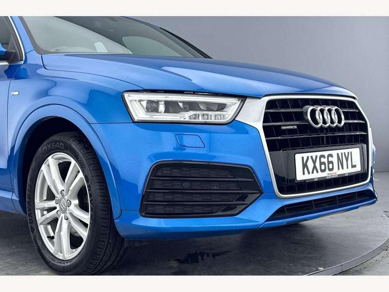 6.5" colour display screen, Audi drive select, Low washer fluid indicator, MMI - Multi Media Interface control system, On board computer, PAS, Remote electric boot opening/closing, Service interval indicator, Voice control system, Diesel particulate filter, Audi music interface, DAB digital radio module, Acoustic windscreen, Aluminium window surround, Body colour door mirrors, Body coloured bumpers, Chrome exhaust tailpipe, Chrome fog light surround, Chrome grille, Coming home function, Door mirror integrated indicators, Front and rear electric windows, Front fog lights, Heated windscreen washer jets, LED daytime running lights, LED headlights with headlight washers, LED rear lights, Light and rain sensor for auto activation of lights and windscreen wipers, Loading sill protector in stainless steel, Rear wiper, S Line body styling, Sunband for windscreen, Towbar preparation, 12V socket in rear centre console, Aluminium door sill trims, Black cloth headlining, Dual zone climate control, Electric front lumbar adjustment, Front and rear headrests, Front and rear velour floor mats, Front centre armrest with storage compartment and angle adjustment, Front sports seats, Height/reach adjust steering wheel, ISOFIX on front passenger and rear outer seats, Jack and tool kit, Retractable luggage cover, Split fold rear seat, Under floor storage in luggage area, 3x3 point rear seatbelts, ABS+Electronic Brake force Distribution, Curtain airbags, Driver and passenger airbags, Driver and passenger side airbags, EDL + ASR, Electrically operated child locks on rear doors, Electromechanical parking brake, ESP, First aid kit, Front passenger airbag deactivation, Seatbelt warning light, Tyre pressure monitoring system, Warning triangle, Locking wheel bolts, Remote central locking, Thatcham category 1 alarm + immobiliser, Matt brushed aluminium fascia and door trim inlays,