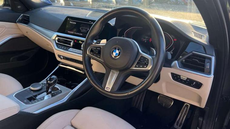 Active guard plus, Attentiveness assist, Auto start-stop, BMW iDrive controller on centre console, BMW Live Cockpit Professional sat nav system including 10.25" high resolution display and Intelligent Voice Assistant, BMW Online services, BMW Teleservices, Brake pad wear indicator in front and rear, Check Control warning system for monitoring of lights and door/luggage compartment open warning, Condition based service, Front/rear park distance control, Instrument cluster with speedometer with mph readout, tachometer, fuel gauge and oil temperature gauge, Oil sensor for level and grade, On board computer - average speed+fuel consumption, service interval, clock/date, odometer/trip meter, outside temperature display and ice warning, Optimum shift indicator, Pesonal profile, Variable sport steering, Battery cut-out switch, Drive performance control with ECO PRO comfort + sport mode, Electronic differential lock, Larger capacity fuel tank, Sport automatic transmission with steering-wheel mounted gearshift paddles and launch control, DAB tuner, Acoustic glazing, Active airstream chrome frame kidney grille with 8 high gloss black vertical slats, Automatic headlight beam throw control with load dependent regulating reaction, dynamic compensation of braking dive and acceleration squat, Black roof mouldings, Body colour - fuel filler flap, front and rear bumpers, door handles and mirror caps with integrated turn indicator + bottom segment in matt black, Dynamic brake lights, Extended LED headlights, Exterior mirrors - electrically folding with anti-dazzle, Front and rear bumper system with replaceable deformation elements, Front and rear electric windows with open and close fingertip control, anti trap facility and comfort closing, Front black door sill finishers with BMW designation, Green tinted heat protection glazing, Interior rear view electrochromatic mirror with automatic anti dazzle function, LED front fog lights, Left and right split exhaust tailpipes, Lightweight engineering, M aerodynamic body styling, M designation on left and right front side panels, M designation side badges, Matt black exterior B pillar, Model designation on right side of tailgate, Rain sensor with automatic headlight activation, Shark fin antenna, Two part LED tailights in L-shape with components in smoked glass, brake light, LED turn indicator and rear fog light, Visible VIN plate, Welcome lights in interior and door handle area, Windscreen wipers with integrated washing jets, 12V power socket in front storage compartment, 2 front cupholder in centre console with clamping elements and matt black inlay, 3 rear seats with non folding headrests with 3 point seat belts, 3 spoke M leather steering wheel, 4 pieces lashing eyelets in luggage compartment, 40:20:40 split folding rear bench seat, Ambient lighting, Anthracite headlining, Armrest integrated in front and rear door trim + front centre console armrest, Centred top Luggage compartment lights, Four grab handles integrated in roof lining, Front and rear door pockets, Front and rear velour floor mats, Front sport seats, Heated driver and front passenger seats, Height adjustable mechanically and infinitely variable steering column, Illuminated glove compartment with separate small compartment, Interior lighting - front centre over interior mirror with soft light, rear centre and front and rear footwell lighting, Rear centre armrest with 2 cupholders, Rear centre console with storage compartment and ventilation grille, Steering column length adjustment lever, Sunvisors with vanity mirrors and ticket pocket, Three zone automatic air conditioning, Through loading system with 40/20/40 split folding rear seat, Toolkit located in luggage compartment, Vernasca leather upholstery, Connected pack professional - 3 Series Saloon/Touring, M Aerodynamics pack - 3 Series Saloon/Touring, 2 tone horn, ABS, Automatic Stability Control (ASC), BMW emergency call, Brake assist function, Brake drying, Brake energy regeneration, Braking pre-tensioning, Child proof locking system in rear door, Child seat ISOFIX attachment rear outer seats, Cornering brake control (CBC), Crash sensor activating central locking release, hazard warning lights, fuel cut off, interior lighting + activation of safety battery terminal clamp, Driver and front passenger front and side airbags with passenger deactivation and ITS front and rear head airbags, Dynamic brake control, Dynamic Traction Control - DTC, Electromechanical parking brake with automatic drive away release and auto hold function, Hill start assist, Seat belt security check for driver and front passenger, Side impact protection, Three 3 point seat belts on all seats including front belt stopper, pyrotechnic belt tensioners and belt force limiters, Tyre pressure monitoring with three level warning strategy, Variable torque distribution, Ventilated front and rear disc brakes, Warning triangle and first aid kit, Alarm system (Thatcham 1) with remote control and electronic engine immobiliser, Central locking switch for all doors, fuel filler cap and luggage compartment, Remote control with integrated key one button open/close vehicle and windows, sole opening of the luggage compartment lid and panic mode, Selectable automatic lock when driving away, Start/stop button with Comfort Go keyless engine start and auto Start/stop deactivation button, Vehicle key with M specific designation, Reduced rolling resistance tyres,