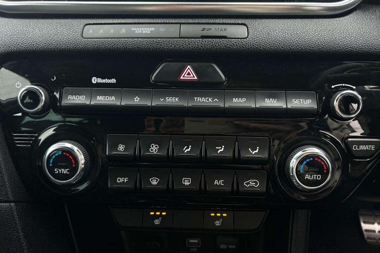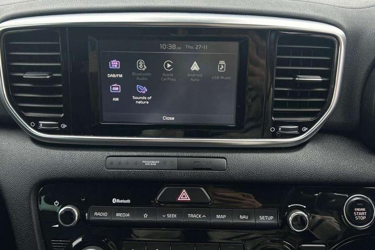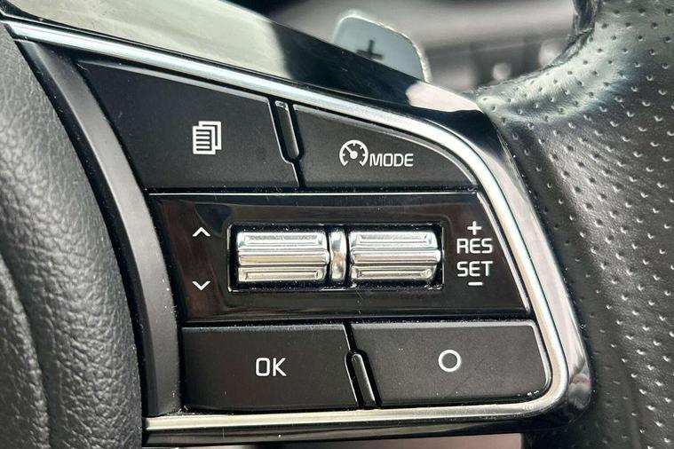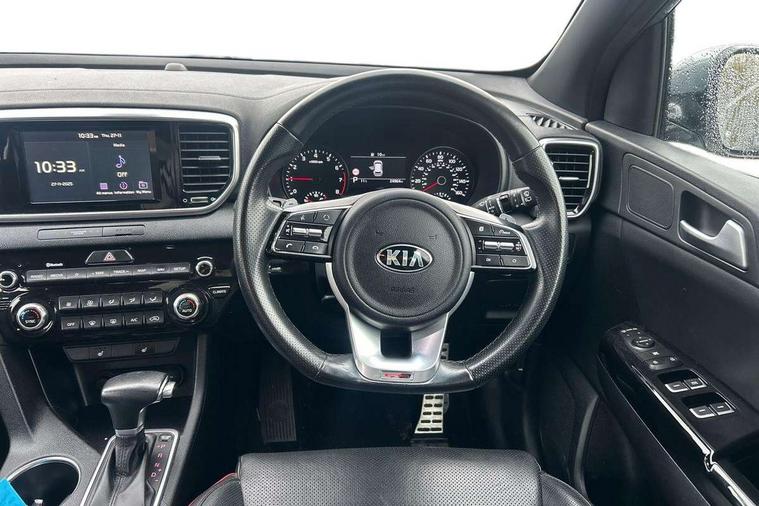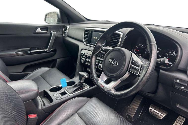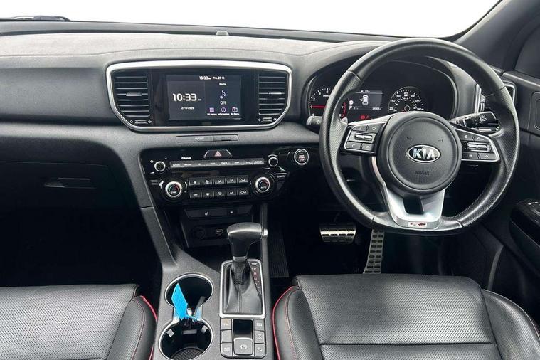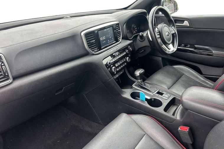 4.2" supervision colour cluster display, 7" touchscreen satellite navigation with European mapping and traffic messaging channel, Android auto with voice control, Apple car play with voice control, Bluetooth connectivity with voice control, Cruise control + speed limiter, Drive mode selector, Driver attention warning, Emergency stop signalling system, Front parking sensor, Kia connected services featuring TomTom live, Lane keep assist, Rear parking sensor, Reversing camera, Speed limit information, Speed sensitive power steering, Trip computer, Windscreen washer level indicator, Intelligent Stop and Go, 6 speaker audio system, Bluetooth audio streaming, DAB Radio with MP3, Rear USB port, Steering wheel mounted audio controls, USB/iPod/auxiliary input connections, All round electric windows with drivers auto up/down function, Auto dimming rear view mirror, Automatic headlights, Automatic lighting control, Black wheel arch body mouldings and side sills with dark chrome insert, Body colour door handles with chrome inserts, Body colour door mirrors, Chrome window surround, Dark chrome front bumper insert, Dark chrome grille surround, Electrically adjustable/heated/folding door mirrors with LED indicators, Front wiper de-icer, High beam assist, High gloss black blade mesh radiator grille, LED Bi-Function headlights, LED daytime running lights, LED ice cube front fog lights, LED rear lights, Privacy glass (rear side windows and rear screen), Rain sensing front wipers, Rear spoiler, Rear wiper, Roof rails, Shark fin antenna, Silver painted front and rear skid plates, Speed sensitive front wipers, Tinted glass, Trailer stability assist, Welcome and follow-me home light functionality, Wide view drivers door mirror, Windscreen wiper de-icer, 12V power in front and rear centre console, 3 x passenger assist grips, 60/40 split folding rear seat, Air filter, All-round height adjustable headrests, Aluminium door scuff plates, Aluminium pedals, Black headlining, Centre cabin light, Centre console storage box, Chrome boot sill guard, D-Shaped sports leather steering wheel and perforated inserts with GT-Line logo, Door armrest in leather, Driver and front passenger side sunvisors with illuminated vanity mirrors, Driver's seat manual height adjust, Drivers seat power lumbar support, Dual zone automatic air conditioning, Front and rear door storage, Front cabin LED map light with sunglasses case, Front door courtesy reflectors, Front seat and rear pockets, Front/rear centre armrests, Gear shift indicator, Glovebox illumination, Heated front and outer rear seats, Interior door lock/unlock function, ISOFIX Child seat top tethers and anchor fixings, Leather trimmed gearshift, Leather upholstery, Luggage area light, Luggage area load cover, Luggage net hooks, Paddle shift controls, Rear centre armrest with cupholder, Rear coat hooks, Satin chrome interior door handles, Tilt/telescopic adjustable steering wheel, Ventilation ducts to rear compartment, Active front headrests, All round 3-point seatbelts, Anti-lock braking system with electronic brakeforce distribution, Dual front side airbags, Electronic parking brake, Electronic stability control with downhill brake control, ESP + traction control, Front passenger airbag cut-off switch, Front seatbelt pretensioners + load limiters, Height adjustable front seatbelts, Hill start assist control (HAC), Impact sensing auto door unlocking, Rear door child safety locks, Twin curtain airbags with roll over sensor, Twin front airbags, Tyre pressure monitoring system, Advanced anti-theft system including immobiliser and alarm, Door deadlocks, Engine Start/Stop Button with Smart Entry System, Locking wheel nuts, Speed sensitive auto door locking, Visible vehicle identification number, High gloss black centre fascia, 19" alloy Wheels B-type, Tyre mobility kit,
