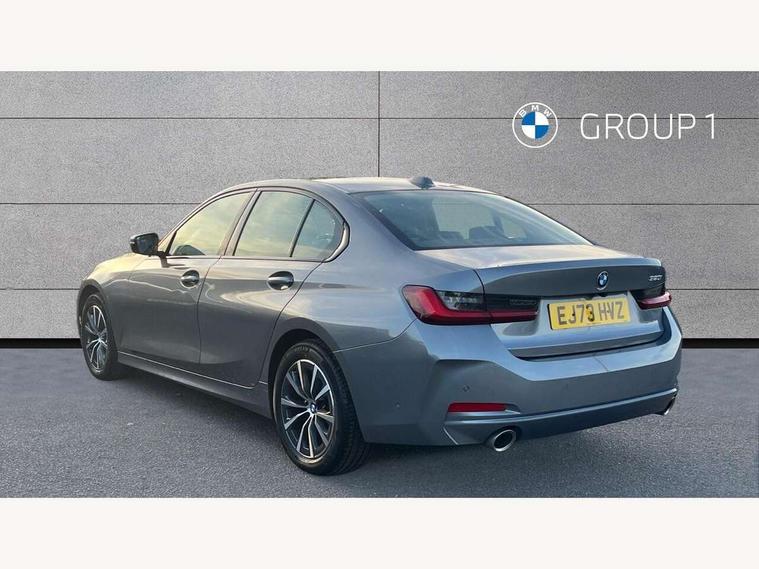 Active guard plus, Attentiveness assist, Automatic Start/stop button, BMW iDrive, BMW Teleservices, Condition based service, ConnectedDrive Services, Driving experience switch, Oil sensor for level and grade, PAS, Preparation for driver assistance, Shifting point display, Double joint spring strut front axle, Fuel tank breather system, Sport automatic transmission with steering-wheel mounted gearshift paddles and launch control, Standard suspension, DAB tuner, 3rd brake light, Acoustic glazing, Automatic headlight beam throw control with load dependent regulating reaction, dynamic compensation of braking dive and acceleration squat, BMW emblem, engine compartment lid and tailgate, BMW kidney with 8 grille struts per segment in high gloss black and frame in high gloss chrome, Body colour roof fin, Door sill strips, Electric windows - front and rear, with open/close fingertip control, anti-trap facility and comfort closing, Follow me home headlight function, Front and rear bumper system with replaceable deformation elements, Front apron plastic in body colour, Fuel filler flap - right rear in body colour, Heated washer jets, High gloss shadow line exterior trim, Illuminated bow type door handles in body colour drivers side with door lock, Interior rear view electrochromatic mirror with automatic anti dazzle function, LED rear lights, Licence plate panel integrated into front bumper and tailgate, Matt black B-pillar finsher, Matt black window recess cover, Model designation on right side of tailgate, One piece front bumper cover including towing eye cover in body colour, Rain sensor with automatic headlight activation, Rear boot, Rear side wing doors, Reversing lights, Side frame decorative moulding black matt, Visible exhaust tailpipe finisher, Welcome lights in interior and door handle area, 12V power socket in front storage compartment, 2 front cupholder in centre console with clamping elements and matt black inlay, 3 seat bench in 2nd row, 3 zone automatic air conditioning, 40:20:40 split folding rear seat with loading system, Ambient inside door handle light, Ambient light design projected onto the left and right entering and exiting area, Ambient lighting front and rear with 9 selectable colours, Ambient storage compartment lighting in the centre console, Armrest integrated in front and rear door trim + front centre console armrest, BMW ID, Contour lighting in instrument panel and door trim panel, Cruise control operation in steering wheel, Folding rear centre armrest with 2 cupholders, Front and rear ambient footwell lighting, Front and rear door exit lighting (left / right), Front and rear headrests, Front and rear reading lights, Front and rear velour floor mats, Front sport seats, Heated front seats, Height adjustable mechanically and infinitely variable steering column, Illuminated armrest storage compartment, Illuminated glove compartment, Illuminated luggage compartment, Lashing eyelets in luggage compartment, Make-up mirror lights, Sensatec perforated upholstery, Single front passenger seat, Standard seat for driver and passenger with manual adjustment, Sunvisors with vanity mirrors and ticket pocket, Three spoke multifunction sport leather steering wheel, Toolkit located in luggage compartment, Connected pack professional - 3 Series Saloon/Touring, Interior and exterior mirror pack - 3 Series Touring/Saloon, Storage compartment pack - 3 Series Saloon/Touring, 3x3 point rear seatbelts, BMW emergency call, Child locks on rear doors, Crash sensor activating of airbags, Unlocking doors, hazard warning lights, interior light, safety battery terminal, Driver and front passenger with seat occupancy detection for driver's and passenger side, Driver and passenger side airbags, body protection at side and airbags deploy from seat backrests, Dynamic brake control, Dynamic stability control + (DSC+) - Anti-lock Braking System (ABS) with brake assist and cornering brake control + Automatic Stability Control (ASC), Dynamic Traction Control - DTC, Electric parking brake including automatic hold function and automatic release of the parking brake when driving off, Electronic differential lock control (EDLC), Head airbags in 1st and 2nd row, head protection at side, curtain airbags open from headliner above 1st and 2nd row, Plastic fuel tank, Side impact protection, Tyre pressure monitoring with three level warning strategy, Ventilated front and rear disc brakes, Warning triangle and first aid kit, Alarm system, Centre lock switch, Closing system with central locking, Electronic vehicle immobiliser, High gloss black interior trim, 17" V spoke Obrit grey alloy wheels - Style 775 including BMW mobility kit,