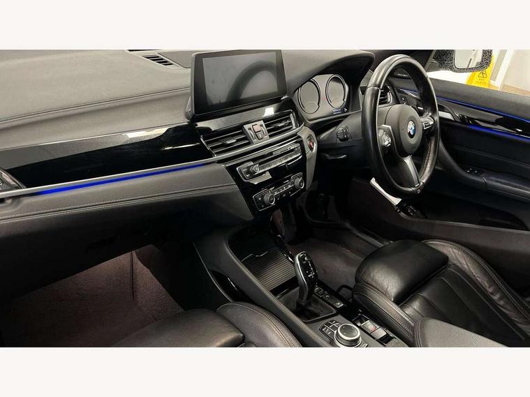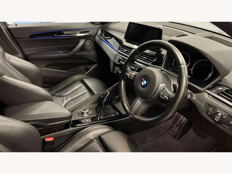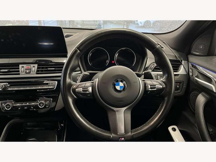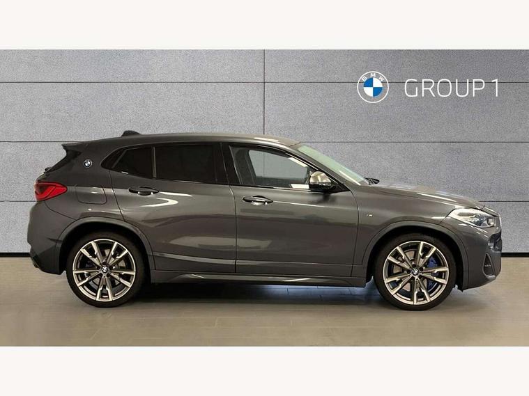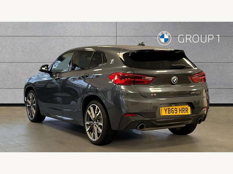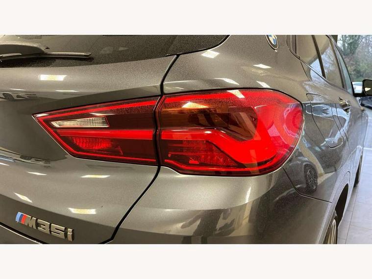 Active Guard incl speed limiting and lane departure functions with auto steering, and front collision warning with brake intervention, Automatic powered tailgate, Bluetooth hands free facility with USB audio interface, BMW Online services, BMW remote services, BMW Teleservices, Brake pad wear indicator in front and rear, Check Control warning system for monitoring of lights and door/luggage compartment open warning, Eco pro mode, Instrument cluster with black optic and 5.7" colour display + speedometer + tachometer + fuel gauge + instant fuel economy with M35i logo, Lights on warning by audio warning signal when ignition is switched off, M Sports steering, On board computer - average speed+fuel consumption, service interval, clock/date, odometer/trip meter, outside temperature display and ice warning, Optimum shift indicator, Personal Profile, Real time traffic information, Speed limiter, TMC for lifetime of vehicle, 12V compressor with integrated sealant injection bottle and hose, 61 Litre touring fuel tank, Anti roll bar front and rear, Balancer shaft, Drive performance control with ECO PRO comfort + sport mode, Electronic differential lock, Engine cover with M performance designation, M sport suspension, Performance Control, Sport automatic transmission, Twin tube gas filled shock absorbers with degressive characteristic curve, 2x USB sockets in front, Bluetooth audio streaming, BMW professional radio with CD player, DAB Digital radio, Steering wheel mounted audio/telephone controls, Adjustable headlights, Automatically dimming rear view mirror, BMW badge on bonnet, tailgate with integrated tailgate release and C pillars, Body colour door handles, Body colour roof trims, Chrome kidney grille with black vertical slats, Clear lenses direction indicator lights, Direction indicator side lights integrated in exterior mirrors using LED technology, Door mirror integrated indicators, Dynamic brake lights, Electrically adjustable and heated door mirrors glass aspheric on driver's side and convex on passenger side, Fingertip control / anti-trap function on electric window, Front and rear bumper system, Front and rear electric windows, Green tinted heat protection glazing, Halogen headlights, Heated windscreen washer jets, High gloss black front side air intake with matt black insert, High gloss black in window frame, recess covers and B-Pillar trim, High level third brake light, LED front fog lights, LED headlights with extended contents - cornering, high beam assist, LED day running lights with dynamic beams-through for urban and motorway, Lightweight engineering, M rear spoiler, Model designation in left tailgate, Model designation in right tailgate, Rain sensor with automatic headlight activation, Rear fog lights, Rear tail lights with LED technology and 3D design, Rear window aerial, Rear window wiper with wash/wipe function, Reversing light in rear light cluster, Round exhaust system with twin cerium grey tailpipes in left and right split, Satin aluminium roof rails, Shark fin antenna, Twin chrome exhaust tailpipes, Visible VIN plate, Welcome lighting, 40:20:40 manually split folding rear seat with two tilt positions for backrest, Ambient light in front centre console/cup holder area, Anthracite headlining, Armrest in centre section of rear seat backrest and folding, Automatic two zone climate control air conditioning, Child seat ISOFIX attachment for two outer rear seats and front passenger seat with anchorage points, Conditioned based service, Driver and front passenger seat heating, Driver/passenger sunvisors with ticket holders, Drivers folding storage compartment, Floor mats with black surround and M flag detail on front mats, Front and rear door armrests, Front armrest, Front door sill finishers with M35i designation, Front head restraints, Gearshift paddles on steering wheel, Glovebox with light, Interior light in front centre interior mirrors and rear centre auto interior light activation when door is opened when ignition switched off, LED ambient lighting in upper door trim and dashboard trim, Luggage compartment lighting, Luggage compartment loading edge with stainless steel insert, Luggage compartment with underfloor storage and four lashing eyes, M Sport multifunction leather steering wheel, Rake/reach adjustable steering wheel, Retaining strap on the left side of the luggage compartment, Three rear headrests, Two cupholders in front and rear centre console, Extended lighting pack - X2 M35i, Extended storage pack - X2, M Sport aerodynamic pack - X2 M35i, 3 point seatbelts on all seats, front pyrotechnic belt tensioners, stopper and belt force limiters, rear coded belt buckles, Airbags - Front driver and passenger, front and rear head, front side, curtain head protection, Anti lock braking system (ABS) with brake assist, ASC - Active stability control, BMW emergency call, Brake drying, Brake energy regeneration, Braking readiness, Child proof locking system in rear door, Crash sensor activating central locking release with hazard warning lights and interior lighting + battery safety cut-off, Driver and front passenger seat belt security check, DSC - Dynamic Stability Control, Dynamic Traction Control - DTC, Electrically operated parking brake with automatic drive release, Electronic parking brake, Front passenger airbag deactivation, Front ventilated brake disc, Hill descent control, Hill start assist, M Sport braking system, M Sport seatbelts, Multi collision braking system, Rear brake discs, Side impact protection, Twin horns, Tyre pressure monitor, Warning triangle and first aid kit, Auto door lock when driving, Central locking switch for all doors, fuel filler cap and luggage compartment, Engine immobiliser, Incorrect fuel protection system, Locking wheel bolts, Remote control including integrated key with M specific highlight, Remote control Thatcham category 1 alarm, Start/stop button with comfort go keyless engine start and auto start stop deactivation button, Dash top fi