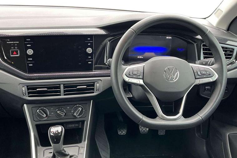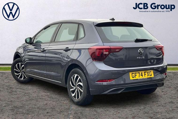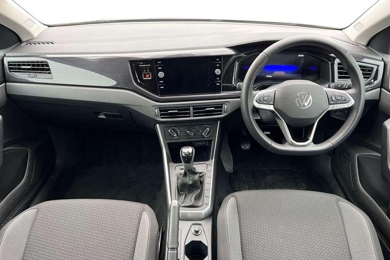 Advanced driver attention and drowsiness monitor, Bluetooth mobile phone interface, Cruise control + speed limiter, Dynamic road sign display, Emergency call service, Lane keeping system Lane Assist, Multifunction camera, Power assisted speed sensitive steering, Preparation for navigation system with media and internet package, Preparation for We connect and We connect plus, Speedo and rev counter, electronic odometer, trip, service interval display and exterior temperature gauge, Standard rear axle, Trip computer, Warning signal and warning light for front and rear seatbelts not fastened, Washer fluid level indicator, Wireless app connect, Front wheel drive, Rear shock absorpion, Start-stop system with battery regeneration (recuperation - energy recovery during braking), DAB Digital radio, Diversity antenna for FM reception, Front and rear 6 speakers, Automatic dimming interior rear view mirror, Automatic headlight control with LED separate daytime running lights with coming/leaving home function, Body colour bumpers with chrome inserts, Body colour door handles, Body colour door mirrors, Electric front windows, Engine badge deletion, Headlight range adjustment, Heat insulating and laminated safety glass windshield, Heat insulating darkened glass in side and rear windows, LED Headlights, LED rear combination lamps, Power folding adjustable/heated exterior mirrors and front passenger exterior mirror lowering function, Rain sensor, Rear electric windows, Rear fog light, Rear side wing doors, Rear windscreen washer and wiper with interval delay, Third brake light, 12V power socket in centre console, 2 front and 2 rear reading lights with switch off delay and dimmer, 2 USB-C ports in the front, 2 USB-C charging sockets on the center console in the rear, 3 rear head restraints, 60/40 split folding rear seat and rear seat bench not split, Ceramique roof lining, Chrome plated radiator grille inserts, air vent surrounds and light switch surrounds, Door and side trim panel, Driver and front passenger seat height adjustment, Driver/passenger sunvisors with illuminated vanity mirrors, Front centre armrest, Front seat backrest storage pockets, Front standard seats, Handbrake lever handle in leather, Hartley/Thomas cloth upholstery, Headliner in recycled material, Isofix child seat preparation easy-fit (for two outer rear seats, and front passenger seat) compatible with I-size, Leather trimmed gear knob, Luggage compartment cover, Luggage compartment lighting, Removable luggage compartment floor, Single front passenger seat, Standard climatic zones, Standard pedal cluster, Three spoke leather wrapped multifunction steering wheel, Light and vision pack - Polo, 3 point height adj front seatbelts + pretensioners, 3x3 point rear seatbelts, ABS, Driver and front passenger airbag with front passenger airbag deactivation, Drivers and front passengers safety optimised head restraints, ESC (Electronic stability control) + EDL (Electronic Differntial lock) and ASR (Traction control), Extended and predictive pedestrian/ cyclist protection, Front assist with autonomous emergency braking (for Adaptive Cruise Control ACC up to 130 mph), Front curtain and side airbags with center airbag, Front disc brakes, Hill hold control, Manual child lock in rear doors, Rear drum brakes, Single tone horn, Tyre pressure loss indicator, Alarm with interior protection, Anti-theft alarm system with interior monitoring, backup horn, and towing protection, Anti-theft wheel bolts, Electronic engine immobiliser, Lava stone black gloss/matt decorative inserts in dash and front door panels, Low rolling resistance tyres,