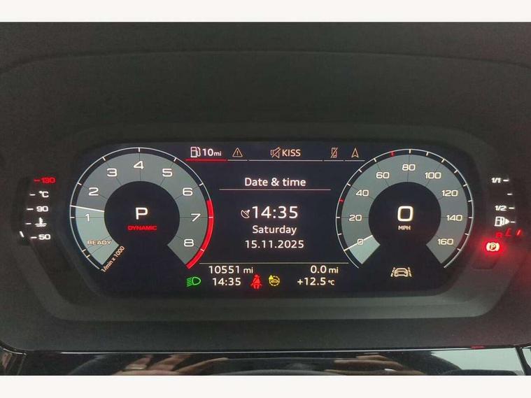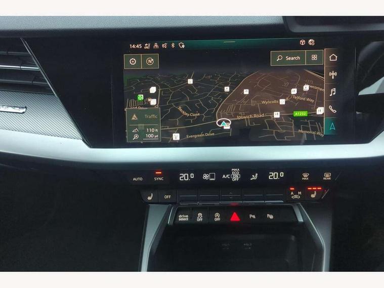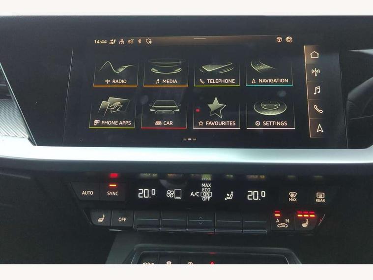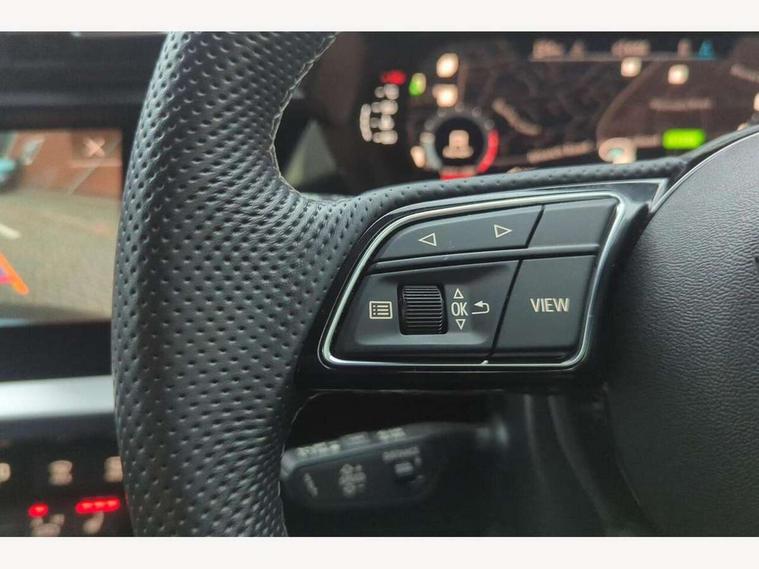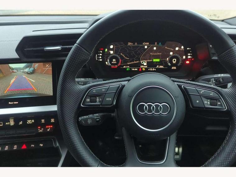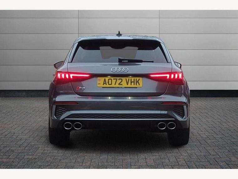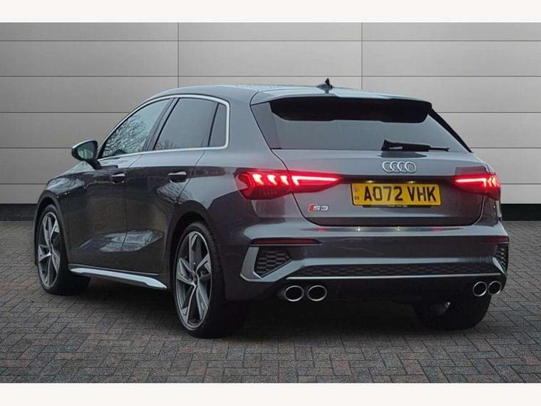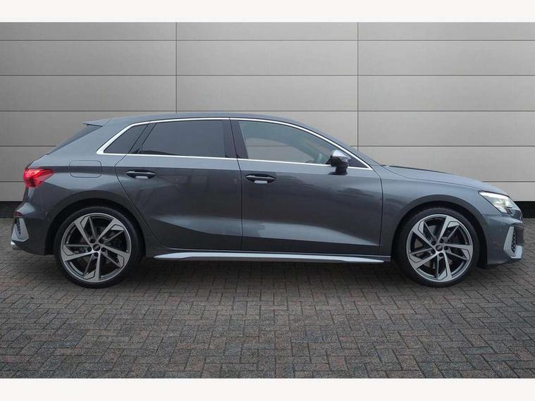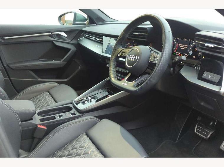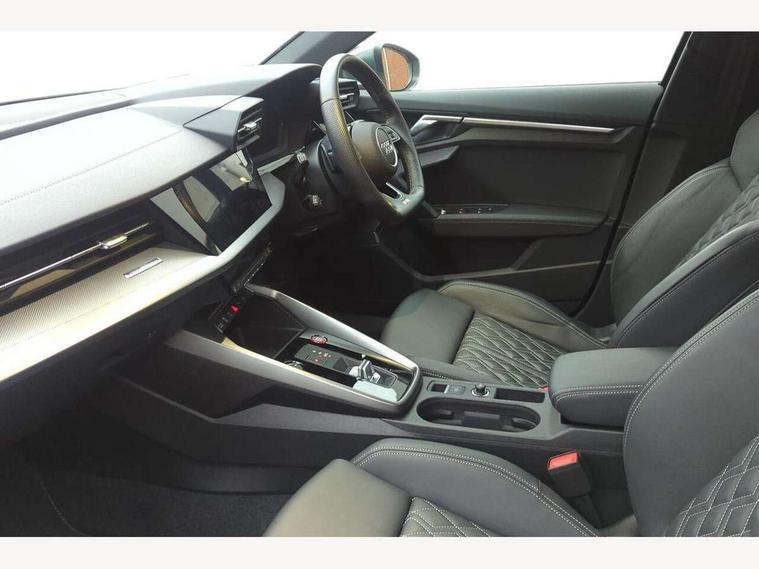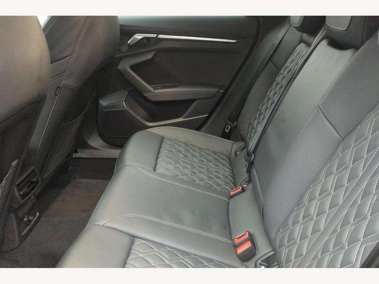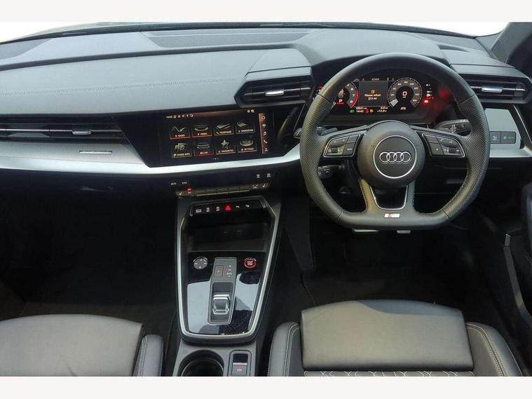 Audi drive select (Auto, Comfort, Dynamic, Efficiency and Individual), Audi smartphone interface, Audi Virtual Cockpit - 10.25" digital and colour instrument cluster, Automatic start/stop system with recuperation, Bluetooth interface, Collision avoidance assistant, e-Call (emergency call), Lane departure warning system, MMI Navigation Plus with high resolution 10.1" colour touch screen display, Progressive steering, Service indicator, Trip computer, Voice control system with natural language interaction, Quattro permanent all wheel drive, S sports suspension, 2xUSB-C connection with data and charging functions, 6 passive loudspeakers, DAB Digital radio, 3rd brake light, Acoustic glass windscreen, Aluminium window trim, Audi Beam uses LEDs to project the Audi S3 logo, Auto dimming frameless rear view mirror, Electrically adjustable/heated/folding/dimming door mirrors with kerb view includes integrated LED indications + kerb view function for passenger side, Front electric windows, Headlight washers, Illuminated aluminium inserts front door sills with S logo, LED daytime running lights, LED headlights with LED rear lights and dynamic rear indicators, Light and rain sensors, Privacy glass - dark tinted rear window, rear door and side windows, Rear electric windows, Rear side air outlets in grained matt black, Rear side wing doors, Rear wiper, 12V socket and storage compartment in front centre console, 3 seat bench in 2nd row, 40/20/40 split folding rear seat bench with cupholder, Black cloth headlining, Dual zone electronic climate control, Front and rear headrests, Front/rear floor mats, Heated front seats, Height and reach adjustable steering wheel, Illuminated vanity mirror, Interior lighting - glove compartment light and right hand side, Luggage compartment floor covering, Manually adjustable front seats, Seat side bolsters, Single front passenger seat, Stainless steel pedals and front footrest in black, Aluminium interior elements pack - A3 Sportback, Design body styling - A3 Sportback, LED interior lighting pack - A3 Sportback, Storage pack - A3 Sportback, 3x3 point rear seat belts, Audi pre sense front, Driver and front passenger airbag with passenger airbag deactivation, Electronic Stabilisation Control (ESC) including ABS, ASR and EDL, First aid kit with warning triangle and 2 safety vests, Front side airbags with head airbags and interaction airbag, Pre-sense front with pedestrian and cyclist detection, Seatbelt monitoring, Tyre pressure loss indicator, Anti theft alarm, Anti-theft wheel bolts, Electronically operated child lock, Immobiliser, Remote control central locking, Accent surfaces in the dashboard and centre console in platinum grey silk effect paint finish, Dark spectrum aluminium inlays,