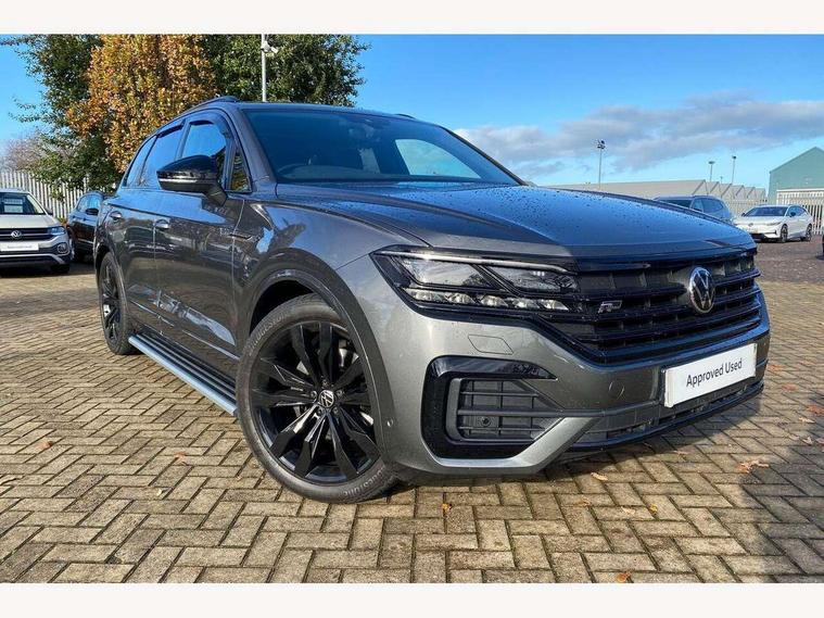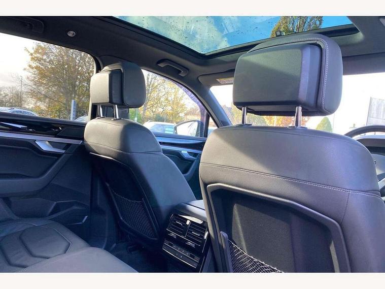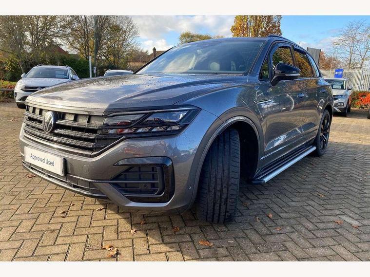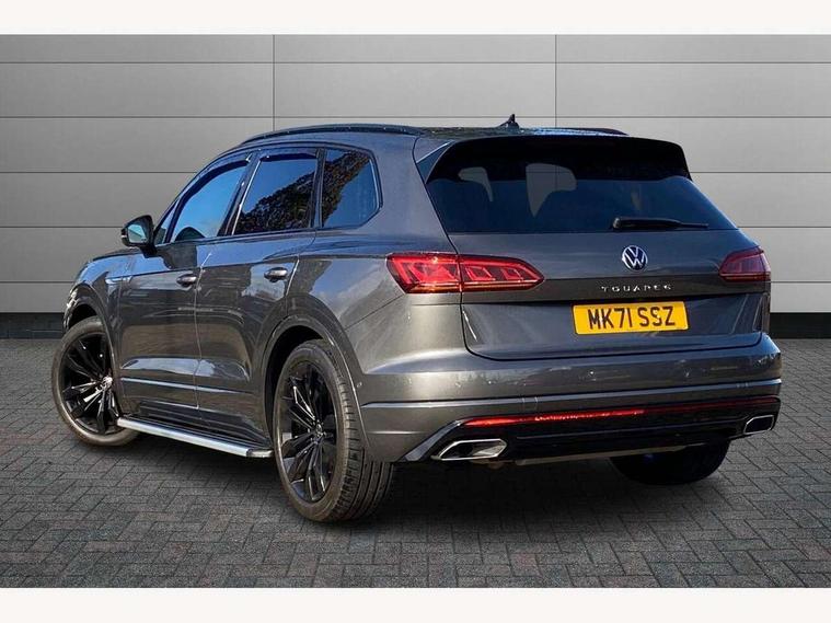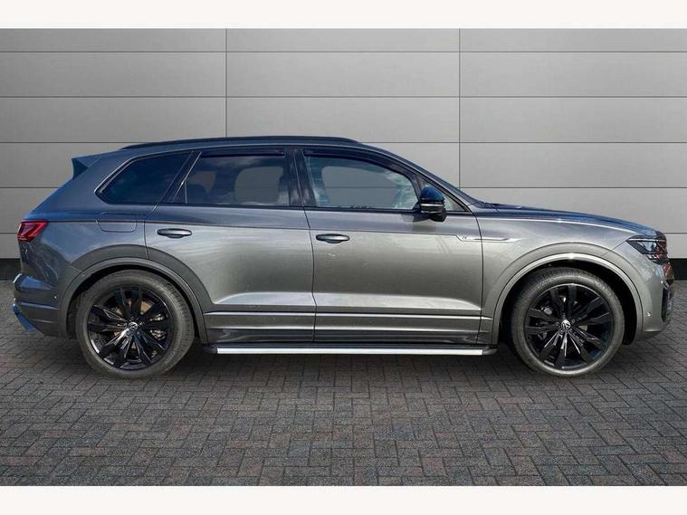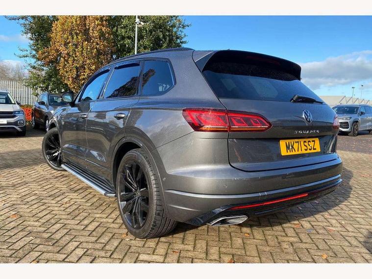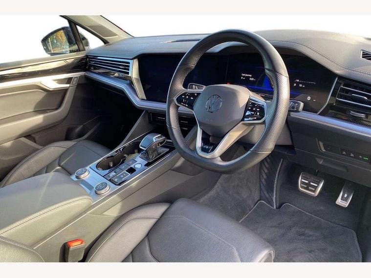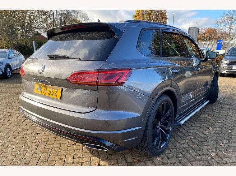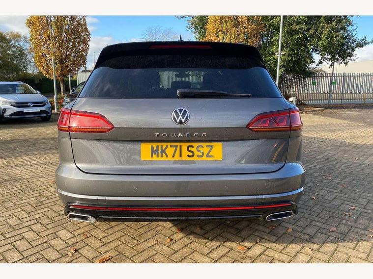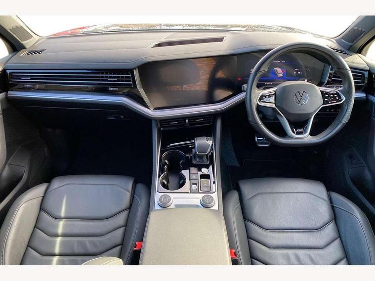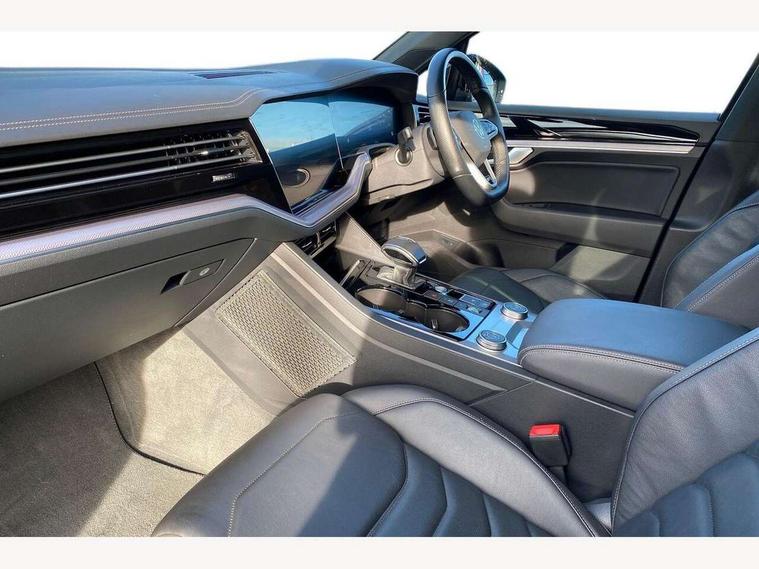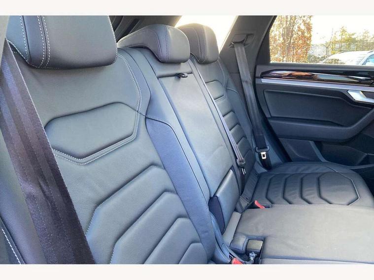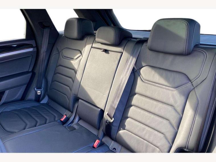 2D/3D map view, ACC - Adaptive cruise control with front assist, forward collision warning, distance monitoring, city emergency brake and speed limiter, Apple car play/Android Auto, Audible and visual fatigue detection system, Bluetooth hands free telephone connection, Car information display, Drive select with Damper control, Driver alert system, Driver profile selection, Dusk sensor, Dynamic road sign display camera controlled system with visual warning for traffic and road signs, eCall emergency system, Fully electric tailgate + keyless entry and start, Instrument cluster, MirrorLink, Multifunction camera with lane assist, Multifunction computer premium with 7" colour display, One touch indicators with repeat function, Service interval indicator, Speed sensitive power steering, Start/stop system with regenerative braking, Tailgate power latch, Think blue trainer driver tips and journey analysis, Traffic sign recognition, Voice control system, Wireless Smartphone charger, 24 litre AdBlue tank, Torsen limited slip differential, DAB Digital radio, Dynamic navigation based on TMC+, Gesture control for infotainment system, Multi device interface (MDI) with illuminated USB-C connection, Music playback - MP3, WMA and AAC files, SD card slot, Simultaneous pairing of 2 compatible mobile devices, SMS functionality - read, compose and send SMS messages using touch-screen display, Title and cover art display, Volkswagen media control, Adaptive low beam for urban and motorway use, Auto dimming rear view mirror, Automatic coming/leaving home lighting function, Automatic headlights, Black anodised roof rails, Black door mirrors, Black rear diffuser, Black side window surrounds, Black upper and lower grille louvres extending into headlights and radiator grille, Body colour door handles, Body coloured wheel arches, C signature gloss black front air intake, Chromed tailpipe on the left and right integrated in the bumper with trapezoid design, Dynamic headlight range control, Electric front tilt/slide panoramic sunroof and fixed rear sunroof, Electrically power adjustable, heated, folding, auto dimming, front passenger exterior door mirror lowering function, Front and rear electric windows, Galvanised body, Gloss black finish B pillar, Gloss black rear diffuser, Headlight washers, Heat insulating glass in side and rear windows, Heated windscreen washer jets, IQ.Light-LED matrix headlight, daytime running light with dynamic cornering light and indicator, LED rear fog light, LED rear number plate lights, Plastic scuff plates in door apertures, Poor weather light, Puddle lights, Rain sensor, Rear wiper, 12V socket in front and rear centre console and boot, 2 Coat hooks on B pillar, 3 rear head restraints, 3 spoke sport heated leather multi-function sports steering wheel with gear shift paddles - generation 2, 4 way adjustable front head restraints, 4 way electric lumbar support for driver and front passenger, 4 zone climate control, 40:20:40 split folding slide/recline rear seat, B pillar vents, Black lower edge of door extending sills, Branded points of interest, Double sun visor for drivier and passenger with LED illuminated vanity mirrors, Electric luggage compartment cover, Folding rear centre armrest with 2 cupholders, Front + rear carpet mats, Front centre armrest with storage box, Gear shift indicator, Height/reach adjust steering wheel, Illuminated air conditioned glovebox, Isofix preparation for 2 rear child seats, Jack and tool kit, Leather trimmed gear knob with gloss black inlay/aluminum trim, Leatherette door trim, LED luggage compartment lighting, Load through provision, Luggage compartment with load lashing rings, Plastic loading edge protection, Rear seat remote release levers, Soul black headlining, Stainless steel pedals, Innovision cockpit pack - Touareg, 3 point front seatbelts with pre-tensioners, ABS, Active bonnet, Automatic post collision braking system, Curtain airbags, Driver/Front Passenger airbags, EBD + Brake Assist, EDL, Electronic parking brake with auto hold, ESC with ASR, Front seat side impact airbags, Hill descent control, Hill start assist, Passenger airbag deactivate switch, Seatbelt warning lamp and buzzer, Three 3 point rear seatbelts, Two tone horn, Volkswagen roadside assistance, Warning triangle and first aid kit, Alarm with interior monitoring in cab, backup horn and towing protection, Child security locks for front and rear doors, Electronic engine immobiliser, Remote central locking, Black decorative trims on the side windows, High gloss black centre console,