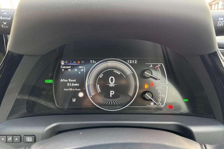 4 driving modes EV/Eco/Normal/Sport, Analogue clock with LED illumination, Apple car play/Android Auto, Auto glide control Lexus first - AGC, Blind spot monitoring (BSM) with Rear cross traffic alert and auto brake (RCTAB), Drive mode select controller, Dynamic radar cruise control, E-call, EPS with speed sensitive steering, Intelligent parking sensors, Lane change flasher function, Lane tracking assist - LTA, Lexus link connected services, Lexus navigation with 8" multi-information screen, Pre-collision system (PCS), Push button start, Reversing camera, Road sign assist - RSA, Vehicle Stability Control - VSC and drive mode controls on Instrument brinicle, VDIM, 10 speaker pioneer audio with single CD, DAB, aux, shark fin antenna + Bluetooth system, 2 USB ports for charging in rear of centre console, Multimedia system with remote touch pad, 2 eye LED headlights with auto high beam, Acoustic front windscreen, Aluminium front scuff plates with Lexus logo, Auto dimming interior rear view mirror, Auto headlight levelling, Auto headlights, Cornering light, Folding heated auto dimming wide angle door mirrors, Follow me home headlights, Front and rear one-touch automatic power windows equipped with a jam protection, Front grille, Green UV glass with water repellent coating on front side windows, Headlight cleaners, LED daytime running lights, LED rear lights, Pop up hood, Rear spoiler, Sunroof, Water repellent glass on front door windows, 12V socket in front and rear, 2 cup holders in the front and rear centre console, 2 USB ports in front centre console, 2 x fixed shopping bag hooks in boot, 2 zone climate control with climate concierge and nanoe ion generator, 3 spoke leather steering wheel with power adjust, 4 x tie down hooks in the boot, 8 way Electrically adjustable front seats including headrest with heater, Card holder installed in driver and passengers sun visors, Easy access system with tilt + telescopic, Fixed rear seat with trunk through, Front and rear door pockets, Front and rear head restraints, Front centre armrest with storage, Heated, power adjust driver and passengers seats with 2 way lumbar support, Luggage storage tray under deck board to right side, Map pockets on front seats, Paddle shift controls, Rear armrest with 2 cup holders and storage, Self charging hybrid, Smooth leather shift knob, Tahara leather upholstery, Textile carpet mats, Through load facility, 10 airbags - front, side, knee, front and rear curtain airbag, 2 x Isofix child rear seat restraints, 3 point front seat belts, Active Traction Control (TRC), Adjustable seat belt anchor points, Anti-lock braking system (ABS), Electronic parking brake, ELR (Emergency locking retractor), Front and rear outer seat belt pre-tensioners, Front passenger's airbag cut off device, HAC (Hill start assist control) with brake hold, Seat belt force limiter, Sway warning system, Three 3 point rear seatbelts, Tyre pressure monitoring system, Alarm, Immobiliser, Locking wheel nuts, Smart entry + Smart start, Speed sensitive auto door locking, Two motion door lock with double lock, VIN Window etching, Black grain inlay, 17" Alloy wheels, Tyre repair kit,