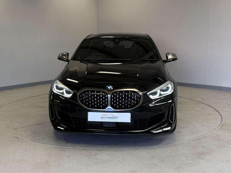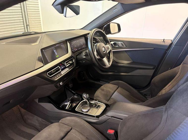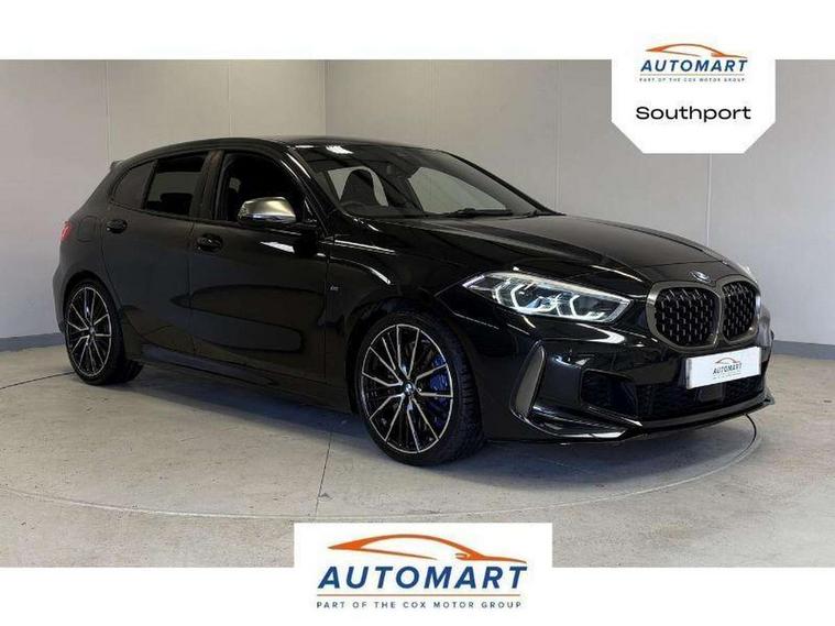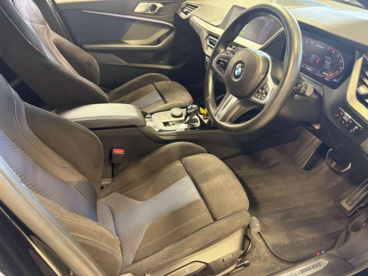 Active guard plus, Attentiveness assist, BMW Live Cockpit Professional sat nav system including 10.25" high resolution display and Intelligent Voice Assistant, BMW Online services, BMW Teleservices, Check Control warning system for monitoring of lights and door/luggage compartment open warning, Eco pro mode, Gearshift time display in manual mode, Integrated owners handbook, M Sports steering, Oil sensor for level and grade, On board computer, Optimum shift indicator, Personal Profile, Pull away assistant, Speed limiter, Sporty fast gear shifting in sport mode, Aluminium lightweight construction, Anti roll bar front and rear, Balancer shaft, Double VANOS, Drive Performance Control, Eight speed sport automatic transmission with electronic selector lever, Electronic differential lock, Engine cover with M performance designation, High precision injection, Larger fuel tank capacity (50 litres), Launch control, Petrol Particulate Filter, VALVETRONIC engine management, Bluetooth audio streaming, DAB Digital radio, Auto dimming rear view mirror, Automatic headlight beam throw control, Body colour door handles, Cerium grey exterior mirror caps, Direction indicator side lights in exterior mirrors, Electric folding and anti dazzle exterior mirrors, Fading support, Follow me home headlights, Front and rear electric windows with open and close fingertip control, anti trap facility and comfort closing, Front door sill finishers with M135i designation, Green tinted heat protection glazing, Heated, electrically adjustable exterior mirror aspheric on driver side, convex on passenger side, High gloss shadow line exterior trim, High gloss shadowline window frame, Recess cover mirror frames and B/C pillar embelisher trim, High level third brake light, Kidney grille frame in Cerium Grey with Mesh design, LED daytime running lights, LED eyebrow turn indicators, Lightweight engineering, M logo designation side in cerium grey, M performance exhaust system, M rear spoiler, Matt black air guide grilles, Model designation on right side of tailgate, Nearside reverse light in rear light cluster, Rain sensor including auto headlights activation, Rear fog lights, Rear window wiper, Round exhaust system with twin cerium grey tailpipes in left and right split, Shark fin antenna, Visible VIN plate, Welcome lighting, Windscreen wipers with integrated washing jets, 12V power socket in centre console, 2 cupholders in front centre console, 3 rear seat head restraints, 3 spoke M sports design leather steering wheel finished in nappa leather with specific M badge, Anthracite headlining, Anthracite Velour floor mats, Child seat ISOFIX attachment for two outer rear seats and front passenger seat with anchorage points, Conditioned based service, Driver and front passenger seat heating, Driver side folding compartment in instrument panel, Folding rear clothes hook, Folding rear seats, Four grab handles integrated in roof lining, Front and rear door pockets, Front and rear side armrest integrated into door trim, Front armrest foldable with integrated storage compartment, Front M seats, Glove compartment, Height adjustable front head restraints, Manual adjust steering wheel, Multi-function controls for steering wheel, Rear seat backrest with manual 60:40 split folding with 3 top tether clips integrated on rear of seat panels, Storage compartment in centre console, Sun visors with vanity mirrors and insert tab, Two zone automatic air conditioning, Connected pack professional - 1 Series, Extended Lighting pack - 1 Series M135i, Extended storage pack - 1 Series, Interior lights pack - 1 Series, Luggage compartment pack - 1 Series, M Sport exterior styling aerodynamics pack - 1 Series 135i, 2 tone horn, 3 point seatbelts on all seats, front pyrotechnic belt tensioners, stopper and belt force limiters, rear coded belt buckles, Airbags - Front driver and passenger, front and rear head, front side, curtain head protection, Anti lock braking system (ABS) with brake assist, BMW emergency call, Brake drying, Braking readiness, Crash sensor activating central locking release, hazard warning lights, fuel cut off, interior lighting + activation of safety battery terminal clamp, Driver and front passenger seat belt security check, Dynamic stability control + (DSC+), Dynamic Traction Control - DTC, Electrically operated hand brake, Front and rear disc brakes, Front passenger manual airbag deactivation, M Sport braking system, M sport seatbelt, Rear child proof door locks, Seatbelt warning, Side impact protection, Torsen mechanical limited slip differential, Tyre pressure monitoring system, Warning triangle and first aid kit, Automatic drive away locking facility, Central locking switch for all doors, fuel filler cap and luggage compartment, Deadlocking function system to all doors, Locking wheel bolts, Remote control with integrated key with High-gloss Black inlay and M designation and 1 button for open/ close lock, window, open luggage compartment, Start/stop button with comfort go keyless engine start and auto start stop deactivation button, Thatcham Cat.1 alarm and immobiliser, Contrast stitching on instrument panel, 18" Burnished M double spoke Bi-colour alloy wheels finished in Cerium grey matt - style 556M, BMW mobility system, Reduced rolling resistance tyres,