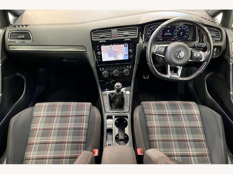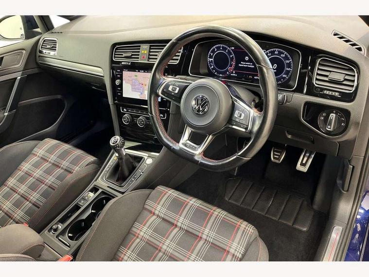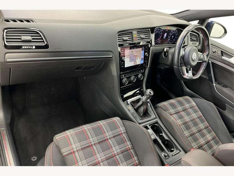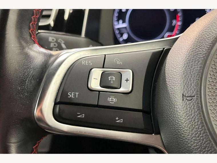 'Lights On' Reminder warning buzzer, ACC - Adaptive cruise control with front assist, forward collision warning, distance monitoring, city emergency brake and speed limiter, Bluetooth telephone and audio connection for compatible devices, Brake pad wear indicator warning light, Driver alert system, Driver profile selection, Driving Mode Selection with four preset modes - Eco, normal, sport or individual modes, Instrument cluster in white, Lane assist with dynamic light assist and traffic sign recognition, Multifunction computer with visual gear change recommendation for fuel consumption, Power assisted speed sensitive electro-mechanical steering, Push tank flap, Rear view camera, Speedo, rev counter, electronic odometer, trip, service interval display, exterior temperature and fuel gauge, Stop/start system, Warning buzzer and light for front seatbelts unfastened, Battery regeneration during braking, Limited slip differential, Lowered sports suspension, XDS electronic differential lock, Composition media system, DAB Digital radio receiver, MP3/WMA compatability, Multi device interface (MDI) with USB connection, Premium USB cable in choice of either Apple or Android smartphone compatibility, SD card slot, SMS Functionality, USB and SD card connectivity, Volkswagen media control, 3D-LED tinted rear light clusters with indicator sweep function, Black rear diffuser, Body colour door handles, Body colour door mirrors with integrated indicators, Body colour rear roof spoiler, Body colour sports bumpers, Dusk sensor + automatic driving lights, Electric front windows, Electric rear windows, Electrically adjustable and heated door mirrors, Fully galvanised body, GTI logo in red on front and back, GTI logo lettering on front wings on right and left, Heated rear windscreen, High level 3rd brake light incorporating LED Technology, Honeycomb radiator grille - black, LED daytime running lights, LED front fog lights with static cornering light function, LED headlights with dynamic light assist, Rear fog lamp, Rear window aerial, Rear window wash/wipe with intermittent wipe, Reflectors in all doors, Shiny black aerofoil downside, Sill extensions, Twin exhaust tailpipe, Windscreen wipers/ intermittent wipe + 4 position delay, 12V socket in luggage compartment, 3 rear headrests, 4 load lashing points in luggage compartment, 60/40 split folding rear seat backrest, Bag hook in luggage compartment x 2, Black headlining, Climate control - 2 zone electronic air conditioning with automatic air recirculation and allergy filter, Cooled glovebox, Dust/pollen filter, Front + rear carpet mats, Front centre armrest with storage compartment and two rear air vents, Front seat back storage pockets, Grab handles front x 2, rear x 2 with integrated coat hooks, Height and reach adjustable steering wheel, Illuminated door sills, Illuminated vanity mirrors, Instrument lighting white adjustable panel illumination, Interior light delay, Isofix preparation for 2 rear child seats, Leather gear knob and handbrake grip, Load through provision with rear centre armrest and cupholders x2, Luggage compartment lighting, Multifunction leather steering wheel with GTI logo and selector lever boot grip with red stitching, Overhead storage box, Stainless steel pedals, Storage box in luggage compartment, Storage compartment in roof console with cover, Storage compartments in front doors, Storage compartments in rear doors, Stowable luggage compartment cover, Sun visors, Variable boot floor, height adjustable and removable, Ambient lighting pack - Golf, Convenience Pack - Golf, Light and Sight pack - Golf, Mirror pack - Golf, 3 rear three point seatbelts, Airbags - Driver's and front passenger's, curtain airbag, Driver's knee, front side impact and passenger's airbag deactivation switch, Anti-lock Braking System (ABS) with Hydraulic Brake Assist (HBA), Automatic post collision braking system, Child locks on rear doors, Driver/Passenger optimised head restraints, Electronic parking brake with auto hold, Electronic stability control (ESC) including Electronic differential lock (EDL) and ASR (Traction control) with deactivation via infotainment system, Front ventilated disc brakes and rear disc brakes, Pre crash preventive occupant protection, Red brake calipers, Three point height adjustable front seatbelts with tensioners, Tyre pressure loss indicator, Alarm with interior protection and deactivation via infotainment system, Electronic engine immobiliser, Keyless entry with start/stop button on centre console, Remote central locking with 2 remote folding keys, Chrome plated air vent surround, Chrome plated electric mirror adjustment light switch surround, Honeycomb black decorative inserts, Piano black centre console, Steel space saver spare wheel,