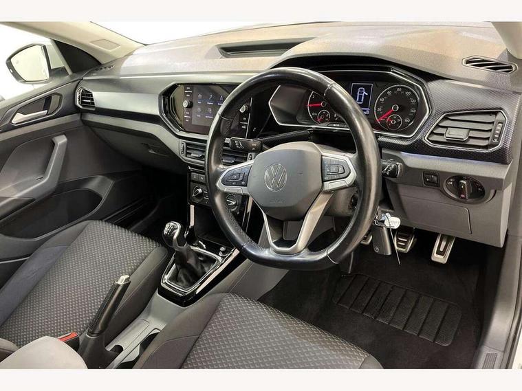 'Lights On' Reminder warning buzzer, Adaptive cruise control including front assist, forward collision warning, autonomous emergency braking, speed limiter, Driver alert system, eCall emergency call system, Front and rear parking sensors, Lane assist, Multifunction computer with visual gear change recommendation for fuel consumption, Power assisted speed sensitive steering, Ready 2 Discover system with 8" display including streaming and internet, Speedo, rev counter, electronic odometer, trip, service interval display, exterior temperature and fuel gauge, Stop/start system, Voice activation, Warning sound and light for doors and tailgate open, Warning sound and light for front seatbelts unfastened, We Connect Go Dongle, Wireless Car net app connect with Apple CarPlay, combined functionality of Apple CarPlay/Android Auto and MirrorLink, Battery regeneration during braking, Misfuel prevention device, 2x USB connection with USB charging sockets and in rear centre console, Diversity antenna for FM reception, Front and rear 6 speakers, Premium USB cable for Apple or Android smartphone compatibility, Automatic dimming interior rear view mirror, Automatic hazard lights activation under emergency braking, Black non metallic door mirror housings, Black roof rails, Body colour door handles, Body coloured bumpers, Darkened 65% privacy glass in side and rear window, Dusk sensor + automatic driving lights, Electric adjustable/heated door mirrors, Front and rear electric windows, Front fog lights with chrome bezel, Galvanised body, Halogen clear headlights range adjustable via infotainment system with automatic headlight activation and separate LED daytime running lights, Heated rear window, High level 3rd brake light, Lower door sills and door pillars in black, Manual coming/automatic leaving home lighting function, Rain sensor, Rear lights incorporating LED technology, Rear window aerial, Rear windscreen washer and wiper with interval delay, Reflectors in all doors, Tailgate with integrated roof spoiler, United badge on B-pillar, Windscreen wipers/ intermittent wipe + 4 position delay, 12V Accessory socket in centre console, 3 rear head restraints and 3 rear three point seat belts with ECE label, 60/40 split folding rear seat backrest, Brushed stainless steel pedals, Chrome plated radiator grille inserts, air vent surrounds and light switch surrounds, Drawer under drivers seat, Driver and front passenger sunvisor with vanity mirror, Driver's sunvisor with ticket holder, Dust and pollen filter, Front + rear carpet mats, Front centre armrest with storage compartment and two rear air vents, Front seat back storage pockets, Front seats with adj lumbar support, Glovebox, Heating and fresh air system with 4 stage blower, Height/reach adjust steering wheel, Instrument lighting white adjustable panel illumination, Isofix child seat preparation for 2 rear child seats, LED interior light with switch off delay/dimmer and 2 front/rear LED reading lights, Luggage compartment cover, Luggage compartment lighting, Manual air conditioning, Manual front seats with height adjustment, Moveable and foldable Rear bench seat, Storage compartment in drivers and front passengers door, Three spoke multi-function leather trimmed steering wheel and gearknob, United door sills, Variable boot floor, Waveform cloth upholstery, White ambient lighting, Composition Media infotainment system pack - T cross, Winter pack - T-cross, Anti-lock Braking System (ABS) with Hydraulic Brake Assist (HBA), Automatic post collision braking system, Driver and front passenger safety-optimised head restraints, Drivers and Front Passengers airbags with front passengers airbag deactivation switch, ESC with EDL, ASR, EDTC and trailer stabilisation function, Extended and proactive pedestrian protection, Front and rear curtain airbags, Front seat side impact airbags, Height adjustable 3 point automatic front seatbelts with pretensioners, Hill start assist, Pre crash preventive occupant protection, Rigid safety cell with front and rear crumple zones, Tyre pressure loss indicator, Volkswagen roadside assistance, Alarm with interior protection and deactivation via infotainment system, Child security locks in rear doors, Remote central locking with 2 remote folding keys, Remote tailgate unlocking using key fob, Altantic blue united decorative inserts, 16" Dublin black diamond turned alloy wheels + anti theft wheel bolts, Tyre mobility kit and compressor,