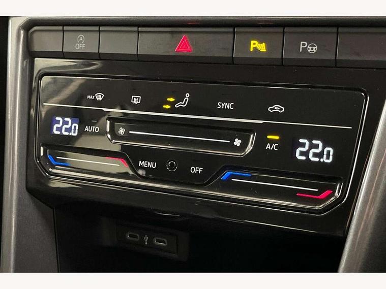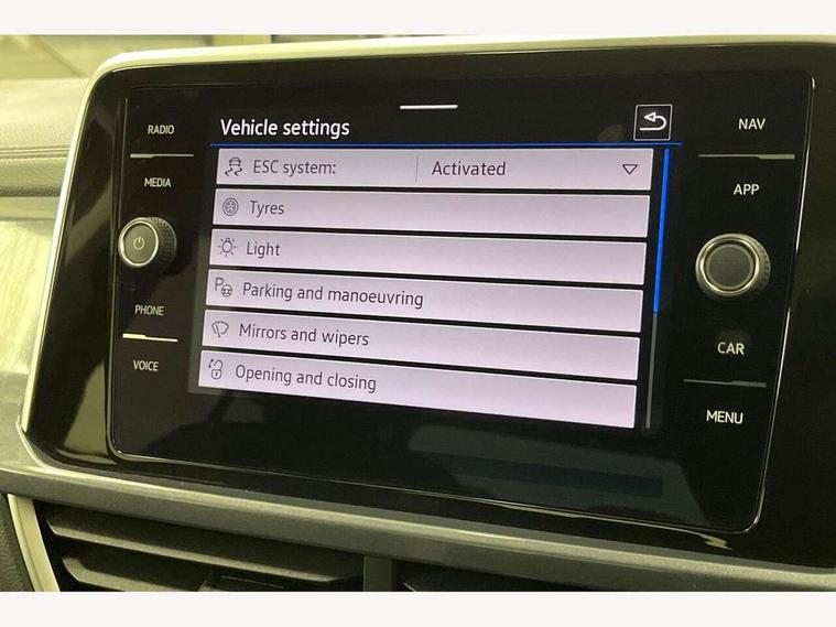 10.25" Digital cockpit pro, Bluetooth mobile phone interface, Driver alert system with fatigue detection, Driver tips and journey analysis, Dynamic road sign display, Emergency call service, Lane keeping system Lane Assist, Modified key software - reduce switch off time for key status change to Long no motion, Online services, Park assist including front and rear parking sensors, Power assisted speed sensitive steering, Service interval indicator, Tailgate/trunk lid release from outside, Think blue trainer driver tips and journey analysis, Warning sound and light for front seatbelts unfastened, Wireless app connect, Battery regeneration during braking, Front shock absorption, Rear shock absorption chassis with increased ride height, Start/stop function with battery regeneration, Diversity antenna for FM reception, Music playback - MP3, WMA and AAC files, Premium USB cable in choice of either Apple or Android smartphone compatibility, SD card slot, Simultaneous pairing of 2 compatible mobile devices, Title and cover art display, We Connect and We Connect Plus functionality, 3rd brake light, Auto dimming interior rear view mirror, Automatic hazard lights activation under emergency braking, Automatic headlight control with LED separate daytime running lights with coming/leaving home function, Body colour sports bumpers with silver metallic underbody fascia, Dynamic headlight range control with self adjusting whilst driving, Extended roof spoiler, Exterior mirrors aspherical on driver side, convex on front passenger side, External USB type C socket and charging sockets, Front windscreen wiper with intermittent wipe and 4 position delay, Heated rear window, LED rear combination lamps, LED rear number plate lights, LED tail lamp rear comination lamps, Light mode for poor weather, rain, fog or snow, Power windows with comfort operation and circuit breaker, Rain sensor, Rear exhaust tailpipe, Rear fog light on one side and reversing lights on both sides, Rear side wing doors, Rear wash/wipe with intermittent wipe setting, Remote electrically foldable door mirrors, puddle lights and reverse activated passenger's door mirror, 12V power socket in centre console, 3 rear head restraints, 3 seat bench in 2nd row, 4 load lashing points in luggage compartment, Air care climatronic air conditoning system with active combination filter and 2-zone temperature control, Chrome plated radiator grille inserts, air vent surrounds and light switch surrounds, Door and side trim panel with leatherette insert, Drawer under drivers seat, Front + rear carpet mats, Front centre armrest, Front comfort sports seats, Front cupholders x 2, Front footwell illumination, Instrument lighting, white adjustable panel illumination, Interior ambient lighting and surround lighting, Interior light delay, Isofix child seat preparation, Leather gearshift handle, LED interior light with switch off delay/dimmer and 2 front/rear LED reading lights, Load-through provision with cup holder when folded down ('Unsplit rear seat bench, split folding backrest, with centre armrest), Luggage compartment lighting, Non-folding front passenger seat backrest, Single front passenger seat, Storage compartment in left and right luggage area, Storage compartment in rear doors, Storage compartments in driver and front passenger doors, Sunvisors with illuminated vanity mirrors, Variable boot floor, height adjustable and removable, Driver assistance pack without proactive passenger protection - T-Roc, 3 point height adj front seatbelts + pretensioners, 3 point seatbelts in outer rear with ECE label, ABS, Child locks on rear doors, Driver and front passenger airbag with front passenger airbag deactivation, Driver and front passenger safety-optimised head restraints, Drivers seatbelt reminder, Electronic parking brake, Electronic Stability Control (ESC) inc EDL (Electronic Differential Lock) and ASR (Traction Control), Front and rear passengers curtain airbag system including front side airbags, Front assist with city emergency braking and pedestrian monitoring, Front disc brakes, Front seat side impact airbags, Predictive pedestrian protection, Rear disc brakes, Single tone horn, Tyre pressure loss indicator, Volkswagen roadside assistance, Anti-theft alarm system with interior monitoring, backup horn, and towing protection, Remote central locking with SAFELOCK, radio remote control with 2 remote control folding keys, Trims for alloy wheels,