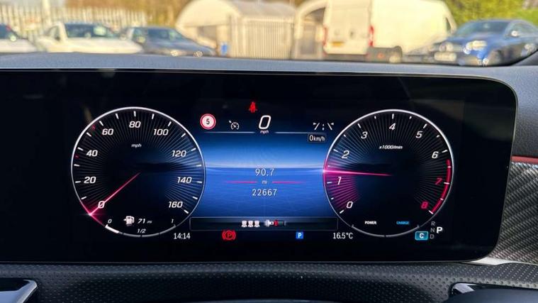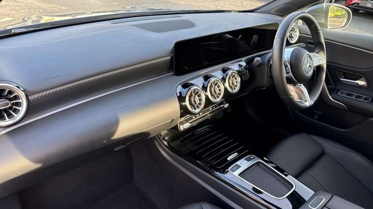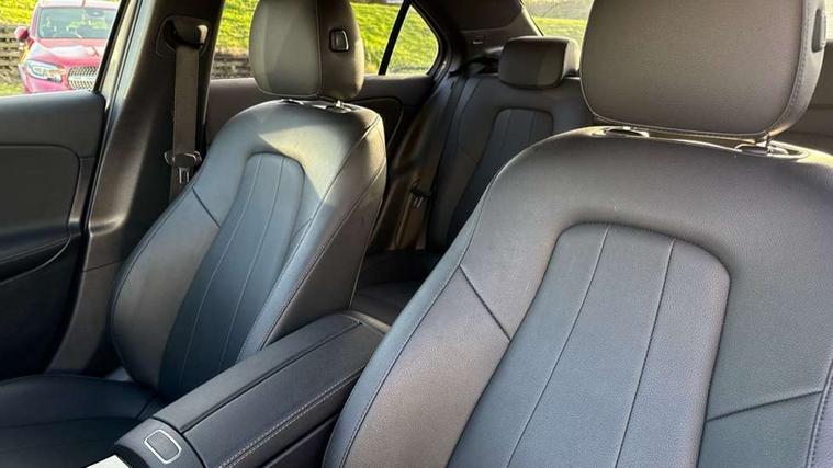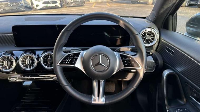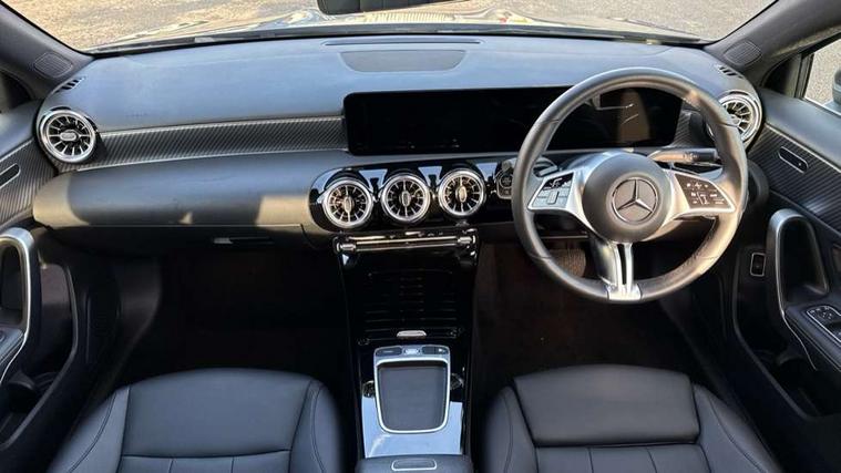 10.25 inch touchscreen central media display, 10.25" Digital instrument cluster display screen, Attention assist, Brake pad wear indicator warning light, Car wash mode, Cruise control + speed limiter, Direct steering, Direction indicators with lane change function, Dual bluetooth interfaces, DYNAMIC SELECT with a choice of driving modes (ECO, Comfort, Sport and Individual), ECO start/stop function, Engine start/stop button, Fluid level warning indicator for fuel, oil, coolant and washer fluid, Hard-disk navigation, Hey Mercedes Voice activation, Lamp failure indicator, Lane keeping system, Mercedes me connect including emergency call system, accident recovery, breakdown management and maintenance, Mercedes me remote services, Outside temperature gauge, Owners manual in English, Pre-installation of private car share, Preinstallation for Mercedes Benz link, Remote boot closing, Service indicator (ASSYST), Smartphone integration with Apple CarPlay and Android auto, Speed limit assist, Speed sensitive power steering, Trip computer in multifunction display with current consumption indicator, Wireless charging, Lowered comfort suspension, DAB Digital radio, MBUX multimedia system, Mercedes Benz sound system (100 W) with 6 speakers, 4 Electric Front and Rear windows, Adaptive brake lights, Body colour bumpers, Body colour door handles with chrome inserts, Body colour side skirt, Body coloured door mirrors, Chrome beltline strips, Diamond radiator grille with pins in fine star pattern, Electric adjustable and heated door mirrors with integrated LED side indicators, Exhaust system with 2 visible tailpipe trim elements and rear apron, Headlamp assist automatic headlamp activation, Heat insulating dark tinted rear and rear side windows, Heated glass rear windscreen + timer control, LED High Performance headlamps including integral LED daytime running lamps and adaptive highbeam assist, LED tail lamp, Privacy glass, Radio aerial, Rain sensing windscreen wipers with two sensitivity settings, Rear boot, Rear fog lights, Rear side wing doors, Third brake light featuring LED technology, Window line trim strip in chrome, 3 seat bench in 2nd row, 3 Spoke leather multi function steering wheel, 4 way lumbar support, 40:20:40 split folding rear seats, Air conditioning - One zone thermatic automatic climate control with automatically controlled air distribution, Artico man-made leather upholstery, Automatic child seat recognition sensor, Black air vents with surround in silver chrome, Black roof lining, Front centre armrest with stowage, Front comfort seats with adjustable head restraints, Front door sills with Mercedes Benz lettering, Front seat backs luggage nets, Gearshift paddles on steering wheel, Heated front seats, Height/reach adjustable steering column, Interior lighting - 64 colour Ambient lighting, Interior mirror with reading lamps in black and frameless, ISOFIX and top tether child seat fixing points in two outer rear seats, Rear armrest with 2 cupholders, Rear head restraints, Seat occupancy sensor for front passenger seat, Single front passenger seat, Stowage compartment in centre console with retractable cover, Sunvisors with illuminated vanity mirrors, Twin front cupholders, Velour floor mats, Keyless go comfort pack - A Class, Light and sight pack - A Class, Mirror package - A Class, Parking pack - A Class, Seat comfort pack - A Class, USB pack plus - A Class, 3 rear 3 point seatbelts, ABS with Brake Assist, Active bonnet, Active brake assist includes forward collision warning system with autonomous braking, Adaptive brake assist with hold function and hill start assist, Black seatbelts, Bonnet with power domes, Childproof locks manually operated for rear doors and electrically operated for rear power windows, Crash responsive emergency lighting, Driver and passenger head and side airbags, Drivers knee airbag, Dual stage driver/passenger airbags, Electronic parking brake, ESP curve dynamic assist, ESP with ASR, Front and rear seatbelt reminder, Tyre pressure monitoring system, Warning triangle and first aid kit, Window airbags, Alarm system/interior protection/immobiliser, Guard 360 degree vehicle protection, Remote central locking and crash sensor with emergency opening function, Dark carbon fibre interior trim, 17" 5 spoke light alloy wheels, aerodynamically optimised, painted in black with high sheen finish, Summer tyres, Tirefit sealant kit,