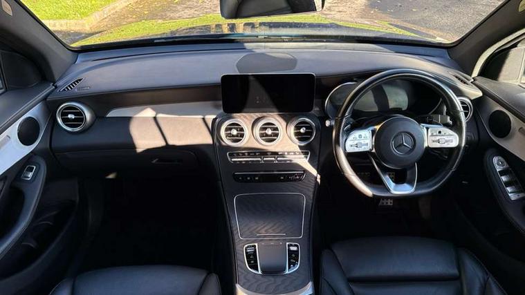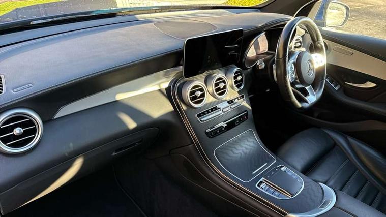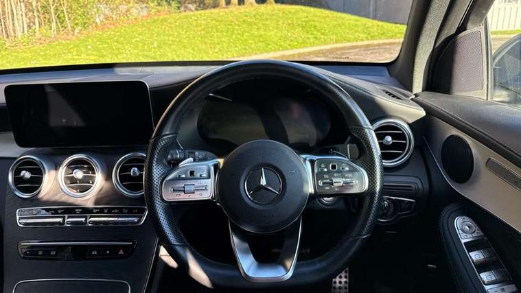 Active parking assist with parktronic system, Attention assist, Bluetooth interface for hands free telephone, Collision prevention assist plus, Cruise control with speedtronic variable speed limiter, Direct steer speed sensitive steering, DYNAMIC SELECT with a choice of driving modes (ECO, Comfort, Sport, Sport+ and Individual), Easy pack automatic powered tailgate, ECO start/stop function, Hard disk navigation, Hey Mercedes Voice activation, Instrument cluster with12.3-inch digital instrument cluster display. High resolution instrument cluster screen with choice of three display styles, MBUX Interior assistant, Mercedes connect me with remote online services, Multi function trip computer, Outside temperature display, rear seatbelt status indicator, Remote and charging services plus, Remote boot release, Reversing camera, Service indicator (ASSYST), Smartphone integration with Apple CarPlay and Android auto, Traffic sign assist, 1 x 3 pin domestic 8m straight charging cable, 1 x type 2 and 3 phase 4m straight wallbox cable, 4MATIC permanent four wheel drive, 50 litre fuel tank, 9G TRONIC plus automatic transmission with steering column gear selector, DIRECT SELECT steering wheel gearshift paddles, Diesel particulate filter, Sports suspension tuned for improved handling and driving dynamics, 5 speakers, Frontbass loudspeakers, MBUX multimedia system with DAB digital radio and touchpad, Media display 10.25-inch touchscreen display, Pre installation for Mercedes Benz Link, USB ports x 2 in centre console, Adaptive brake lights, Aluminium roof rails, AMG bodystyling - AMG front apron with sporty air intakes and chrome trim element, AMG diffuser-look rear apron with insert in black, Body colour door mirrors, Body coloured bumpers, Electric windows one touch open/close, Electrically adjustable and heated door mirrors, Front, side and rear exterior chrome trim, Headlamp assist automatic headlamp activation, LED high performance headlamps with integrated LED daytime running lights, LED tail lamp, Motor way mode function and locator lighting, Privacy glass with dark glass from B pillar backwards, Radiator diamond grille, Rain sensor windscreen wipers, Range adjustable headlights, Rear wiper, Running boards, Tinted glass all round with single layer safety glass, Two chrome plated tailpipe trim elements, 2 way rear head restraints, 3-spoke multifunction sport AMG steering wheel in black nappa leather with flattened bottom section, chrome insert and perforated leather in grip area, 40:20:40 split folding rear seats, Ambient lighting, AMG floor mats with edging and embroidered AMG lettering, AMG sports seats, Artico man-made leather upper dashboard with contrast topstitching, Automatic child seat recognition sensor, Black roof lining, Dividing net - rear, Double cup holder in centre console, Easy-pack removable load compartment cover, Front armrest with storage box, Front door sills with Mercedes Benz lettering, Front head restraints, Front seats with electric adjust (backrest, height and seat cushion inclination) with 4 way electric lumbar support and manual cushion depth adjust, Heated front seats, Height/reach adjustable steering column, Illuminated and lockable glove compartment, Leather upholstery, Pre-entry climate control, Rear top tether child seat ISOFIX attachment, Sports pedals with stainless steel surfaces and rubber studs, Steering wheel with touch control buttons, THERMOTRONIC 3 zone automatic climate control, Interior lighting pack - GLC, Mirror pack - GLC, Storage pack - GLC, 3 rear 3 point seatbelts, Active bonnet, Adaptive brake system with HOLD function and brake drying in the wet, ASR, Black seat belts, Brake calipers with Mercedes-Benz lettering + perforated brake discs, Child proof door locks, Dual-stage airbags - driver and front passenger, driver knee bag and window bags for driver, front passenger and rear passengers, Electronic parking brake, Electronic stability programme (ESP) with curve dynamic assist and cross wind assist, Front and rear seatbelt reminder, Front passenger seat occupancy sensor, Hill hold function, Radar-based recuperation, Tyre pressure monitoring system, Warning triangle and first aid kit, Alarm system/interior protection/immobiliser, Automatic door locking, KEYLESS-GO starting function, Remote central locking, Open pore black ash wood trim, 20" AMG multi spoke design alloy wheels painted in titanium grey with high sheen finish, Run flat tyres, Summer tyres,