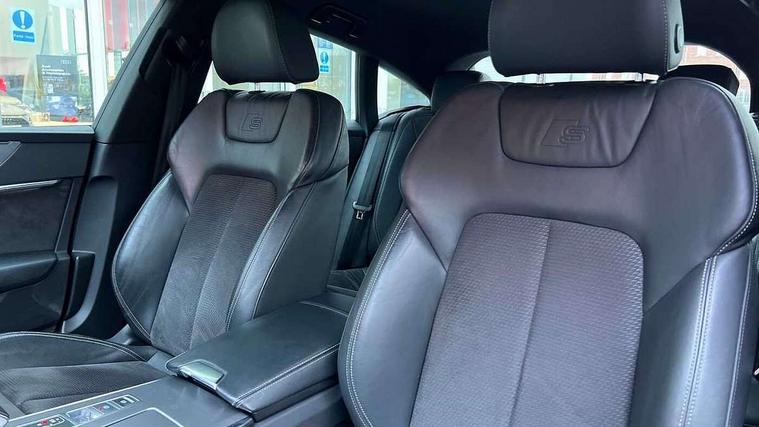 Audi connect safety and service (e-call), Audi drive select, Audi phone box with wireless charging, Audi smartphone interface, Audi virtual cockpit - 12.3" high resolution LCD digital instrument cluster display, Automatic start/stop system with coasting functionality, Colour driver's information system display, Electric boot release, MMI nav plus with MMI touch + 10.1" and 8.6" HD haptic touch screen/3D city models/country information/online map/route info and personal route assist, Natural voice recognition, Operating buttons in black, Power operated tailgate, Rear view camera, Service indicator, 24 litre AdBlue tank, Diesel particulate filter, Audi music interface - 2 USB ports with charger and data functions, Auxiliary input socket, DAB digital radio module, Frameless auto dimming interior rear view mirror, Front and rear electric windows, Headlight washers, Heat insulating glass in side and rear windows, High gloss black radiator grille with chrome single frame surround, LED rear lights, Rain and light sensors, Retractable rear spoiler, S line air inlet design with inlay in high gloss black, S line badge on front grille, S Line badge on wings, S Line Black rear diffuser with chrome inlays and rear grille, S Line front and rear bumpers, S Line side skirts, Signature LED daytime running lights, Towbar preparation, Windscreen with acoustic glazing, 4-way electric lumbar support, 40/20/40 split folding 3 seater rear seat bench with rear centre armrest, Auxiliary heater, Black cloth headlining, Electrically adjustable front seats - driver seat with memory, Front and rear headrests, Front centre armrest, Height/reach adjust steering wheel, Illuminated sun visors with vanity mirrors, ISOFIX child seat mounting and Top Tether with front passenger airbag deactivation, Leather gear lever, Leatherette upper instrument panel and door shoulders, Luggage compartment, Rear centre armrest, S line front and rear floor mats with contrast stitching, Stainless steel pedals and foot rest, Tool kit and car jack, Non smoking pack - A7, 3 point seatbelts on all seats, Driver and passenger airbags, Electromechanical parking brake, Electronic stabilisation control including ABS, ASR and EDL, Extended pedestrian protection measures, Hill hold assist, Seatbelt warning, Tyre pressure warning, Warning triangle and first aid kit, Anti theft alarm with tow away protection, Anti-theft wheel bolts and wheel loosening detection, Immobiliser, Keyless Go, Preparation for tracking system, Remote central locking,