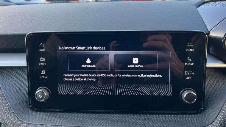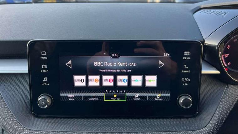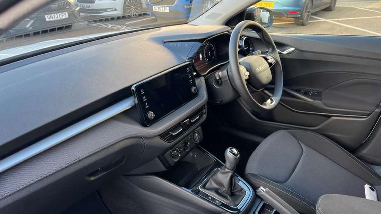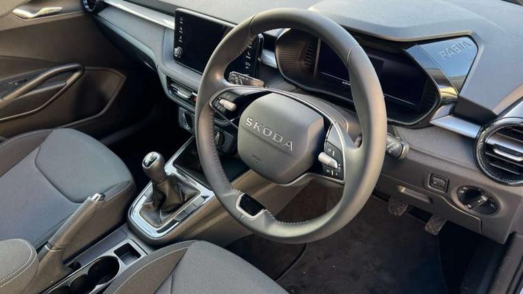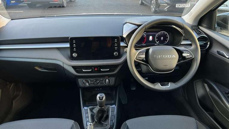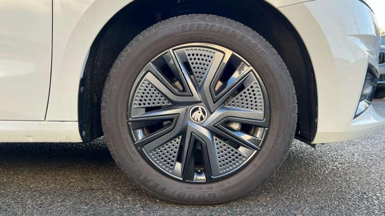 Advanced driver attention and drowsiness monitor, Bluetooth connection, Electromechanical power steering, Exterior temperature gauge, Rear parking sensors, Service interval indicator, Traffic sign recognition, Virtual cockpit with 10.25" colour display, Wireless SmartLink for Apple CarPlay and Android Auto, 6 Speakers (4 in front and 2 in rear), Auxiliary socket for external MP3 player, DAB digital radio reception, Body coloured bumpers, Dimming rear view mirror with black frame, Door mirror integrated indicators, Front and rear electric windows, Front window wiper intermittent control, Headlight range control - Automatic, Ice scraper in fuel cap, LED daytime running lights with coming and leaving home feature, LED rear lights, Privacy glass, Rear LED fog light, Rear side wing doors, Rear window wiper with washing nozzles, Roof mounted spoiler, SKODA tailgate lettering in chrome, Third brake light, 2 reading lights in front and 2 reading lights in rear, 3 rear headrests, Backrest split and folding, Central console with removable cup holder and storage box, Chrome handbrake release button, Fabric upholstery, Front centre armrest, Gearshift knob/handle in leather, Grain satin black interior door handles, Hand brake lever handle in leather, Height adjustable front headrests, Height adjustable front seats, Height adjustable steering wheel, ISOFIX and TopTether anchorage points to the outer rear seats, ISOFIX and TopTether on the front passenger seat, Luggage compartment lighting, Manually adjustable lumbar support in front seats, Pollen filter, Rear seat bench unsplit, Single front passenger seat, Storm grey headlining, Sun visors with mirror and airbag label on passenger side, Textile floor mats, Ticket holder, Umbrella in drivers door, 3-point height adjustable front seats belts with pretensioner and force limiter, Automatic warning lights in case of crash, Driver and passengers airbag with switch off function, e-Call+, ESC including ABS, MSR, ASR, EDS, HBA and XDS, Front and rear seat belt warning, FRONT ASSIST (AEB City and AEB Inter Urban), Front side airbags, Head airbags, One tone horn, Pedestrian protection, Three rear 3-points safety seat belts with pretensioner and force limiter including stop function for outer rear seat belts, Tyre pressure monitoring system, Anti-theft alarm system including immobiliser, interior monitoring, backup horn, and towing protection, Central locking with radio remote control, interior controls, SAFE function and 2 foldable keys, KESSY - Keyless engine start/stop, Colour Edition air vents, Grain satin black central console cover, Metallic grey upper decorative trim, Satin black door and side trim panel in front, Textile Kota grey lower decorative inserts, Anti-theft wheel bolts protection, Super-low rolling resistance tyres,