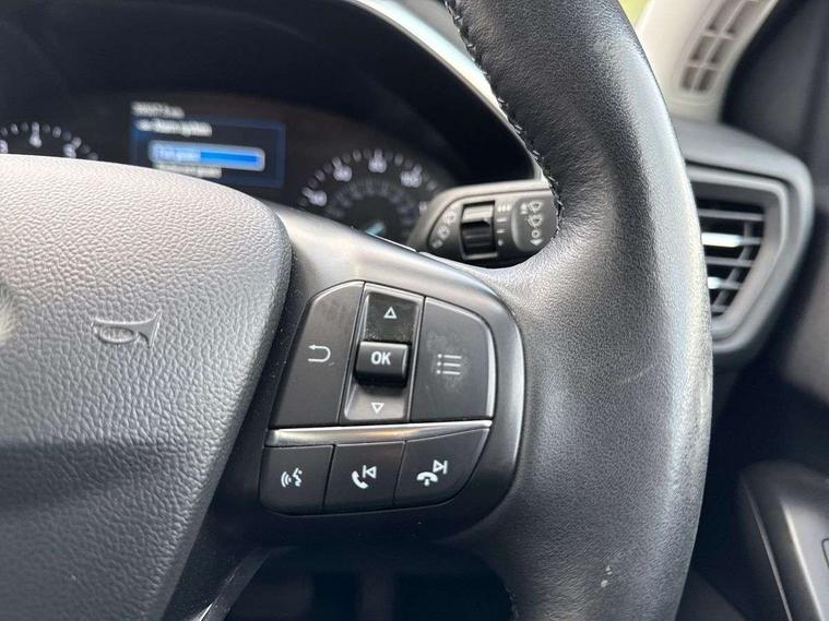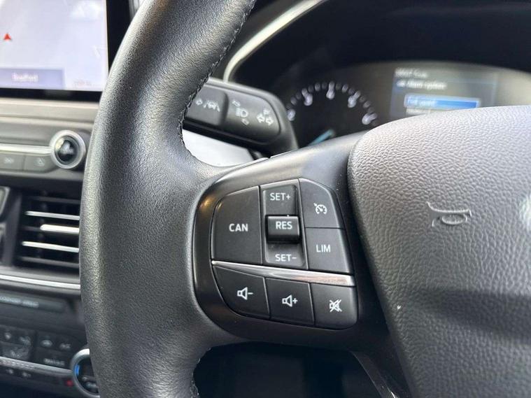 Bluetooth system, Digital clock, Easy fuel capless refuelling system, Eco mode, Ford pass connect, Ford SYNC 3 nav system with DAB radio, 8" colour touch screen, voice control, app link, Apple car play/Android auto and 4.2" TFT coloured cluster, Front and rear parking sensors, Intelligent speed assist, PAS, Rotary gear shift dial, Selectable drive mode, Trip computer, 2 USB ports, Aux input, 'Quickclear' heated windscreen/heated washer jets, Auto dimming rear view mirror, Auto headlamps (on/off), Automatic rain sensing wipers, Body coloured bumpers, Body coloured door handles, Body coloured electrically operated and heated door mirrors with side indicators, Electrically operated front and rear windows with one touch opening and closing, Front fog lamps with cornering function, Front variable intermittent wipers with electric wash, Halogen reflector headlamps, Heated rear window, LED daytime running lamp, LED rear lamps, Power folding door mirrors with puddle lights, Tailgate wash/wipe, Upper grille with chrome surround and horizontal bars, 3 spoke leather trimmed steering wheel with integrated audio controls, 60/40 split back and cushion rear seats with 2 height adjustable headrests, Ambient lighting, Centre console with sliding front armrest, Cloth upholstery, Dual zone electronic air temperature control, Front/rear floor mats, Heated front seats, Height adjustable front headrests, Isofix child seat preparation, Paddle shift controls, Reach + rake adjustable steering column, Rear centre headrest, ABS+Electronic Brake force Distribution, Auto hold function, Driver airbag, Electronic parking brake, Electronic stability control, Front and rear seatbelt reminder, Front inertia reel height adjustable seatbelts with pre-tensioners, Front passenger airbag, Front side airbags, Hill start assist, Passenger airbag deactivate switch, Post collision braking, Pre collision assist with autonomous emergency braking and pedestrian/cyclist detection, Side curtain airbags, Three rear inertia reel lap/diagonal seatbelts, Tyre pressure monitoring system, Ford keyfree system with Keyless entry and keyless start, MyKey system, Remote central locking & engine immobiliser, Thatcham category 1 alarm, 16" 15 spoke sparkle silver alloy wheels, Mini steel spare wheel,