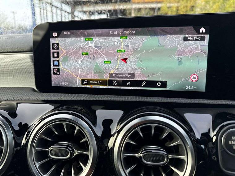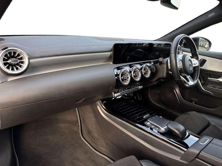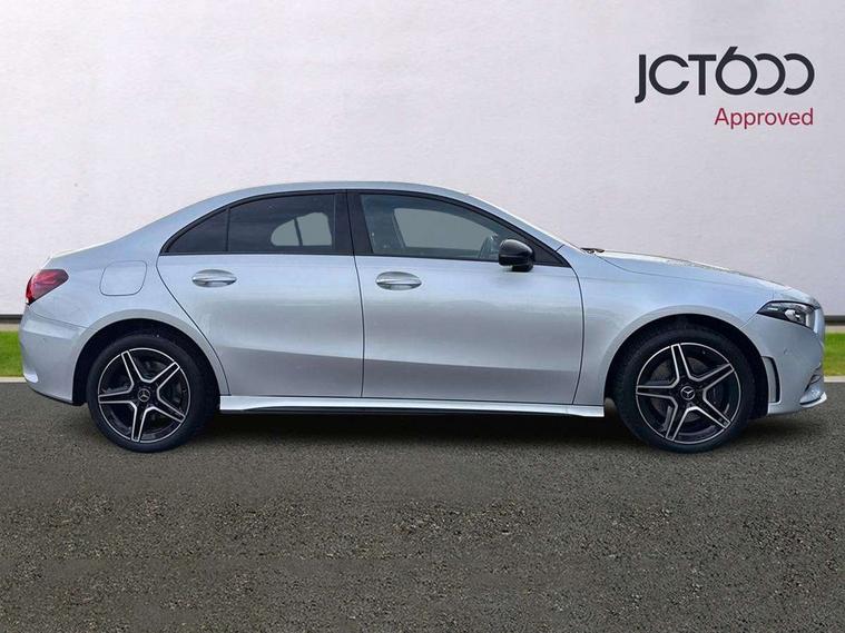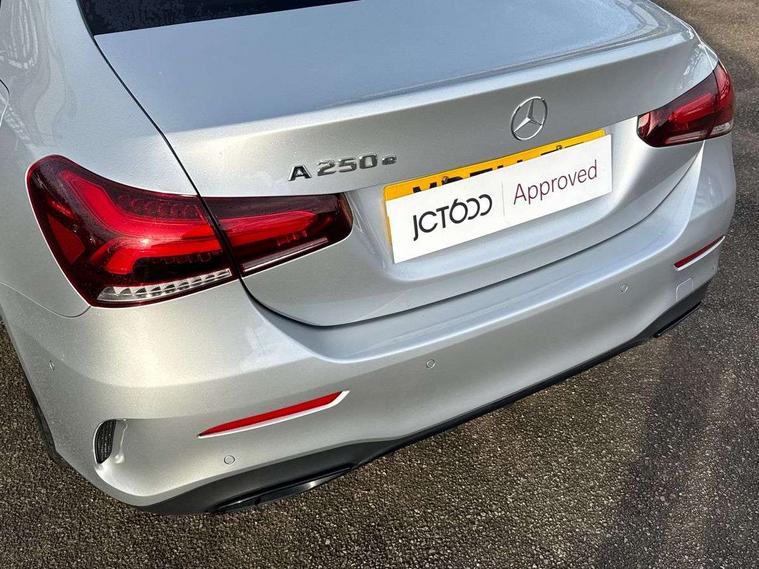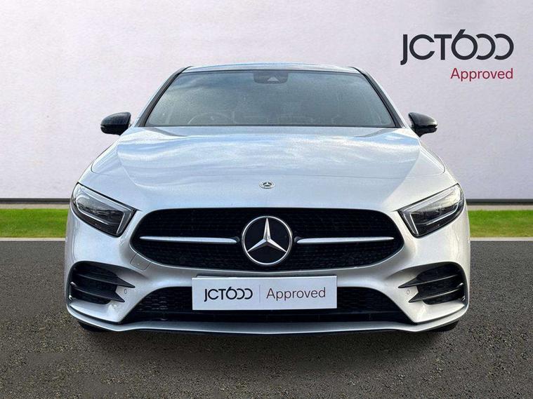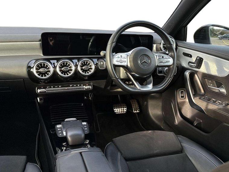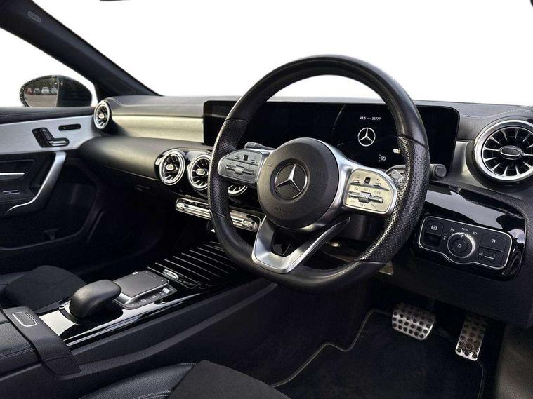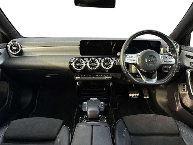 10.25" Digital instrument cluster display screen, 10.25" media display, 180 degree rear view camera with parking guidelines, Acoustic ambient protection, Active parking assist with visual and audible warning of detected obstacles, Attention assist, Brake pad wear indicator warning light, Car wash mode, Direct steering, Dual bluetooth interfaces, DYNAMIC SELECT with a choice of driving modes (ECO, Comfort, Sport and Individual), ECO start/stop function, Fluid level warning indicator for fuel, oil, coolant and washer fluid, Hard-disk navigation, Hey Mercedes Voice activation, Lamp failure indicator, Lane keeping system, Mercedes me connect including emergency call system, accident recovery, breakdown and maintenance management, Mercedes me remote services, Outside temperature gauge, Owners manual in English, Pre-installation for private car sharing, Preinstallation for Mercedes Benz link, Remote and charging services plus, Service indicator (ASSYST), Smartphone integration with Apple CarPlay and Android auto, Traffic sign assist, Trip computer, Ultrasonic sensors positioned in the front and rear bumpers, 7.4 kW monophase on board charger, Comfort suspension, Mode 3 charging cable 11 kW, Rear axle multi-link, 10 speakers, 2 USB ports (type C) in rear stowage compartment and one in front of center console, DAB Digital radio, MBUX multimedia system with DAB digital radio and touchpad including satellite navigation, Mercedes-Benz sound system - 100W, 4 Electric Front and Rear windows, Adaptive brake lights, AMG bodystyling - Front apron with splitter in chrome, rear apron with chrome trim and chrome visible trim elements in tailpipe, Black weather strip, Body colour bumpers, Body colour door handles, Body colour side skirt, Body coloured door mirrors, Edition badging on the front wings, Electric adjustable and heated door mirrors with integrated LED side indicators, Exclusive diamond radiator grille, Exhaust system - Twin visible tailpipes in polished stainless steel, Headlamp assist automatic headlamp activation, Heated glass rear windscreen + timer control, High gloss black beltline, LED tail lamp, Multibeam LED with adaptive highbeam assist plus, Panoramic sliding sunroof, Privacy glass, Radio aerial, Rain sensing windscreen wipers with two sensitivity settings, Rear fog lights, Third brake light featuring LED technology, Window line trim strip in high gloss black, 3 pin charging cable plug, 3 Spoke flat bottom leather multi function steering wheel with perforated leather in grip area, 40:20:40 split folding rear seats, Artico man-made leather/Microfibre Dinamica upholstery with contrast stitching in light grey, Auto Mercedes-Benz child seat recognition sensor, Black air vents with surround in silver chrome, Black roof lining, Brushed stainless steel sports pedals with rubber studs, Charging socket, Controller on centre console with chrome surround, Electrically adjustable front memory seats including lumbar support, Floor mats with black top stitching and embroidered edition logo and piping in light grey, Front centre armrest with storage compartment, Front seat backs luggage nets, Front seat cushion length adjustment, Front sports seats with adjustable head restraints, Galvanished gear shift paddles on steering wheel, Heated front seats, Height/reach adjustable steering column, Illuminated front door sills with changeable cover, Interior lighting - 64 colour Ambient lighting, Interior mirror with reading lamps in black and frameless, Pre-entry climate control, Rear armrest with 2 cupholders, Rear head restraints, Seat occupancy sensor for front passenger seat, Stowage compartment in centre console with retractable cover, Sunvisors with illuminated vanity mirrors, Touchpad on center console, Twin front cupholders, Two zone thermotronic luxury automatic climate control, Light and sight pack - A Class, Mirror package - A Class, Night pack - A Class Saloon/Hatchback, Seat comfort pack - A Class, 3 rear 3 point seatbelts, ABS with Brake Assist, Active bonnet, Adaptive brake assist with hold function and hill start assist, Black seatbelts, Childproof locks manually operated for rear doors and electrically operated for rear power windows, Crash responsive emergency lighting, Driver and passenger head and side airbags, Drivers knee airbag, Dual stage driver/passenger airbags, Electronic parking brake, ESP curve dynamic assist, ESP with ASR, Front and rear seatbelt reminder, Front brake callipers with Mercedes Benz lettering, ISOFIX and top tether child seat fixing points in two outer rear seats, Perforated front brake discs, Radar based regeneration, Tyre pressure monitoring system, Warning triangle and first aid kit, Window airbags, Alarm system/interior protection/immobiliser, Keyless entry lock/unlock, Keyless Go, Remote central locking and crash sensor with emergency opening function, Urban guard vehicle protection system with immobiliser and interior protection, Matrix look light longitudinal grain aluminium trim element, 18" AMG 5 twin spoke light alloy wheels aerodynamically optimised painted in black with highsheen finish, Summer tyres, Tirefit sealant kit,