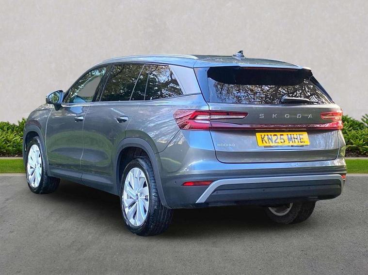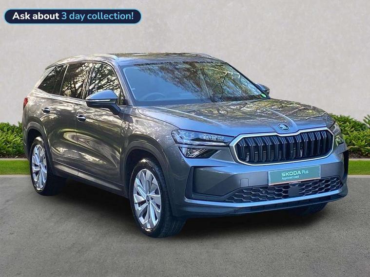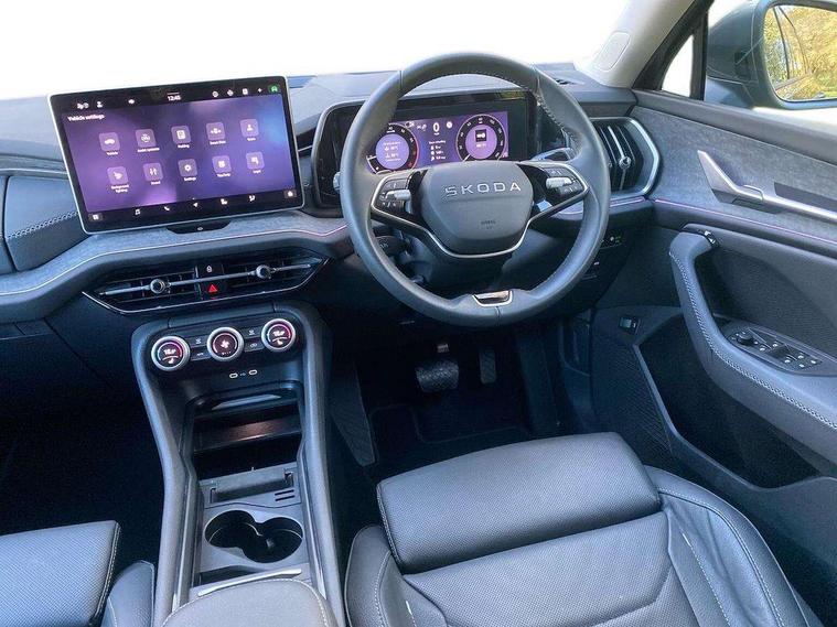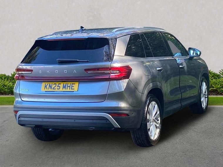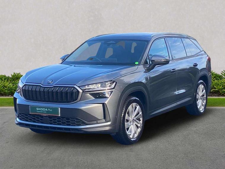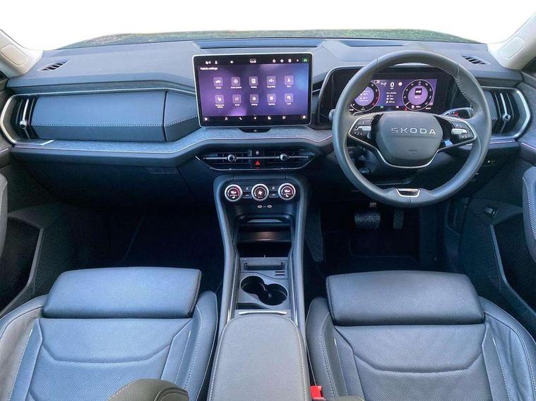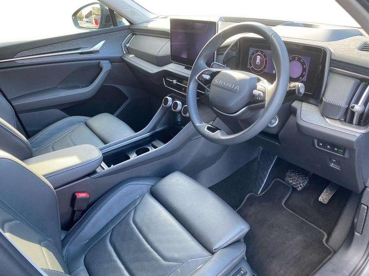 13" satellite navigation touchscreen display, Blind spot detection with door exit warning, Bluetooth system, ChatGPT functionality, Driver alert - Fatigue and drowsiness monitor, Dry display cleaner, Emergency call, Front and rear parking sensors, Front cross traffic assist, Lane assist, PAS, Rear traffic assist, Tailgate unlocking from outside, Traffic sign recognition, USB C Port x 2 in front centre console, Virtual Cockpit - 10.25" digital display, Voice control system, Wireless charging for two smartphones (15W) with cooling function, Wireless SmartLink for Apple CarPlay and Android Auto, Stop/start function, 2x USB-C in the rear, DAB Digital radio, Aero front windscreen wipers with intermittent function, Auto dimming rear view mirror, AWL (all weather lighting) and all weather light with cornering function, Black wheel arch surrounds, Body colour bumpers, Body colour door mirrors and handles, Cornering light and poor weather light, Electric folding /adjustable/separted heated/folding door mirrors, auto dimming with boarding sports and memory function, Electric front and rear windows, Exterior black decorative trims, Heat insulating glass in windshield, Heated rear window, Ice scraper in fuel tank cap, Invisible tailpipe, LED daytime running lights, LED third brake light in rear spoiler, Light assistant with automatic headlight control and coming home feature, Logo projection in door mirrors, Privacy glass, Rear roof spoiler, Rear side wing doors, Rear window wiper, Red decorative strip between rear LED lights, Safety reflectors on front and rear doors, Unique dark chrome design logo on alloy wheels, Window control switches with black trim, Windscreen wipers with rain sensor, Without engine designation, 1.5l bottle holder points in all door, 1x centre rear reading light, 2 seat bench in 3rd row, 3 configurable smart dials with 32mm coloured display, 3 seat bench in 2nd row, 4 foldable roof handles with rear coat hooks, Ambient interior lighting - Dashboard, front-door stowage compartments, front and rear door panels and footwell lighting, Automatic gear selector on steering column, Chrome interior door handles, Driver/front passenger reading lights, Fabric headlining, Fixed bench 40:60:40 split folding backrests, Front and rear floor mats, Front centre armrest with jumbo box storage compartment, cup holder and 12V socket, Height adjustable front headrests, Isofix child seat fittings in outer middle row rear seats and front passenger with top tether, Manually adjustable steering column, Pollen filter, Rear centre armrest with cupholders, Rear seat boot backrest release, Single front passenger seat, Skoda lettering on steering wheel, Storage pocket including mobile phone pockets on the backs of the front seats, Sunvisors with illuminated vanity mirrors, Three rear height adjustable headrests, Ticket holder on A Pillar, Tri zone climate control, Umbrella in door panel x1 made from sustainable materials, Upper and lower glovebox with card holder and coin compartment, USB C port by rear view mirror for charging only (15W), Exterior styling pack - Kodiaq, Auto door release and activation of warning lights in the event of an accident, Driver and front passenger airbag with knee airbag and front passenger airbag deactivation, Electric child locks, Electronic parking brake, ESC (incl. ABS+EMD+MSR+ASR+EDL+HBA+DSR+RBS+ESBS+MCB+TSA+XDS), Front assist with braking reaction to vehicles, pedestrians and cyclists, Front disc brakes, Fuel cut off safety device, Height adjustable front 3 point seatbelts + pretensioners, Hill hold assist, Junction assist with automatic emergency braking, Rear disc brakes, Safety vest holder in door, Seat belt reminder for all seats, Three point rear seat belts, Two tone horn, Tyre pressure monitor, Anti-theft wheel bolts, Immobiliser, Remote central locking with 2 keys,