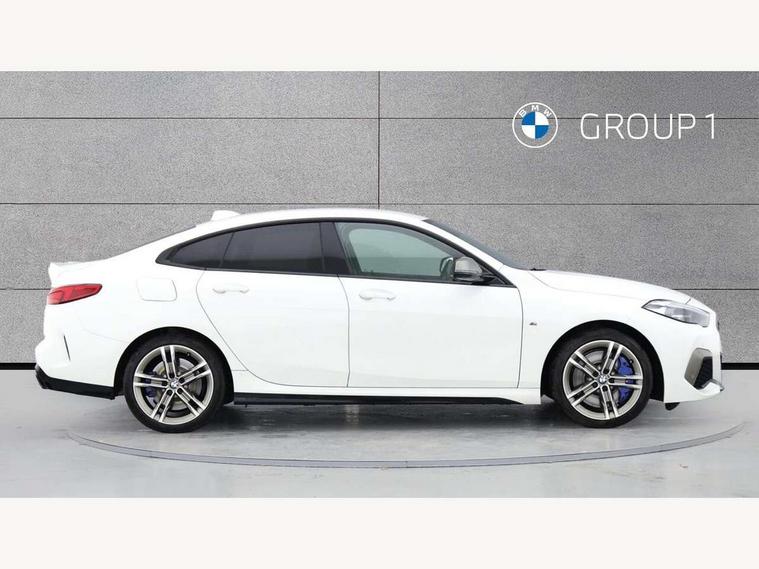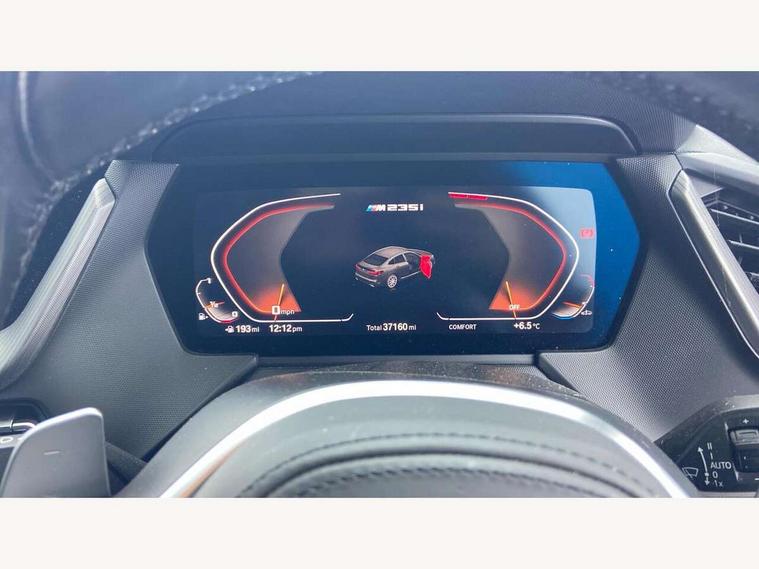 Active guard plus, Attentiveness assist, Auto start-stop, BMW Intelligent Personal Assistant, BMW Live Cockpit Professional with 10.25" high resolution instrument and control display, BMW Online services, BMW operating system with 7.0 mid interface, BMW Teleservices, Check Control warning system for monitoring of lights and door/luggage compartment open warning, Electro hydraulically controlled multi plate clutch in rear axle, Energy efficient operating strategy, iDrive controller with touch function and 7 short cut favourite buttons on centre console, Integrated navigation data with map data via USB +features such as 3D landmarks and micro city models, Integrated owners handbook, Intelligent voice assistant, M Sport steering with M235i xDrive M performance specific settings, On board computer - average speed+fuel consumption, service interval, clock/date, odometer/trip meter, outside temperature display and ice warning, Optimum shift indicator, Personal Profile, Pull away assistant, Speed limiting function, 2 balance shafts, 8 speed sport automatic transmission with electronic selector lever, auto P function, coasting idle, race track, sport, gearchange display manual mode, Aluminium lightweight construction, Double VANOS, Drive performance control with ECO PRO comfort + sport mode, Electronic differential lock, Engine cover with M performance designation, High precision injection, Larger fuel tank capacity (50 litres), Launch control, M235i specific heavily de-throttled engine intake air guide, M235i specific high-performance cooling package, M235i specific larger turbocharger with integrated divert-air valve, Performance Control, Petrol Particulate Filter, Power transmission of front wheel drive on the rear axle via angle transmission on the front axle differential and two part cardan shaft, VALVETRONIC engine management, Variable, stepless and infinitely adjustable distribution of drive torque between the front and rear axles, xDrive intelligent all wheel drive with M235i specific reinforced components, 2x USB Type C ports (for charging and data transfer), 4G LTE Connectivity with hard wied 4G network sim card, DAB digital radio, MP3 players and RDS double tuner, Automatically dimming rear view mirror, Body colour door handles, Direction indicator side lights integrated exterior mirrors, Electric windows - front and rear, with open/close fingertip control and trap release, Exterior mirrors - electrically folding with anti-dazzle, Fading support, Follow me home headlights, Front and rear bumper system with replaceable deformation elements, Front door sill finishers in black plastic with M235i designation, Heated, electrically adjustable exterior mirror aspheric on driver side, convex on passenger side, High gloss black B pillar finish, High gloss shadow line exterior trim, High level third brake light, LED daytime running lights, LED front fog lights, Lightweight engineering, M Performance exhaust system with valve control and minimised exhaust back pressure, M rear spoiler, Model designation on right side of tailgate includes xDrive designation onleft handside for M235i xDrive, Preparation for high beam assistant, Rain sensor with automatic headlight activation, Rear fog lights, Reinforced crank drive, new pistons and adapted con rods, Reversing light in rear light cluster, Welcome lighting, 12V power socket in centre console, 2 cupholders in front centre console, 3 rear seat head restraints, 3 spoke M sports design leather steering wheel finished in nappa leather with specific M badge, Additional under floor storage in luggage compartment, Anthracite finished floor mats with contrasting surround, Anthracite headlining, Automatic two zone climate control air conditioning, Child seat ISOFIX attachment for two outer rear seats and front passenger seat with anchorage points, Conditioned based service, Driver and front passenger seat heating, Front and rear door pockets including bottle trays, Front and rear side armrests integrated into door trim, Front armrest foldable with integrated storage compartment, Front centre interior light over interior mirror and rear centre automatic interior light when door is opened/ignition switched off or via remote key, Front head restraints, Front M Sport seats, Glove compartment, Glovebox with light, Luggage compartment lighting, Manually adjustment steering wheel column, Multi-function controls for steering wheel, Shift-by-wire selector shift, Steering wheel paddles, Sun visors with vanity mirrors and insert tab, Through loading system with 40/20/40 split folding rear seat, Two lashing eyes, Additional interior lighting pack - 2 Series Gran Coupe, Connected pack professional - 2 Series Gran Coupe, Extended storage pack - 2 Series Gran Coupe, M Sport exterior styling aerodynamics pack - 2 Series Gran Coupe 235i, 2 tone horn, Airbag - Front driver and passenger, front and rear head, front side, curtain head protection, manual deactivation of front passenger airbag possible, Anti lock braking system (ABS) with cornering brake control, BMW emergency call, Brake drying, Braking readiness, Crash sensor activating of airbags, Unlocking doors, hazard warning lights, interior light, safety battery terminal, Dynamic stability control + (DSC+), Dynamic Traction Control - DTC, Electrically operated hand brake, Integrated torsen mechanical limited slip differential on front axle, M Sport braking system in blue high gloss + blue painted brake calipers with M designation, M sport seatbelt, Rear brake discs, Rear child proof door locks, Seat belt security check for driver and front passenger, Seatbelt warning, Side impact protection, Three point seat belts on all seats including front belt stopper, pyrotechnic belt tensioners and belt force limiters, Trailer stability control, Tyre pressure monitoring system, Ventilated front disc brakes, Warning triangle and first aid kit, Central locking switch for all doors, fuel filler cap and luggage compartment, Deadlocking f