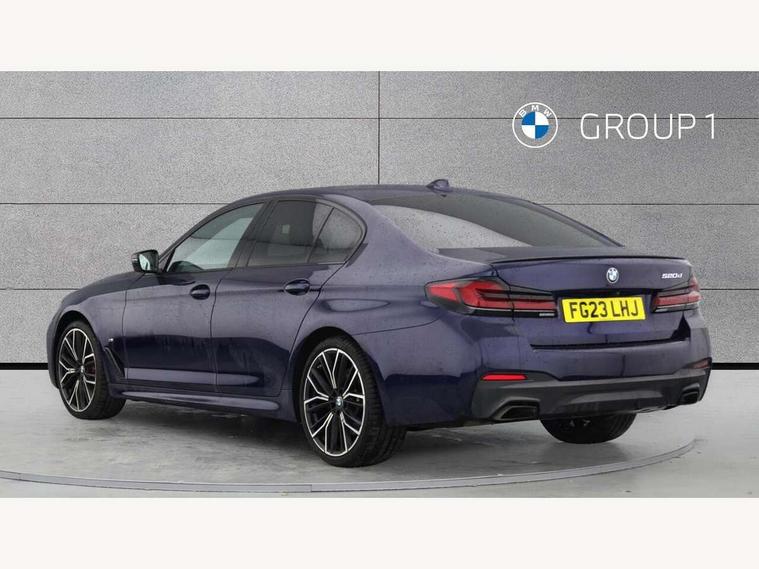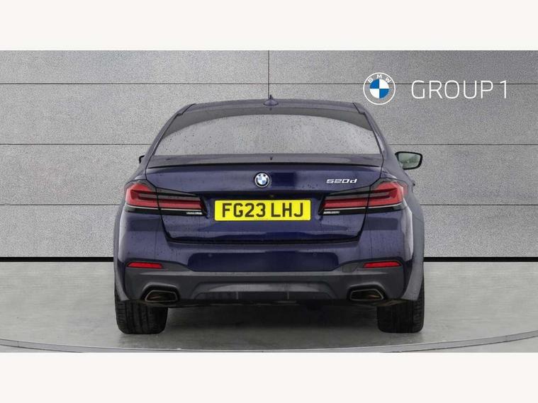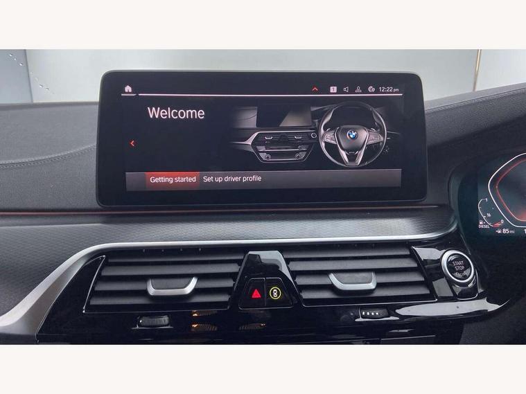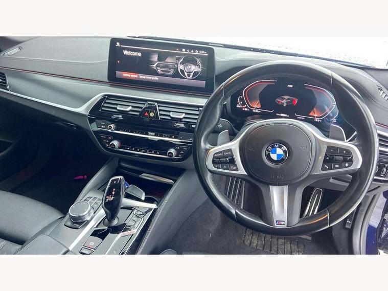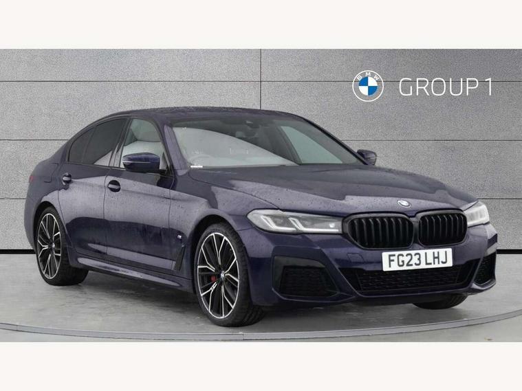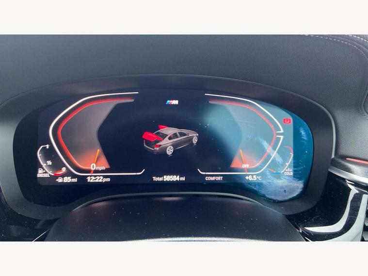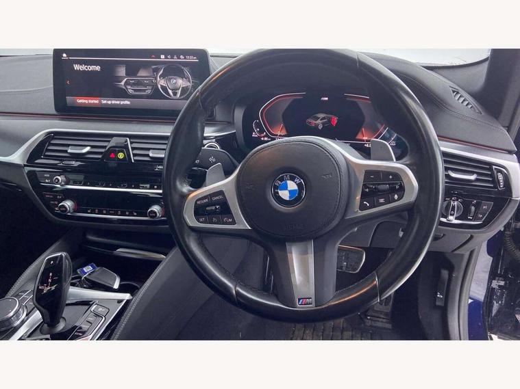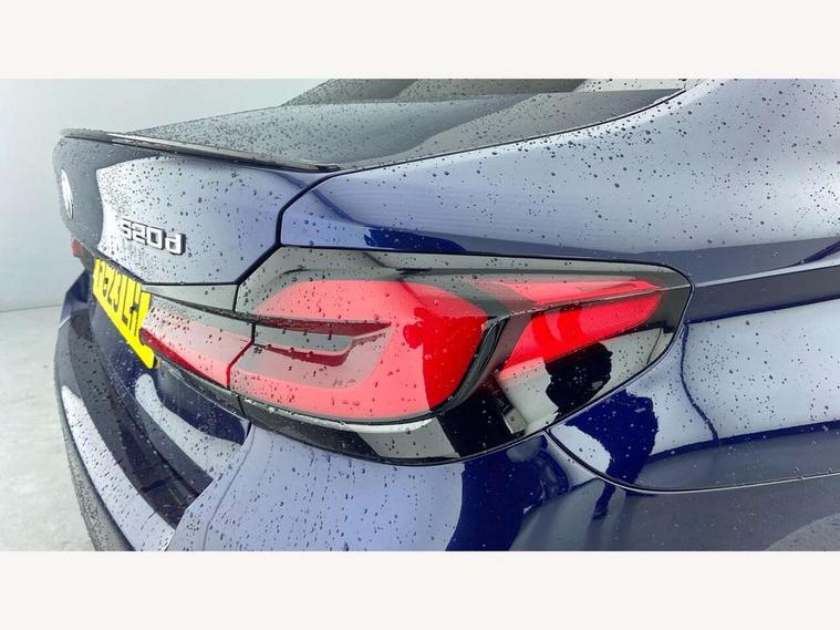 32GB hard disc drive (HDD) memory, Active Guard, Bluetooth connection, BMW ConnectedDrive online services, BMW Live Cockpit Professional sat nav system with 12.3" instrument display and high resolution control display, BMW Teleservices, Brake pad wear indicator, Cruise control with brake assist, Driving experience switch, eCall emergency call system, Electric Power Steering (EPS) with Servotronic, iDrive controller with shortcut buttons, Intelligent emergency call, Multifunctional instrument panel, Oil sensor for level and grade, On board computer inc. average speed, fuel consumption, liquid crystal Info display, journey computer, outside temperature display, personal profile, On-board diagnosis - OBD, Powered by Operating System 7.0, Service interval indicator, Speed limiting function, Stop/start button, 48V Mild hybrid technology, Diesel particulate filter, Drive performance control with ECO PRO comfort + sport mode, Engine cover with twin turbo designation, M sport suspension, Steptronic sport transmission with gearshift paddle switches on steering wheel, DAB Digital radio, Favourite buttons, Acoustic glazing, All round anti-corrosion system, Automatic windscreen wipers and automatic headlight, Automatically dimming rear view mirror, BMW Individual high gloss shadow line includes exterior mirror frame, window frame surround, B pillar finish, air breather in high gloss black, Body colour door handles, Body coloured bumpers, Door handle illumination, Dynamic brake lights with LED technology, Electric front and rear windows with fingertip open/close + anti-trap facility and comfort closing function, Electrically adjustable and heated exterior mirrors includes integrated direction indicators and automatic parking function, Folding exterior side mirror with auto- dimming, Follow me home headlight function, Heated windscreen washer jets, High gloss black active air stream kidney grille, LED daytime running lights, LED Headlights, LED third brake light, M designation on front side panels, left and right in chrome, M Sport exterior styling, Preparation for high beam assistant, Rear boot, Rear side wing doors, Trapezoidal visible exhaust tailpipes, 12V power socket in front and rear, 3 seat bench in 2nd row, Armrest - front and rear integrated door trim, centre console includes storage compartment, rear centre includes 2 cupholders, Child seat ISOFIX attachment with rear outer seats includes top tether, Cup holders (2 front and 2 rear), Front and rear footwell lights, Front reading lights, Height and length adjustable steering column and activation via lateral lever on the steering column, Lockable glove compartment with light, M door sill finishers, M specific pedals, M specific velour floor mats, Multifunction controls for leather steering wheel, Rear headrests, Single front passenger seat, Three spoke sport M leather steering wheel, Ambient lighting pack - 5 Series, Connected package professional - 5 Series, M Aerodynamic pack - 5 Series, Airbags - driver/front passenger, rear and side, first and second row seats head airbags, front passenger seat airbag deactivation, Anti-lock braking system (ABS), Automatic Stability Control (ASC), Brake assist function, Brake energy regeneration, Cornering brake control (CBC), Crash sensor activating central locking release, hazard warning lights, fuel cut off and interior lighting, Deformation zones - front and rear with door reinforcements and bumpers up to 2.5 mph, DSC - Dynamic Stability Control, Dynamic brake control, Dynamic Traction Control - DTC, Electromechanical parking brake with automatic drive away release and auto hold function, Electronic brake force distribution, Engine drag torque control, Front and rear brake discs with interior ventilation, Front head restraints with anti-whiplash, Hill start assist, Mechanical child proof lock on rear doors, Passive protection for pedestrians, Rear door child safety locks, Side impact protection, Three point seat belts for all four seats, Two tone horn, Tyre pressure indicator, Warning triangle and first aid kit, Alarm system (Thatcham 1) with remote control and electronic engine immobiliser, Locking wheel bolts,