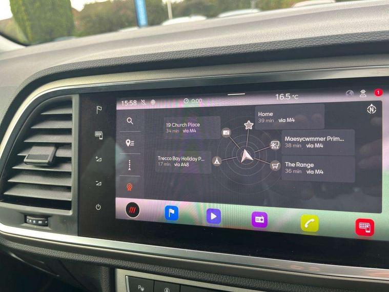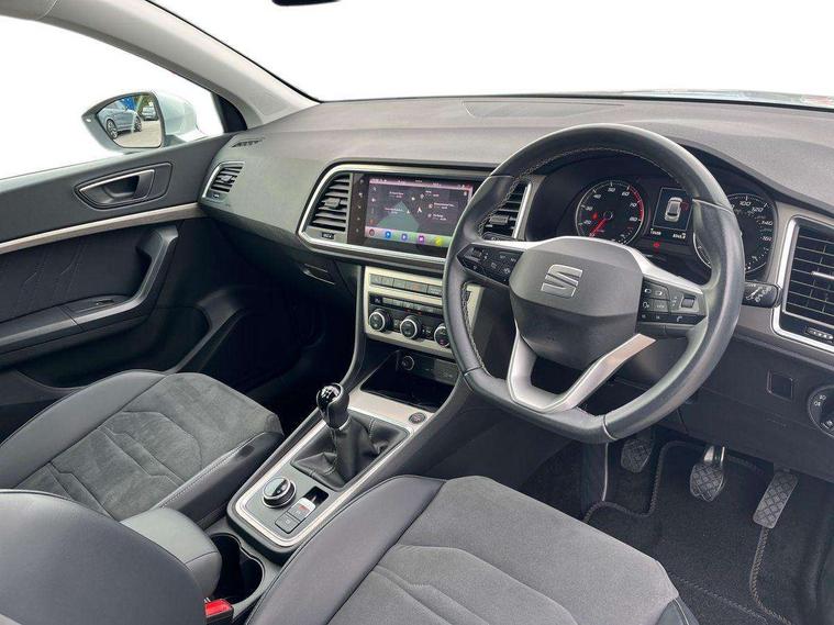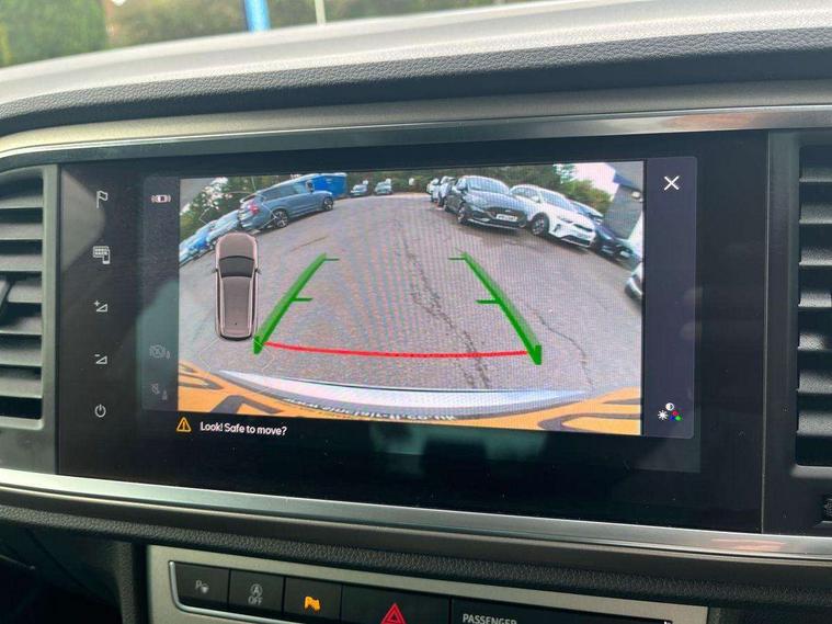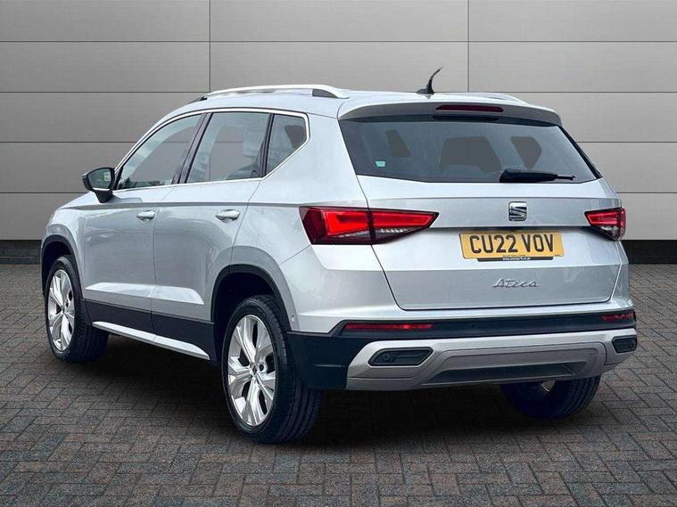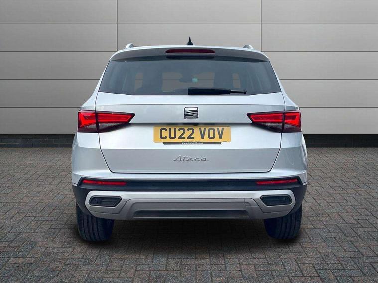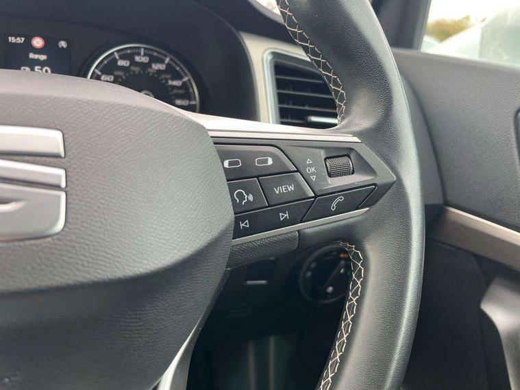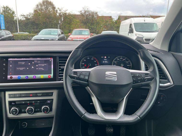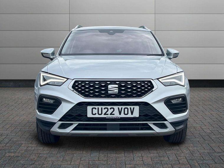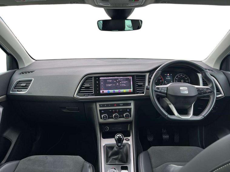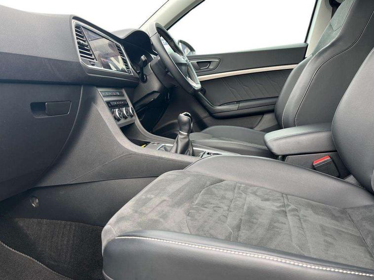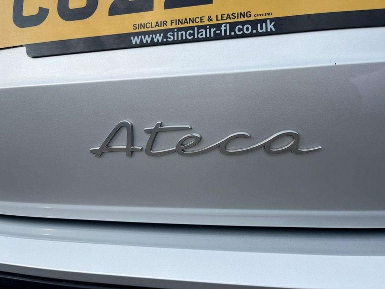 Colour multi-function on board computer display, E-call, Outside temperature gauge, Progressive power assisted steering, Rear view camera, SEAT drive profile with driving experience button - Normal, Sport, Eco and Individual mode, steering and throttle response, Self parking functionality (includes front and rear parking sensors), Trip computer, Wireless full link smartphone integration, Wireless phone charger, Steering wheel mounted audio/phone controls, Black simulated exhaust pipes, Black wheel arch surrounds, Body colour bumpers, Chrome front grille frame, Chrome roof rails, Chrome side window trim, Dark tinted rear windows, Daytime running lights, Door mirrors with welcome light silhouette, Dynamic headlight range control with self adjusting whilst driving, Electric adjustable/heated/folding door mirrors, Front and rear electric windows, Front grille hot stamping, Full LED headlamps with lens and LED front fog lamps with cornering function, Illuminated aluminium front door sill, LED rear tail lights with dynamic indicators, Rear fog lights, Rear side wing doors, Rear wash/wipe, Reflex silver side mouldings, 12V socket in front, 3 seat bench in 2nd row, 60/40 split folding rear seat, Dual zone climate control, Front and rear head restraints, Front centre armrest, Front seat back storage pockets, Height adjustable driver and passenger seat with lumbar adjustment, ISOFIX points in outer rear seats with top tether anchorage points, Leather steering wheel and gear knob, Microsuede upholstery with front comfort seats, Rear armrest and easy back seat release mechanism from boot, Single front passenger seat, Storage compartment under driver's seat, Convenience pack - Ateca, Interior lighting pack - Ateca, Navigation system pack with DAB - Ateca, Safe and driving pack with lane assist - Ateca, 3x3 point rear seatbelts, ABS, Traction control system (TCS), Electronic stability control (ESC) and Electronic differential lock system (XDS), Airbags - Driver and front passenger airbag with deactivation, front side, two curtain and driver's knee airbags, Electric parking brake with auto hold function, Front and rear seatbelt reminder, Hill hold control, Manual rear child locks, Tiredness recognition system, Traction control, Tyre pressure monitoring system, Alarm, Keyless entry, Locking wheel bolts, Chrome interior detailing, 18" Brillaint silver alloy wheels,