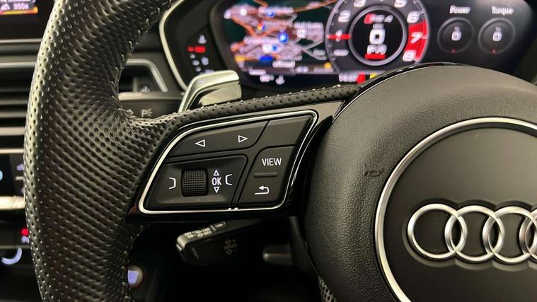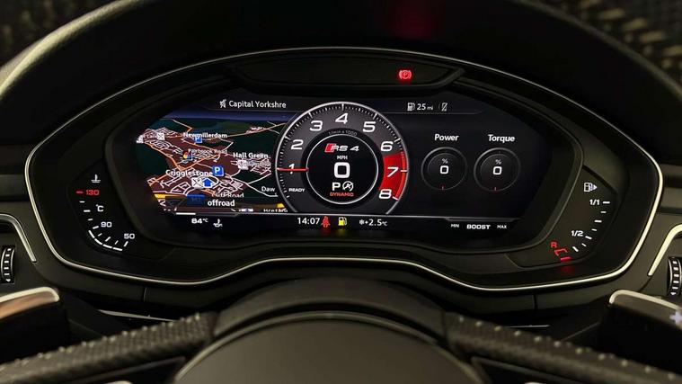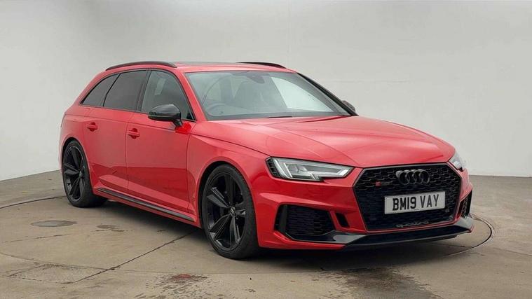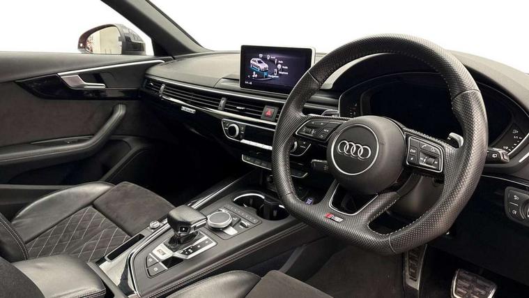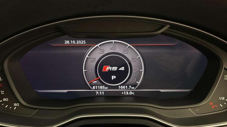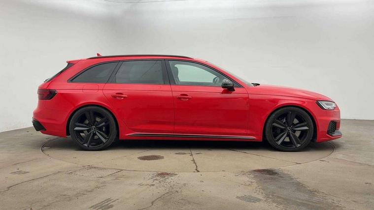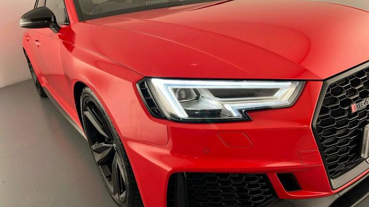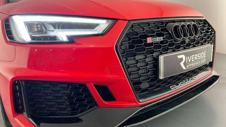 7" Colour driver information system, Audi drive select, Audi parking system plus with front and rear sensors, Audi phone box with wireless charging, Audi Pre sense collision avoidance, Audi side assist, Audi smartphone interface, Audi virtual cockpit with RS specific display, Automatic start-stop system with coasting functionality and efficiency programme, Bluetooth interface, Cruise control + speed limiter, Electromechanical power steering, MMI Navigation plus with MMI touch includes 10.1" high resolution colour MMI display, 3D map, Power opening/closing tailgate, Service interval indicator, Voice control system, 58 Litre fuel tank, Quattro sports differential, RS sports suspension, 2 USB interfaces and Aux-In jack, Audi sound system, DAB digital radio module, Acoustic windscreen, Auto dimming rear view mirror, Automatic headlights + automatic windscreen wipers, Blue tinted glass, Body colour door handles, Electric adjustable/heated/folding door mirrors, Electric front windows, Electric rear windows, Flared front and rear wheel arches, Front bumper with enlarged air inlets, Gloss black audi rings and name plates, Headlight range control, High beam assistant, High gloss black air ducts with quattro logo in matt titanium look, High gloss black door mirror housing, High gloss black front lip spoiler, High gloss black radiator grille, High gloss black roof rails, High gloss black side window capping strips, High gloss black triangular aperture at rear door, Honeycomb design grille with quattro logo, Lateral air inlets next to front headlights, LED daytime running lights, LED headlights with RS air intake, LED indicators in door mirrors, Panoramic glass sunroof, Privacy glass with rear acoustic glazing, Rain and light sensors, Rear wiper, Roof spoiler, RS 4 badges on grille, the front wing panels and rear, RS sport exhaust system, RS4 dual branch chrome tailpipes with left and right oval pipes, Side sill extensions in body colour with high gloss black inserts, Towbar preparation, 3 spoke flat bottomed high multi-function leather sport steering wheel with RS badging, 3 zone climate control, 40/20/40 split folding rear seats with rear centre armrest, Black cloth headlining, Electric load area cover, Electrically adjustable front seats, Front centre armrest, Front headrests, Front/rear floor mats, Height and reach adjustable steering wheel with full size airbag, Illuminated door sill trims with RS4 logo, Isofix child seat preparation for front passenger/outer rear seats inc passenger airbag deactivation, Leather door armrests and knee pad, Leather/Alcantara upholstery, Luggage compartment carpet, Rear centre armrest, Rear headrests, Retractable load area cover, RS Specific perforated leather gear lever knob with contrast stitching, Stainless steel pedals, Sunvisors with vanity mirrors, Tool kit, Top tether anchor plate for isofix child seat, Black styling pack - RS4, LED Interior light pack - RS4, Non Smokers pack, 3 point seatbelts on all rear seats, Adaptive driver and front passenger airbags, Black painted brake calipers with RS logo at the front, Electromechanical parking brake, Electronic stabilisation control including ABS, ASR and EDL, Enhanced braking system, Front head airbags, Front seatbelt pretensioners + load limiters, Front side airbags, Hill hold assist, Multi-Collision braking, Pop-up bonnet for pedestrian protection, Pre sense city, Seatbelt warning, Traction control, Tyre pressure warning, Variable restraint system, Warning triangle and first aid kit, Anti theft alarm, Anti-theft wheel bolts, Keyless Go, Remote central locking, Remote control key with RS emblem, Thatcham category 1 alarm + immobiliser, Piano black finish inlay, Tyre repair kit,