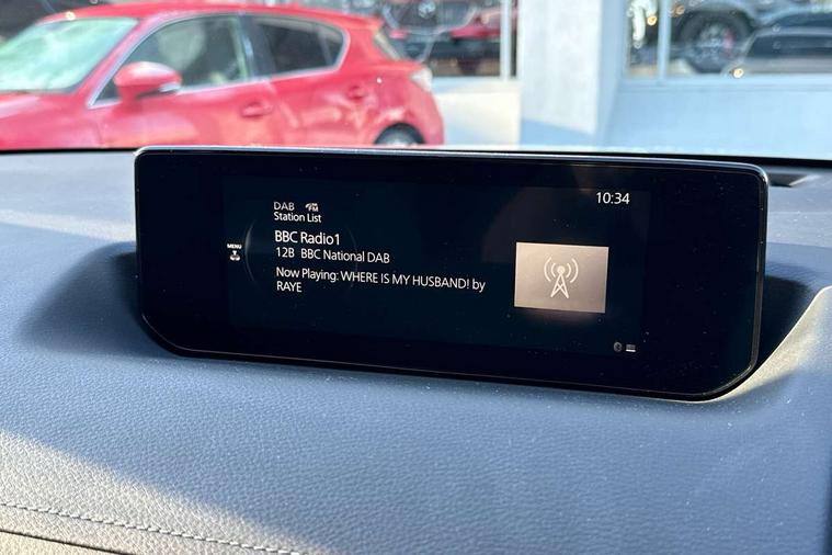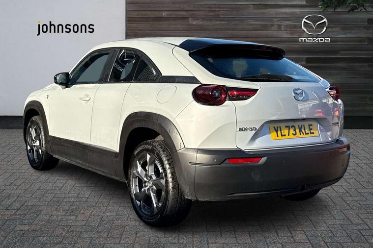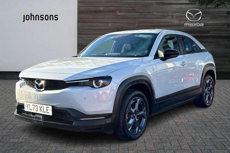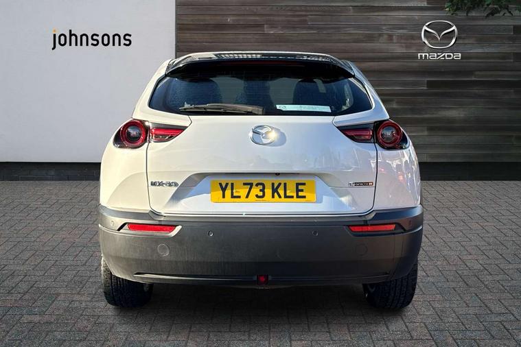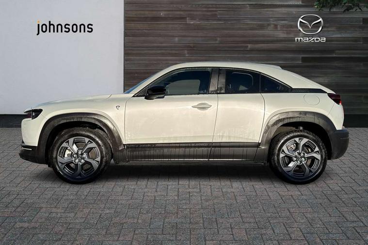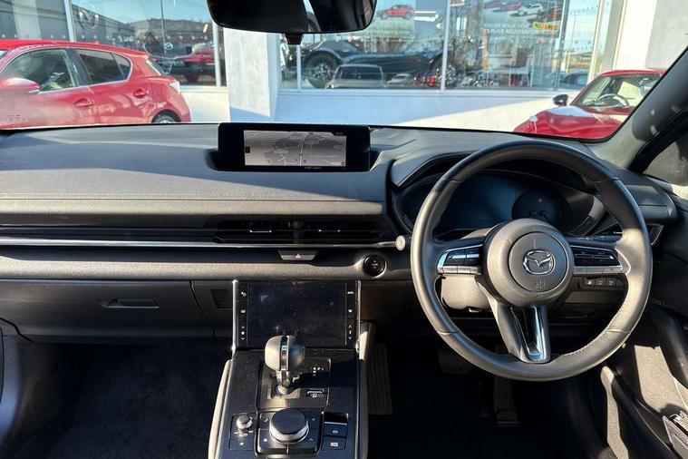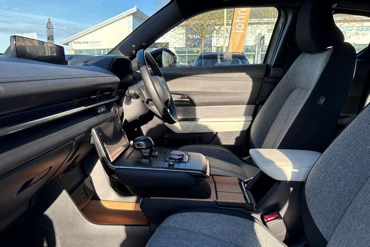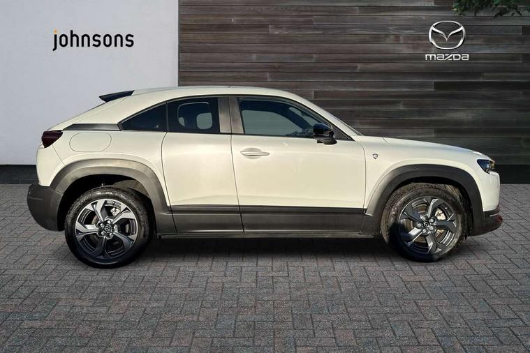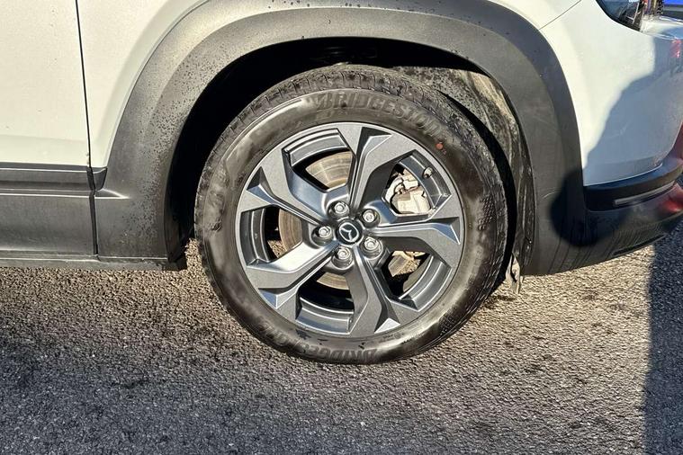 7" TFT Colour driver instrument panel display, 8.8" Colour centre touch screen display with Mazda Connect infotainment, Adaptive cruise control (Mazda radar cruise control) features stop and go, Apple car play/Android Auto, Blind spot monitoring with rear cross traffic alert, Driver attention alert system, E-call with GPS, Emergency lane keeping with blind spot assist and road keep assist, Emergency stop signalling system, Front and rear parking sensors, Integrated bluetooth, Integrated Mazda navigation system, Intelligent speed assist, Lane keep assist system (LAS) with Lane departure warning system (LDWS), PAS, Power start/stop button, Reversing camera, Service indicator, Trip computer, Windscreen projected colour active driving display (head up display) with traffic sign recognition, 11 kW triphase onboard charger, DC socket for rapid charging up to 40KW, Internal Combustion Engine Sound Emulator, Type 2 for mode 2 AC charging via 3-point plug, Type 2 for mode 3 AC charging via home or public charge points, 8 Speakers, DAB Digital radio, FM, Multimedia Commander including separate volume dial, Steering wheel mounted audio/bluetooth controls, Auto headlight levelling, Black door mirrors, Black front grille, Body coloured bumpers, Coming/leaving home lights, Dusk sensing headlights, Electric front windows with one touch auto up/down, Electrically adjustable door mirrors, Front, rain-sensing wipers with adjustable sensitivity and speed, Gloss black rear roof spoiler, Heated and auto power-folding door mirrors in black with integrated indicator lights, High beam control, LED 3rd brake light, LED daytime running lights, LED Headlights, LED rear combination lights, Rear side wing doors, Rear wiper, Satin black B-pillar and C-pillar garnish, Unique R-EV exterior badging, 12v electrical power outlet, 3 seat bench in 2nd row, 60/40 split fold down rear seats, Climate control air conditioning operated by the central 7" touchscreen control panel, Cloth upholstery, Door panel trim - cloth with soft touch armrest, Driver and front passenger two rear grab handles with rear coat hooks, Driver seat manual slide, recline and height adjust, Driver, front passenger and two rear door pockets, Drivers and front passengers sun visors with vanity mirrors and driver's ticket holder, Front and rear LED lighting, Front centre armrest with storage and two cupholders, Front passenger seat manual slide, recline and height adjust, Illuminated glovebox, ISOFIX child seat anchorage points attached on outer rear seats, Leather wrapped steering wheel and shift lever, Luggage compartment LED lighting, Mazda heritage cork accents on the console tray and cupholder lids, Rear centre armrest with two cup holders, Roof mounted sunglasses holder, Seatback pocket at rear of the front passenger seat, Single front passenger seat, Steering wheel telescopic and tilt adjustment, Tonneau cover, Two front and three rear height-adjustable head restraints, USB and 12V Outlet, 3 point ELR front seat belts x2 with pretensioners, 3x3 point rear seat belts, Anti-lock braking system (ABS), Collision avoidance braking, Driver central airbag, Drivers knee airbag, DSC - Dynamic Stability Control, Electric G-Vectoring control plus, Electronic parking brake with auto disengage function and auto hold function, Front and rear curtain airbags, Front dual stage driver and single stage front passenger airbags, Front passenger airbag cut-off switch, Front side airbags, Hill hold assist, Pre-crash safety system - Smart brake support (SBS) with turn-across traffic, Rear door child safety locks, Regenerative braking system (5 modes. Selected via paddle shift switches), Seatbelt reminder audible warning for driver, passenger and rear seats, Traction control system (TCS), Tyre pressure monitoring system (TPMS), Keyless Go, Remote central locking with deadlocking and automatic door lock when driving, Thatcham accredited alarm and immobiliser, 18" Grey metallic alloy wheels, Emergency tyre repair kit,