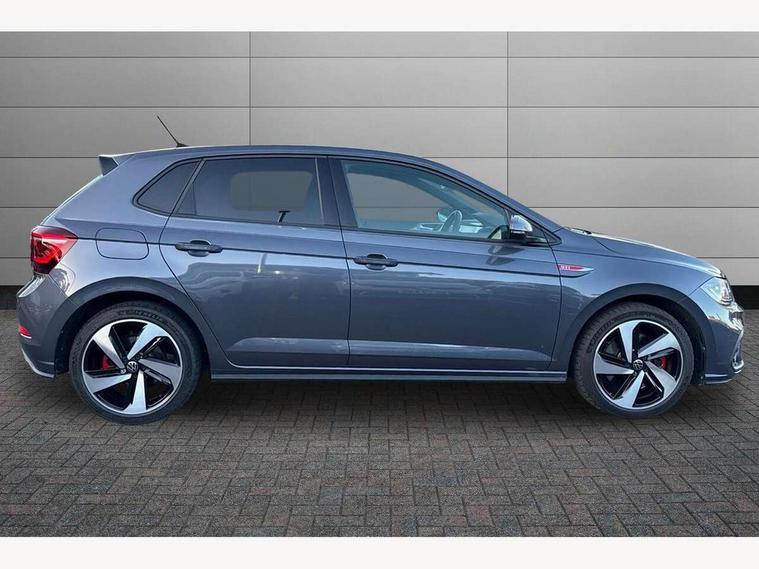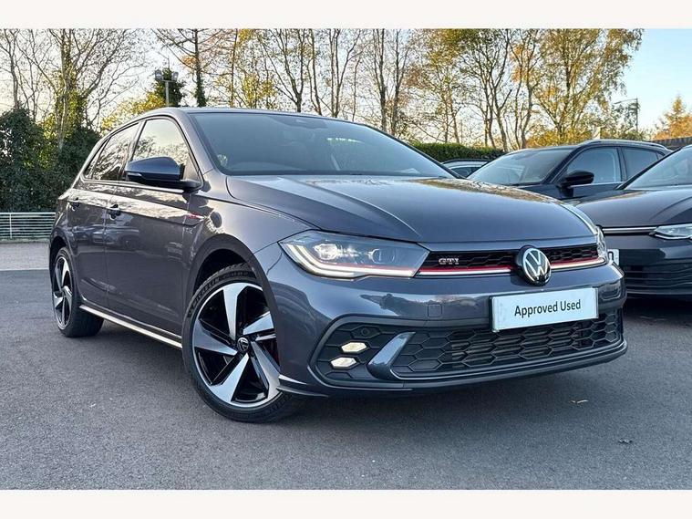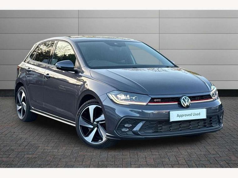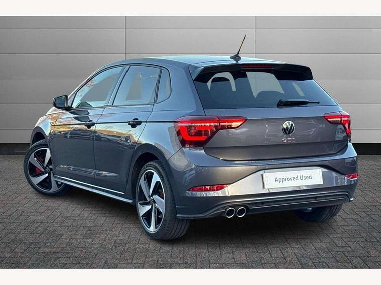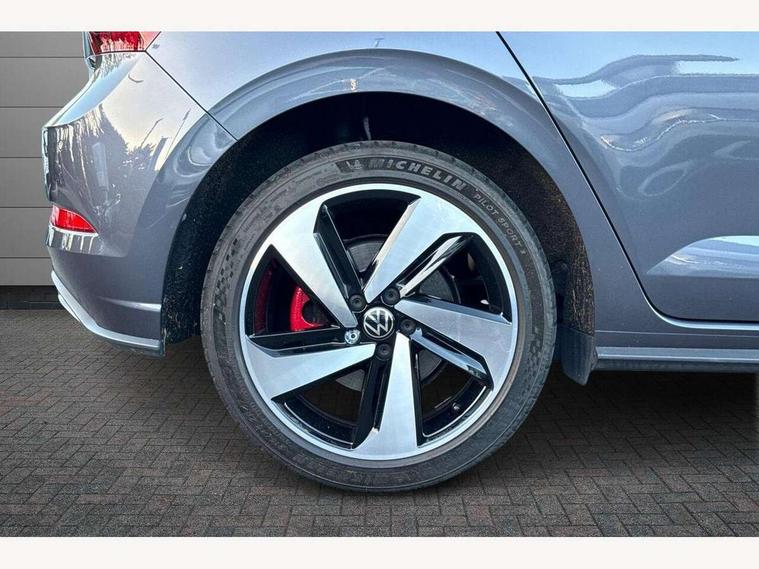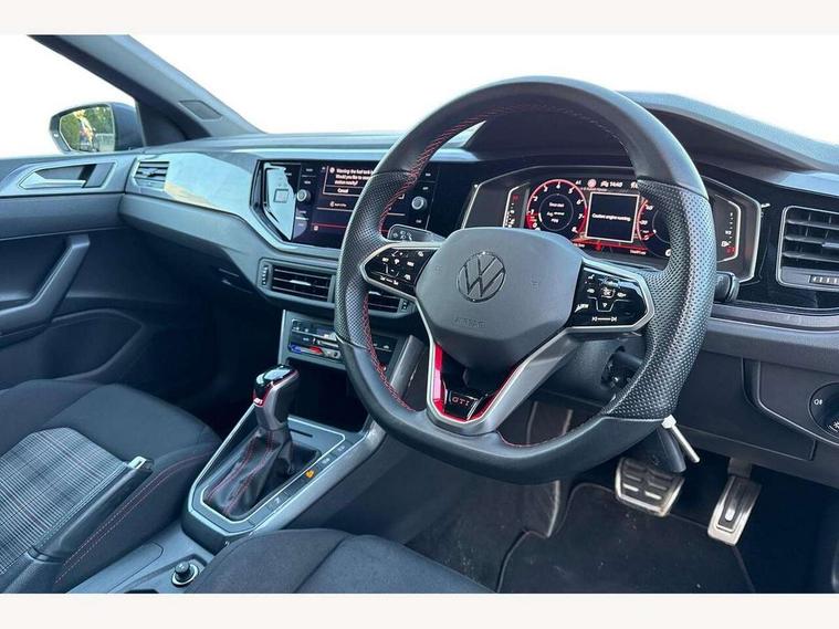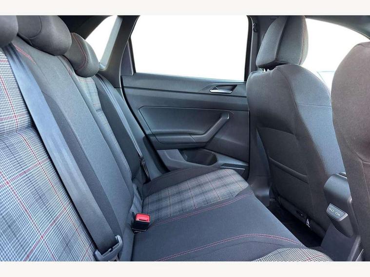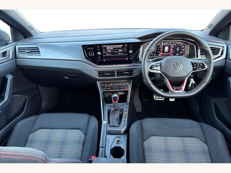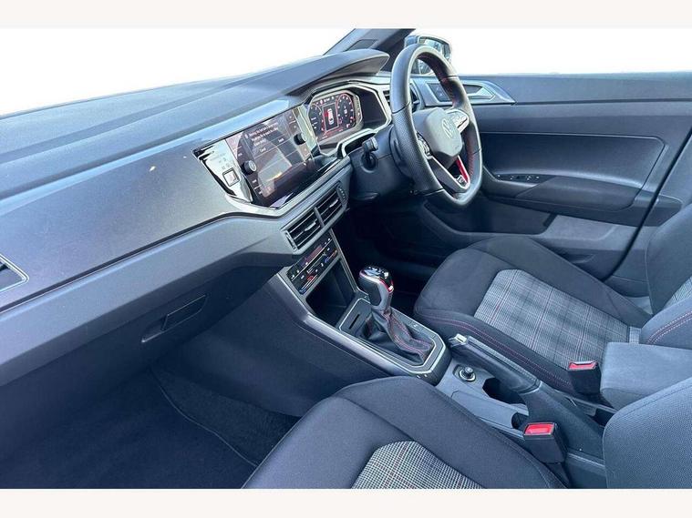 Adaptive cruise control with follow-to-stop and speed limiter, Bluetooth mobile phone interface, Digital Cockpit Pro with 10.25" Display, Driver alert system, Dynamic road sign display, Eco mode, Emergency call service, Power assisted speed sensitive steering, Preparation for We connect and We connect plus, Speedo and rev counter, electronic odometer, trip, service interval display and fuel gauge, Travel Assist - Lane keeping system and traffic jam assist, Travel assist including emergency assist, Trip computer, Warning signal and warning light for front and rear seatbelts not fastened, Washer fluid level indicator, Wireless app connect, Adaptive chassis control, Front wheel drive, Heavy duty rear axle, Rear shock absorpion sports version, Sports select suspension lowered by 15mm, Start-stop system with battery regeneration (recuperation - energy recovery during braking), DAB Digital radio, Diversity antenna for FM reception, Front and rear 6 speakers, Body colour bumpers, Body colour door handles, Electric front windows, Front scuff plates in aluminium with GTI logo, Heat insulating darkened glass in side and rear windows, Heat insulating glass windscreen, Power folding adjustable/heated exterior mirrors and front passenger exterior mirror lowering function, Rain sensor, Rear electric windows, Rear fog light, Rear side wing doors, Rear windscreen washer and wiper with interval delay, Sport bumpers with air intakes with honeycomb structure, Third brake light, Twin chrome exhaust tailpipes, 12V power socket in centre console, 2 USB-C ports in the front, 2 USB-C charging sockets on the center console in the rear, 3 rear head restraints, 60/40 split folding rear seat and rear seat bench not split, Air care climatronic air conditoning system with active combination filter and 2-zone temperature control, Black roof lining, Chrome plated radiator grille inserts, air vent surrounds and light switch surrounds, Door and side trim panel, Driver and front passenger seat height adjustment, Driver/passenger sunvisors with illuminated vanity mirrors, Front + rear carpet mats in recycled material, Front centre armrest, Front footwell illumination, Front seat backrest storage pockets, GTI sports gearshift knob in aluminium leather, Handbrake lever handle in leather, Headliner in recycled material, Isofix child seat preparation easy-fit (for two outer rear seats, and front passenger seat) compatible with I-size, LED interior light with switch off delay and dimmer, 2 reading lights front and rear, Luggage compartment cover, Luggage compartment floor, Luggage compartment lighting, Single front passenger seat, Stainless steel pedals, Standard pedal cluster, Three spoke leather wrapped multifunction sports steering wheel with shifting paddles, IQ LED matrix headlights pack - Polo, Light and sight pack - Polo GTI, 3 point height adj front seatbelts + pretensioners, 3x3 point rear seatbelts, ABS, Driver and front passenger airbag with front passenger airbag deactivation, Drivers and front passengers safety optimised head restraints, ESC (Electronic stability control) + EDL (Electronic Differntial lock) and ASR (Traction control), Extended and predictive pedestrian/ cyclist protection, Front and rear disc brakes with red brake calipers, Front curtain and side airbags with center airbag, Hill hold control, Manual child lock in rear doors, Two tone horn, Tyre pressure loss indicator, Alarm with interior protection, Anti-theft alarm system with interior monitoring, backup horn, and towing protection, Anti-theft wheel bolts, Electronic engine immobiliser, Chrome applications on rotary light, mirror adjustment, window regulator switches, outlet with frame in black, Low rolling resistance tyres,