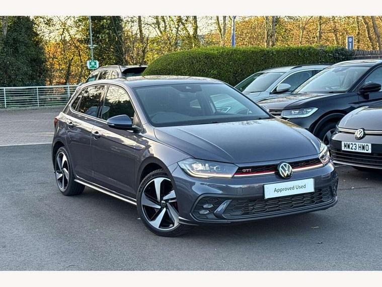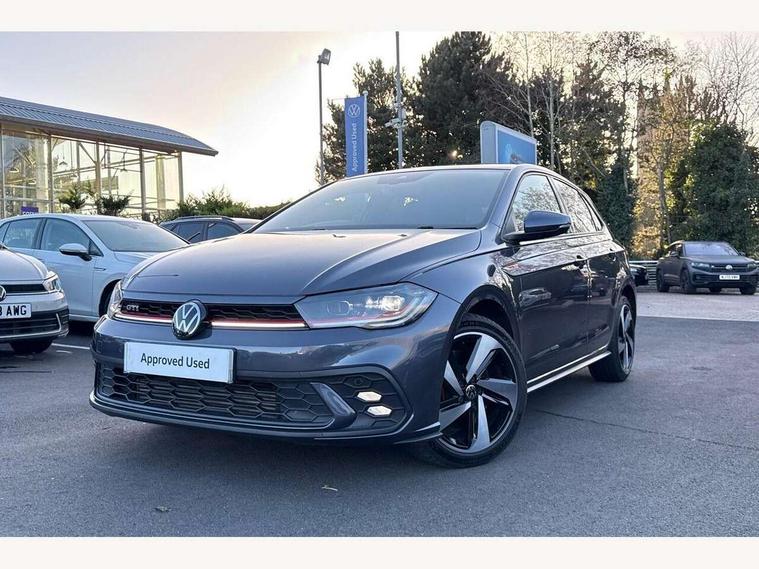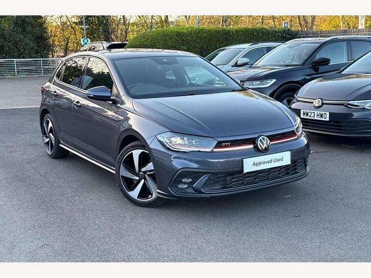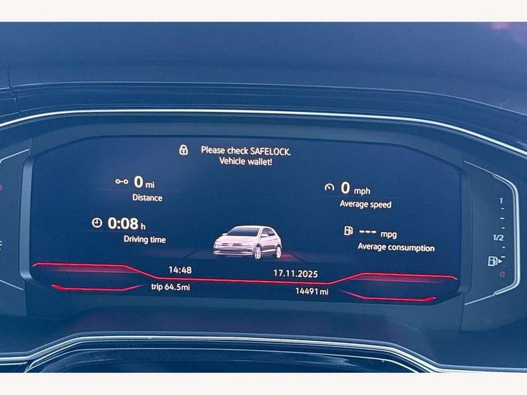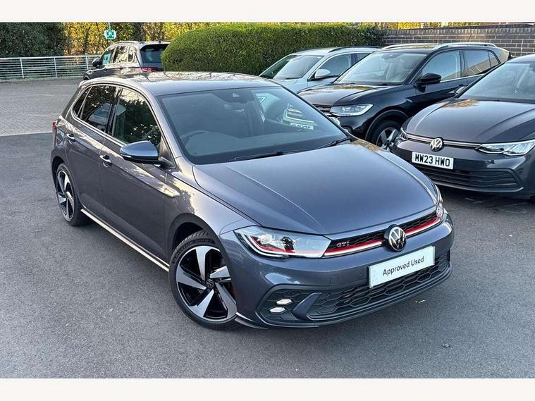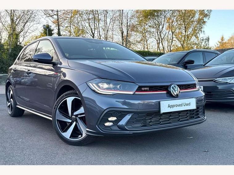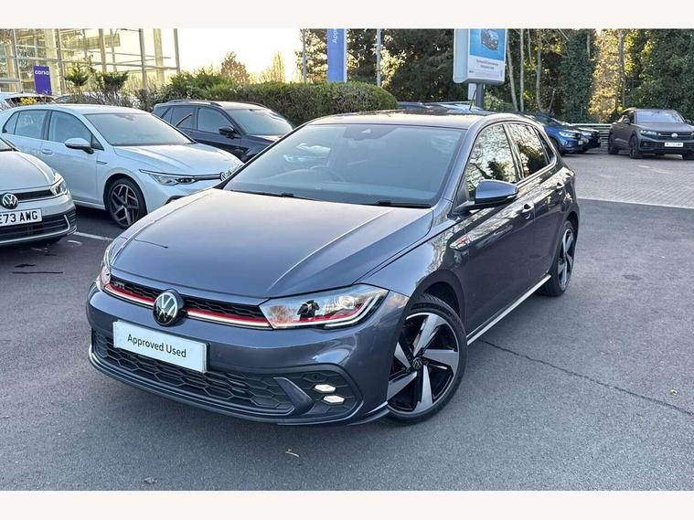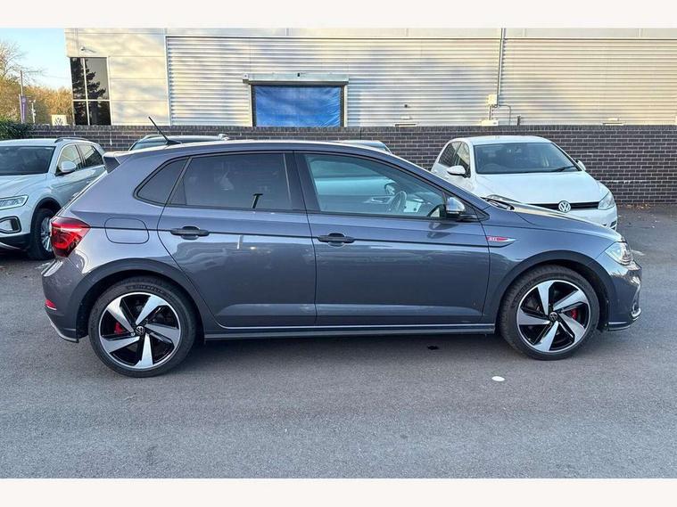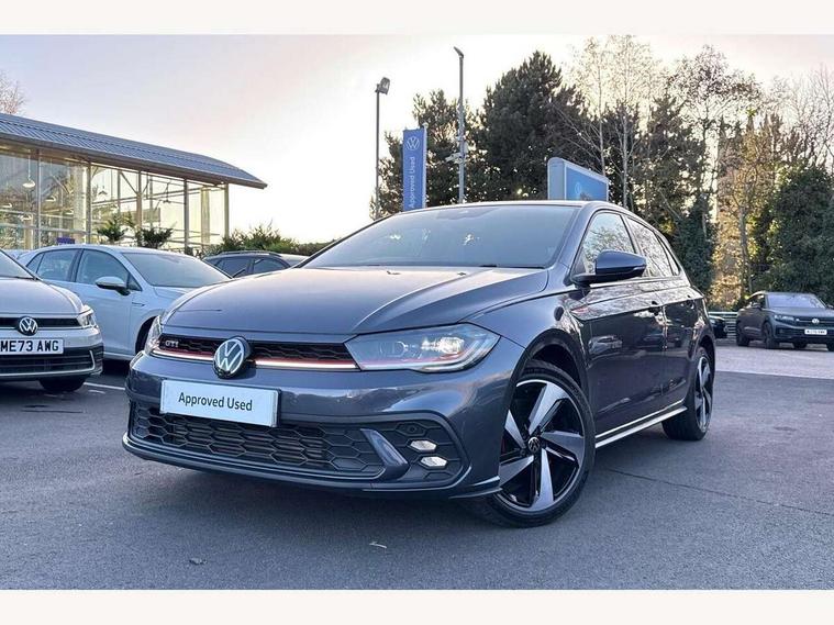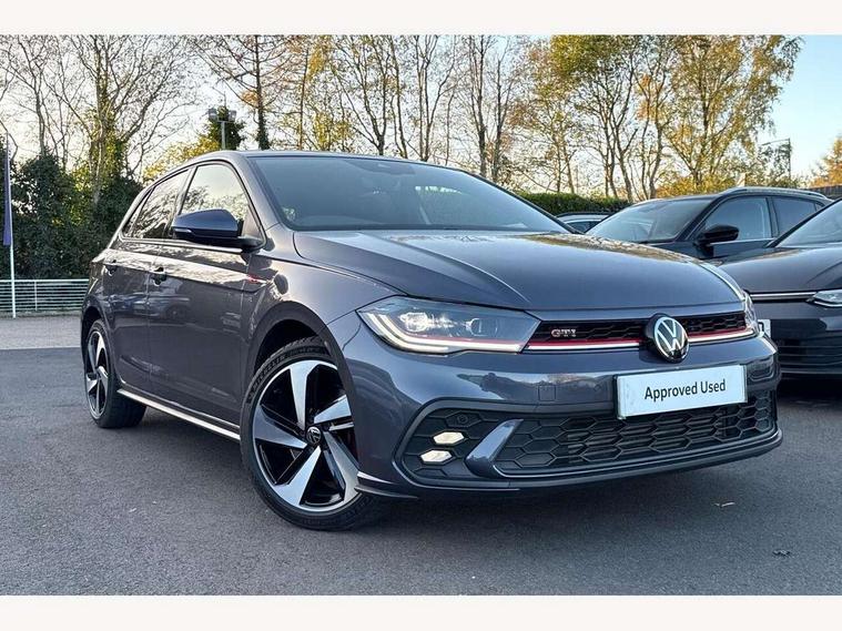 Adaptive cruise control with follow-to-stop and speed limiter, Bluetooth mobile phone interface, Digital Cockpit Pro with 10.25" Display, Driver alert system, Dynamic road sign display, Eco mode, Emergency call service, Power assisted speed sensitive steering, Preparation for We connect and We connect plus, Speedo and rev counter, electronic odometer, trip, service interval display and fuel gauge, Travel Assist - Lane keeping system and traffic jam assist, Travel assist including emergency assist, Trip computer, Warning signal and warning light for front and rear seatbelts not fastened, Washer fluid level indicator, Wireless app connect, Adaptive chassis control, Front wheel drive, Heavy duty rear axle, Rear shock absorpion sports version, Sports select suspension lowered by 15mm, Start-stop system with battery regeneration (recuperation - energy recovery during braking), DAB Digital radio, Diversity antenna for FM reception, Front and rear 6 speakers, Body colour bumpers, Body colour door handles, Electric front windows, Front scuff plates in aluminium with GTI logo, Heat insulating darkened glass in side and rear windows, Heat insulating glass windscreen, Power folding adjustable/heated exterior mirrors and front passenger exterior mirror lowering function, Rain sensor, Rear electric windows, Rear fog light, Rear side wing doors, Rear windscreen washer and wiper with interval delay, Sport bumpers with air intakes with honeycomb structure, Third brake light, Twin chrome exhaust tailpipes, 12V power socket in centre console, 2 USB-C ports in the front, 2 USB-C charging sockets on the center console in the rear, 3 rear head restraints, 60/40 split folding rear seat and rear seat bench not split, Air care climatronic air conditoning system with active combination filter and 2-zone temperature control, Black roof lining, Chrome plated radiator grille inserts, air vent surrounds and light switch surrounds, Door and side trim panel, Driver and front passenger seat height adjustment, Driver/passenger sunvisors with illuminated vanity mirrors, Front + rear carpet mats in recycled material, Front centre armrest, Front footwell illumination, Front seat backrest storage pockets, GTI sports gearshift knob in aluminium leather, Handbrake lever handle in leather, Headliner in recycled material, Isofix child seat preparation easy-fit (for two outer rear seats, and front passenger seat) compatible with I-size, LED interior light with switch off delay and dimmer, 2 reading lights front and rear, Luggage compartment cover, Luggage compartment floor, Luggage compartment lighting, Single front passenger seat, Stainless steel pedals, Standard pedal cluster, Three spoke leather wrapped multifunction sports steering wheel with shifting paddles, IQ LED matrix headlights pack - Polo, Light and sight pack - Polo GTI, 3 point height adj front seatbelts + pretensioners, 3x3 point rear seatbelts, ABS, Driver and front passenger airbag with front passenger airbag deactivation, Drivers and front passengers safety optimised head restraints, ESC (Electronic stability control) + EDL (Electronic Differntial lock) and ASR (Traction control), Extended and predictive pedestrian/ cyclist protection, Front and rear disc brakes with red brake calipers, Front curtain and side airbags with center airbag, Hill hold control, Manual child lock in rear doors, Two tone horn, Tyre pressure loss indicator, Alarm with interior protection, Anti-theft alarm system with interior monitoring, backup horn, and towing protection, Anti-theft wheel bolts, Electronic engine immobiliser, Chrome applications on rotary light, mirror adjustment, window regulator switches, outlet with frame in black, Low rolling resistance tyres,