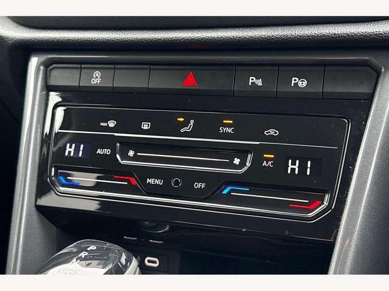 10.25" Digital cockpit pro, Bluetooth mobile phone interface, Driver alert system with fatigue detection, Driver tips and journey analysis, Emergency call service, Lane keeping system Lane Assist, Modified key software - reduce switch off time for key status change to Long no motion, Online services, Park assist including front and rear parking sensors, Service interval indicator, Tailgate/trunk lid release from outside, Think blue trainer driver tips and journey analysis, Warning sound and light for front seatbelts unfastened, Wireless app connect, Battery regeneration during braking, Start/stop function with battery regeneration, Diversity antenna for FM reception, Music playback - MP3, WMA and AAC files, Premium USB cable in choice of either Apple or Android smartphone compatibility, SD card slot, Simultaneous pairing of 2 compatible mobile devices, Title and cover art display, We Connect and We Connect Plus functionality, 3rd brake light, Auto dimming interior rear view mirror, Automatic hazard lights activation under emergency braking, Automatic headlight control with LED separate daytime running lights with coming/leaving home function, Body colour sports bumpers with silver metallic underbody fascia, Dynamic headlight range control with self adjusting whilst driving, Extended roof spoiler, Exterior mirrors aspherical on driver side, convex on front passenger side, External USB type C socket and charging sockets, Front windscreen wiper with intermittent wipe and 4 position delay, Heated rear window, LED rear combination lamps, LED rear number plate lights, LED tail lamp rear comination lamps, Light mode for poor weather, rain, fog or snow, Power windows with comfort operation and circuit breaker, Rain sensor, Rear exhaust tailpipe, Rear fog light on one side and reversing lights on both sides, Rear side wing doors, Rear wash/wipe with intermittent wipe setting, Remote electrically foldable door mirrors, puddle lights and reverse activated passenger's door mirror, 12V power socket in centre console, 3 rear head restraints, 3 seat bench in 2nd row, 4 load lashing points in luggage compartment, Air care climatronic air conditoning system with active combination filter and 2-zone temperature control, Chrome plated radiator grille inserts, air vent surrounds and light switch surrounds, Door and side trim panel with leatherette insert, Drawer under drivers seat, Front + rear carpet mats, Front centre armrest, Front comfort sports seats, Front cupholders x 2, Front footwell illumination, Instrument lighting, white adjustable panel illumination, Interior ambient lighting and surround lighting, Interior light delay, Isofix child seat preparation, Leather gearshift handle, LED interior light with switch off delay/dimmer and 2 front/rear LED reading lights, Load-through provision with cup holder when folded down ('Unsplit rear seat bench, split folding backrest, with centre armrest), Luggage compartment lighting, Non-folding front passenger seat backrest, Single front passenger seat, Storage compartment in left and right luggage area, Storage compartment in rear doors, Storage compartments in driver and front passenger doors, Sunvisors with illuminated vanity mirrors, Variable boot floor, height adjustable and removable, Driver assistance pack without proactive passenger protection - T-Roc, 3 point height adj front seatbelts + pretensioners, 3 point seatbelts in outer rear with ECE label, ABS, Child locks on rear doors, Driver and front passenger airbag with front passenger airbag deactivation, Driver and front passenger safety-optimised head restraints, Drivers seatbelt reminder, Electronic parking brake, Electronic Stability Control (ESC) inc EDL (Electronic Differential Lock) and ASR (Traction Control), Front and rear passengers curtain airbag system including front side airbags, Front assist with city emergency braking and pedestrian monitoring, Front seat side impact airbags, Predictive pedestrian protection, Rear disc brakes, Single tone horn, Tyre pressure loss indicator, Volkswagen roadside assistance, Anti-theft alarm system with interior monitoring, backup horn, and towing protection, Remote central locking with SAFELOCK, radio remote control with 2 remote control folding keys, Trims for alloy wheels,