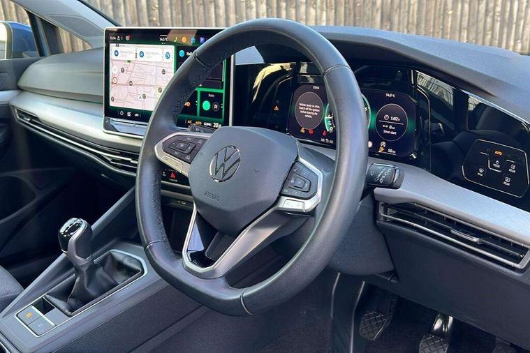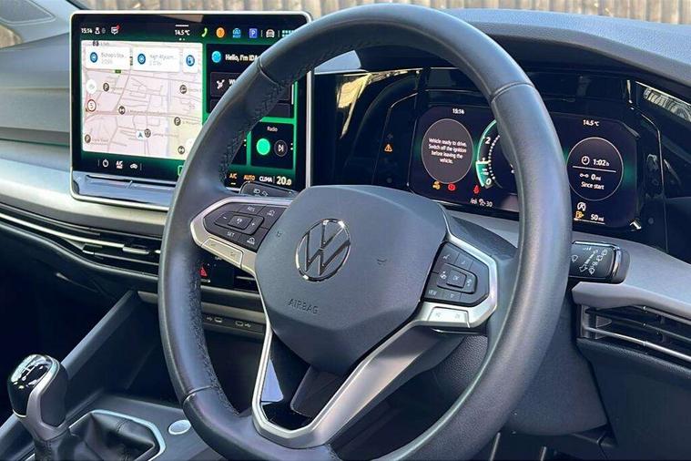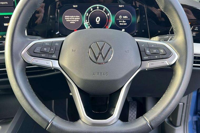 Activated carbon canister, Adaptive cruise control (ACC), Advanced driver attention and drowsiness monitor, Dynamic road sign display, E-Sim card for online connectivity, eCall emergency call system, Multi-color Digital cockpit pro, selection of different info profile possible, Multifunction front facing camera for distance control, Navigation system, Oncoming vehicle braking when turning including swerve support, Preparation for light assist system, Speed limiter, Speedo, rev counter, electronic odometer, trip, service interval display, exterior temperature and fuel gauge, Voice enhancer and voice control, Warning signal and warning light for front and rear seatbelts not fastened, We connect plus preparation, We connect preparation, Wireless app connect, Petrol Particulate Filter, Start-stop system with battery regeneration (recuperation - energy recovery during braking), XDS electronic differential lock for improved traction and handling, 2 USB C ports in front, 2 USB charging sockets on the centre console in the rear charging capacity upto 45W, Comfort telephony + wireless charging, without wireless aerial connection, Digital radio reception (DAB), Diversity antenna for FM reception, Gaming platform via car app, Infotainment system with 12.9" display, Mobile phone interface with inductive charging feature, 3rd brake light, Auto dimming rear view mirror, Auto headlights, Automatic headlamp activation with Coming home and Leaving home feature, Body colour door handles, Body colour door mirrors, Exterior ambient lighting with illuminated door handles, Exterior mirrors convex on the left and aspherical on the right, Front and rear electric windows, Heat insulating windshield made of laminated glass, LED daytime running lights, Rain sensor, Rear exhaust tailpipe, Rear fog light on one side and reversing lights on both sides, Rear side wing doors, Rear tinted glass 65% light absorbing from B pillar backwards, Rear windscreen washer and wiper with interval delay, Remote electrically foldable door mirrors, puddle lights and reverse activated passenger's door mirror, Standard bumpers, Welcome light with surround lighting, 12V socket in front centre console, 12V socket in luggage compartment, 3 rear head restraints, 3 seat bench in 2nd row, Chrome plated radiator grille inserts, air vent surrounds and light switch surrounds, Front centre armrest, Front head restraints, ISOFIX anchors for child seats on outer rear bench seats and on front passanger seat compatible for i-Size, Leather gearshift handle, Luggage compartment lighting, Rear cupholder and loadthough, Single front passenger seat, Soul black instrument panel, Split folding backrest with centre armrest and unsplit rear seat bench, Standard pedal cluster, Storm grey roof lining, Sun visors with illuminated vanity mirrors, Parking and comfort pack - Golf Estate/Hatchback, 3 point height adj front seatbelts + pretensioners, 3 rear three point seatbelts, ABS, Autonomous emergency braking front assist with pedestrian and cyclist monitoring, Child locks on rear doors, Driver and front passenger airbag with front passenger airbag deactivation, Electronic parking brake with auto hold, ESC (Electronic Stability Control), Extended pedestrian protection measures, Rear disc brakes, Two tone horn, Tyre pressure loss indicator, Volkswagen roadside assistance, Alarm with interior protection, Anti theft wheel bolts, Keyless start with SAFE lock, Preparation for alcohol interlock, Nature cross brushed decorative inserts for dashboard and front door panels,