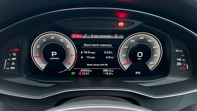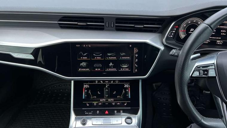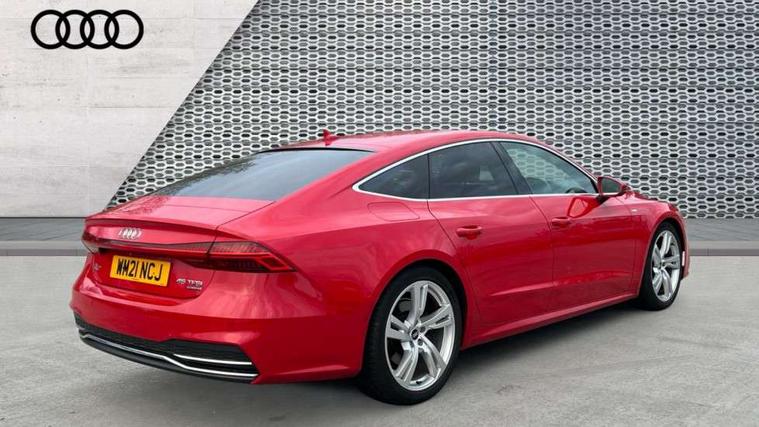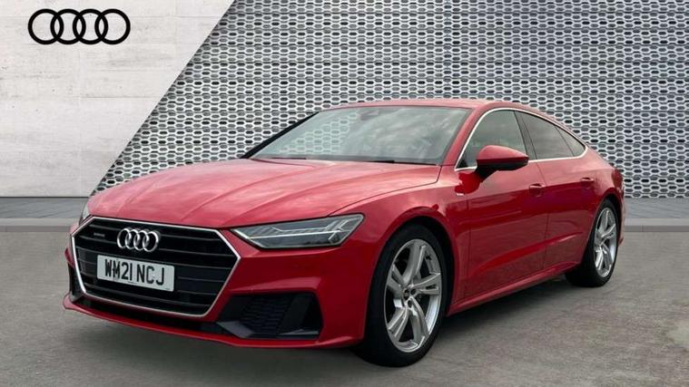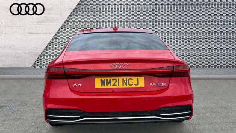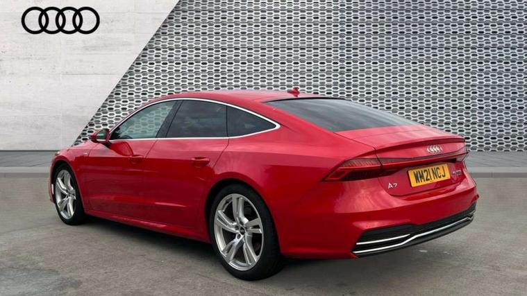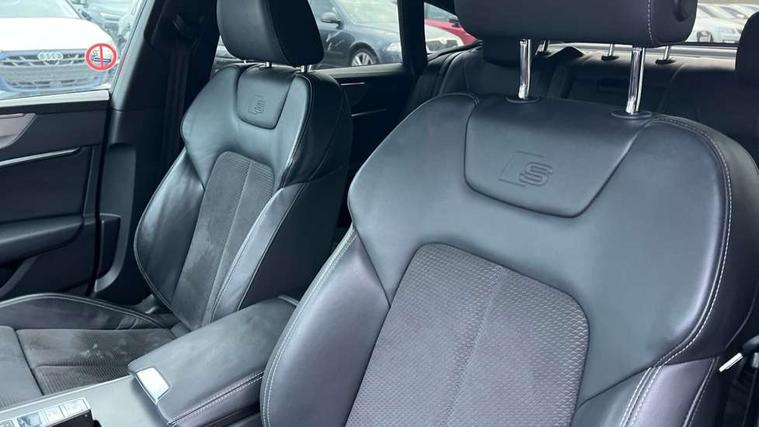 Audi connect safety and service (e-call), Audi connect with Amazon Alexa Integration, Audi drive select, Audi parking system plus - acoustic and visual park assist system for front and rear, Audi phone box with wireless charging, Audi smartphone interface, Audi virtual cockpit - 12.3" high resolution LCD digital instrument cluster display, Automatic start/stop system with coasting functionality, Colour driver's information system display, Electric boot lid release, Lane departure warning system, MMI nav plus with MMI touch + 10.1" and 8.6" HD haptic touch screen/3D city models/country information/online map/route info and personal route assist, Operating buttons in black, glass look with haptic feedback, Power operated tailgate, Progressive steering, Rear view camera, Service indicator, Voice control system, Sports suspension, Audi music interface - 2 USB ports with charger and data functions, Audi sound system with 6 channel amplifier, 180 watt amplifying capacity and 10 loudspeakers including subwoofer, Auxiliary input socket, DAB digital radio module, Body coloured door mirrors, Coming/leaving home animations in front and rear, Electrically adjustable, heated and folding door mirrors with driver memory function and integrated LED indicators, Frameless auto dimming interior rear view mirror, Front and rear electric windows, HD Matrix LED headlights with dynamic front and rear indicators, Headlight washers, Heat insulating glass in side and rear windows, High gloss black radiator grille with chrome single frame surround, LED rear lights, Privacy glass with side and rear windows, Rain and light sensors, Retractable rear spoiler, S line air inlet design with inlay in high gloss black, S Line badge on front fender, S line badge on front grille, S Line Black rear diffuser with chrome inlays and rear grille, S Line front and rear bumpers, S Line side skirts, Signature LED daytime running lights, Towbar preparation, Windscreen with heat-insulating glass, 2 zone deluxe electronic climate control, 4-way electric lumbar support, 40/20/40 split folding 3 seater rear seat bench with rear centre armrest, Black cloth headlining, Electrically adjustable front seats - driver seat with memory, Front and rear headrests, Front centre armrest, Heated front seats, Height/reach adjust steering wheel, Illuminated door sill trims with S logo, Illuminated sun visors with vanity mirrors, ISOFIX child seat mounting and top tether in front and outer rear seats with front passenger airbag deactivation, Leather gear knob, Leatherette upper instrument panel and door shoulders, Luggage compartment floor, S line front and rear floor mats with contrast stitching, Stainless steel pedals and foot rest, Tool kit and car jack, LED interior ambient lighting pack - A7, Non smoking pack - A7, 3 point seatbelts on all seats, Audi pre-sense front, Driver and passenger airbags, Electromechanical parking brake, Electronic stabilisation control including ABS, ASR and EDL, Extended pedestrian protection measures, Hill hold assist, Seatbelt monitoring, Tyre pressure warning light, Warning triangle and first aid kit, Anti theft alarm with tow away protection, Anti-theft wheel bolts and wheel loosening detection, Immobiliser, Keyless Go, Preparation for tracking system, Remote central locking, Dark matt brushed aluminium inlay,