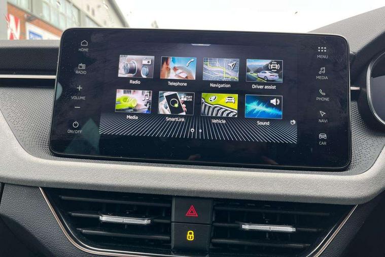 Advanced driver attention and drowsiness monitor, Bluetooth, e-Call (emergency call), Front assist system, PAS, Rear parking sensors, Speed limiter, Tailgate, Traffic sign recognition, Virtual Cockpit - 10.25" digital display, Voice control system, Wireless smartlink, 4 USB C ports, 8 Speakers, 9.2" Skoda navigation display, DAB radio, Auto dimming rear view mirror, Automatic headlamp activation with Coming home and Leaving home feature, Automatic high/low beam, Automatic intermittent wipers, Body colour bumpers, Body colour door mirrors and handles, Chrome moulding around grille, Chrome window frames, Front and rear electric windows, Heated rear window, LED 3rd brake light, LED brake lights, LED daytime running lights, LED front turning lights, LED high beam, LED low beam, Light sensors, Privacy glass, Rear LED fog light, Rear side wing doors, Rear wiper, Tinted windows, 12V socket in luggage compartment, 3 seat bench in 2nd row, Ambient lighting in white/red, Black / Copper armrest stitching, Cargo elements, Chrome inner door handles, Copper hotstamping, Door inserts in accent black, Driver and passenger sun visors with vanity mirror, Dual zone climate control, Front and rear roof lights, Front centre armrest, Front head restraints, Glasses storage in roof liner, Height adjustable driver seat, Height adjustable passenger seat, Ice scraper, Illuminated glove compartment, Inner circulation control with pollen filter, ISOFIX for front passenger seat, Isofix preparation for back seats, Leather gearknob and handbrake lever, Lodge cloth upholstery, Luggage net under rear parcel shelf, Manual lumbar support for front seats, Net package and top tether hooks in boot space, Pearl grey ceiling, Pocket on the back of both front seats, incl. mobile phone pockets, Rear centre armrest, Single front passenger seat, Textile floor mats, Third rear headrest, Ticket holder, Top tether for front passenger seat, Umbrella in driver's door, 3x3 point rear seatbelts, ABS, Child locks, Curtain airbags and front side airbags, Disc brakes, Driver and front passenger airbags, ESP, Hill hold control, Manual leather parking brake, One tone horn, Passenger airbag switch off function, Seatbelt reminder for driver and front passenger, Tyre pressure monitoring system, Anti theft alarm system with interior monitoring, backup horn and towing protection, Anti-theft wheel bolts, Remote central locking with 2 remote folding keys, SAFE function for remote central locking, Decorative inserts,