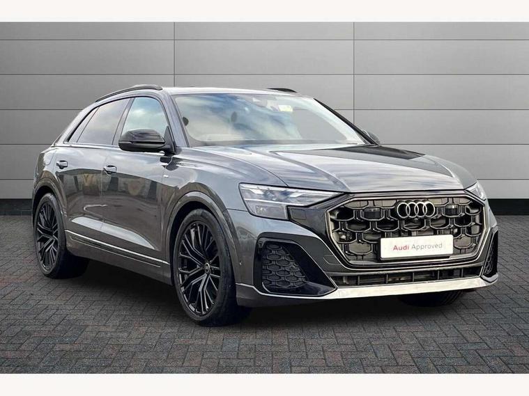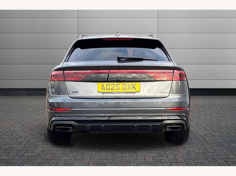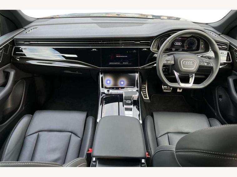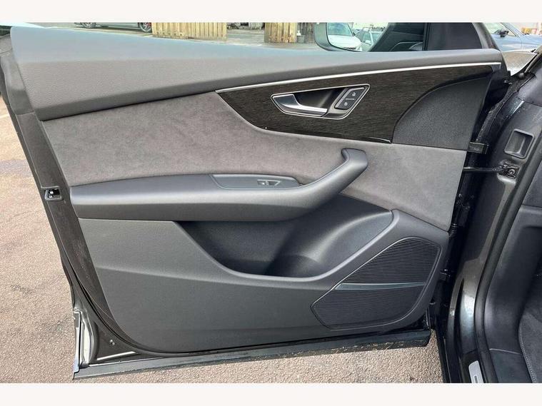 10.1" and 8.6" Dual colour touchscreens, Audi application store, Audi connect safety and service (e-call), Audi connect with Amazon Alexa Integration, Audi drive select, Audi parking system plus includes 360 degree display with front and rear sensors, Audi phone box light with wireless charging, Audi virtual cockpit - 12.3" high resolution LCD display with fully customisable instrument cluster, Automatic start/stop system, Bluetooth, Electro-mechanical PAS, Low washer fluid indicator, MMI navigation plus with MMI touch, Natural voice recognition, On board computer, Operating buttons in black, glass look with haptic feedback, Power operated tailgate, Rear view camera, Service interval indicator, Smartphone interface includes wireless Apple carplay/Android Auto, 48V Mild hybrid technology, Adaptive sport air suspension, Diesel particulate filter, Quattro all wheel drive with self locking centre differential, Audi music interface with 2 USB ports with charge and data functions, Audi sound system with 6 channel amplifier, 180 watt amplifying capacity and 10 loudspeakers including subwoofer, Aux-in socket, DAB Digital radio, 3rd brake light, Audi beam, Auto dimming frameless rear view mirror, Black exhaust tailpipes, Black single frame mask, Coming/leaving home lighting function, Electric front+rear windows, Electrically folding auto dimming/adjustable/heated door mirrors with memory function, LED side indicators and kerb view function for passenger side, Headlight washers, Heat insulating glass in windshield, LED rear light plus, LED signature daytime running lights, Loading edge protection in stainless steel, Matrix LED headlights with dynamic front and rear indicators, Platinum grey front spoiler lip and diffuser insert with honeycomb grille in black, Privacy glass - dark tinted rear and rear side windows from B-pillar backwards, Rain and light sensors, Rear side wing doors, Rear wiper, Singleframe grille surround in matte platinum grey, 2 zone automatic climate control, 3 bench rear seats in 2nd row, 4-way lumbar support for front seats, 40:20:40 split folding rear bench seat, Black cloth headlining, Comfort front centre armrest, Driver seat memory function, Electrically adjustable front seats, Front head restraints, Front/rear floor mats, Heated front seats, ISOFIX child seat mounting for front passenger seat and 2 outer rear seats with top tether child seat mounting for all 3 rear seats, LED interior ambient lighting, Luggage compartment sill protection in stainless steel, Rear centre armrest with 2 cupholders, Rear headrests, Seat cushion displaceable by 100mm in the ratio 60:40, Single front passenger seat, Stainless steel pedals, Sunvisors with illuminated vanity mirrors, Black styling pack plus - Q8, 3 point seatbelts on all seats, Audi pre sense front, Convenience key with safelock, Driver and front passenger, front side and curtain airbags, Electromechanical parking brake, Electronic Stability Control (ESC) including ABS, ASR and EDL, Front passenger airbag deactivation, Hill descent control, Hill hold assist, Predictive pedestrian protection, Seatbelt monitoring, Traction control, Tyre pressure loss indicator, Warning triangle and first aid kit, Anti theft alarm with tow away protection, Anti-theft wheel bolts and wheel loosening detection, Electronically operated child lock, Immobiliser, Keyless go with remote central locking, Polished oak trim with grey finish inlay, Tool kit, Tyre repair kit,