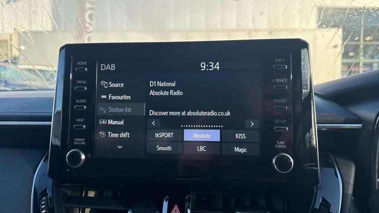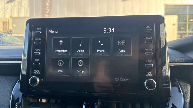 Parking pack - Corolla, Toyota safety sense 2 pack - Corolla, 17" alloy wheels, Tyre repair kit, Alarm/immobiliser, Remote central locking + deadlocks, Smart entry, 2 ring combimeters with 7" colour TFT screen, 6 speakers, 8" multimedia and back monitor, AM/FM radio, DAB Digital radio, Toyota touch 2 with go navigation system, USB and Aux in connectors + 12V front outlet, 3x3 point rear seatbelts, Adjustable front driver seat belt extender, Anti lock braking system + Electronic brake force distribution, Brake assist function, Electronic parking brake, Front passenger airbag on/off switch, Front seatbelt reminder, HAC-Hill-start Assist Control, Rear seat belt reminder, Seatbelt pretensioners and force limiters, Supplemental restraint system (SRS) 7 airbags - dual driver, dual side curtain, side impact and driver knee airbags, Traction control, Tyre pressure warning system, Anti-jam protection on power windows, Auto dimming inside rear view mirror, Auto up and down function on all power windows, Automatic folding mirrors, Automatic headlights, Bi-LED headlights with LED lightguide, Body coloured bumpers, LED daytime running lights, LED front fog lights, LED rear combi lights with LED lightguide, Power adjustable heated door mirrors, Power front windows, Power rear windows, Privacy glass, Rain sensing wipers, Rear window wiper, Reverse tilting door mirrors, Shark fin antenna, 12v power outlet - luggage side, 3 rear headrests, 3 spoke leather steering wheel + gear knob, Clean air filter, Dual zone automatic air conditioning with ECO mode switch, Front head restraints, Full leather upholstery, Heated seats, Interior illumination, ISOFIX seat fixing (2 fixings on rear outer seats), Pollen filter, Power lumbar support, Sports seats, Steering wheel switches, Tilt/telescopic steering column, WIL - Whiplash Injury Lessening seats, Bluetooth telephone connectivity, E-call, Electrically assisted power steering, Intelligent park assist, Kick sensor for power tailgate, Push button start, Reversing camera, Smartphone integration with Apple CarPlay and Android auto, Speed limiter, Voice activation, Vehicle Stability Control (VSC),
