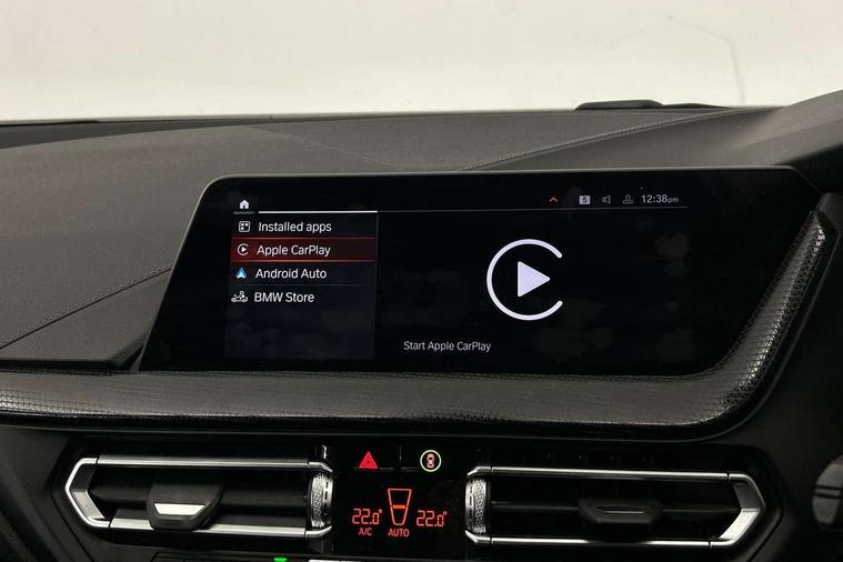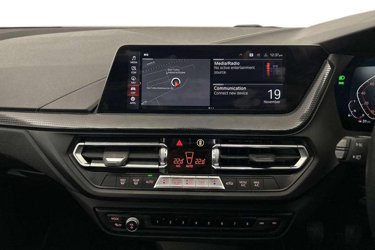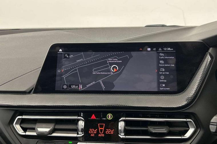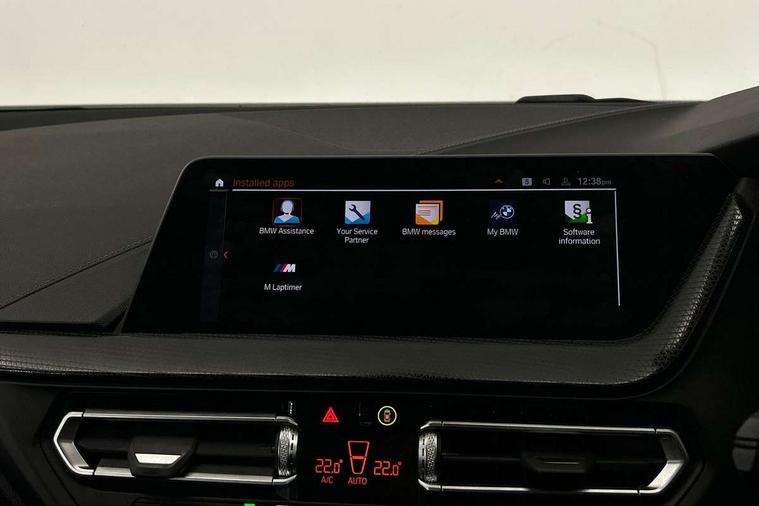Active guard plus, Attentiveness assist, BMW Online services, BMW Teleservices, Check Control warning system for monitoring of lights and door/luggage compartment open warning, Connected eDrive Services, Cruise control with brake assist, Eco pro mode, Electric power steering with Servotronic steering optimised at all speed ranges, Integrated owners handbook, Lane departure warning system, Oil sensor for level and grade, On board computer, Optimum shift indicator, Personal Profile, Pull away assistant, Speed limiter, 6 speed manual transmission, Aluminium lightweight construction, Anti roll bar front and rear, Balancer shaft, Double VANOS, Drive Performance Control, Electronic differential lock, High precision injection, Petrol Particulate Filter, VALVETRONIC engine management, Bluetooth audio streaming, DAB Digital radio, Auto dimming rear view mirror, Automatic windscreen wipers and automatic headlight, Body colour door handles, Body colour mirror caps, Chrome exhaust tailpipe in single, round (Exhaust tailpipe, stainless steel - single, round), Chrome kidney grille with extra wide black, high gloss black vertical slats, Direction indicator side lights in exterior mirrors, Fading support, Follow me home headlights, Front and rear bumper system with replaceable deformation elements, Front and rear electric windows with open and close fingertip control, anti trap facility and comfort closing, Front bumper in Body colour with exclusive Sport air inlets finished in High gloss Black, Front door sill finishers in black plastic with BMW designation, Green tinted heat protection glazing, Heated, electrically adjustable exterior mirror aspheric on driver side, convex on passenger side, High gloss shadowline window frame, Recess cover mirror frames and B/C pillar embelisher trim, High level third brake light, LED daytime running lights, LED eyebrow turn indicators, LED front fog lights, Lightweight engineering, Manual headlight beam throw control, Matt black air guide grilles, Model designation on right side of tailgate, Nearside reverse light in rear light cluster, Preparation for high beam assistant, Rain sensor including auto headlights activation, Rear bumper in Body colour with exclusive Sport design elements finished in High gloss Black, Rear fog lights, Rear window wiper, Shark fin antenna, Visible VIN plate, Welcome lighting, 12V power socket in centre console, 3 rear seat head restraints, 3 spoke sports leather steering wheel in pearl Chrome, Child seat ISOFIX attachment for two outer rear seats and front passenger seat with anchorage points, Conditioned based service, Folding rear clothes hook, Four grab handles integrated in roof lining, Front and rear door pockets, Front and rear door pockets with bottle holders, Front and rear side armrest integrated into door trim, Front armrest foldable with integrated storage compartment, Front sports seats with electric side bolster adjustment, Glove compartment, Height adjustable front head restraints, Manual adjust steering wheel, Multi-function controls for steering wheel, Storage compartment in centre console, Sun visors with vanity mirrors and insert tab, Two zone automatic air conditioning, Velour floor mats, Connected pack professional - 1 Series, Extended storage pack - 1 Series, Interior lights pack - 1 Series, 2 tone horn, 3 point seatbelts on all seats, front pyrotechnic belt tensioners, stopper and belt force limiters, rear coded belt buckles, Airbags - front driver/passenger, front & rear curtain, front side, Anti lock braking system (ABS) with brake assist, BMW emergency call, Brake drying, Braking readiness, City braking function, Crash sensor activating central locking release, hazard warning lights, fuel cut off, interior lighting + activation of safety battery terminal clamp, Driver and front passenger seat belt security check, Dynamic stability control + (DSC+), Dynamic Traction Control - DTC, Electrically operated hand brake, Front and rear disc brakes, Front passenger manual airbag deactivation, Seatbelt warning, Side impact protection, Tyre pressure monitoring system, Warning triangle and first aid kit, Automatic drive away locking facility, Central locking switch for all doors, fuel filler cap and luggage compartment, Deadlocking function system to all doors, Locking wheel bolts, Remote central locking with two Integrate key, one button for opening and closing all lock, open and close window, button for open luggage compartment, Start/stop button with comfort go keyless engine start and auto start stop deactivation button, Thatcham Cat.1 alarm and immobiliser, Contrast stitching on instrument panel, Illuminated Berlin interior trim, Reduced rolling resistance tyres,