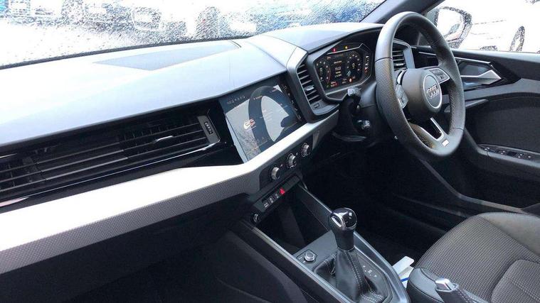 10.25" Digital instrument cluster display classis style instrument dials + speed, odometer, time, outside temperature, telephone menu + fuel level warning, Advanced driver attention and drowsiness monitor, Audi connect emergency call and service, Audi drive select, Audi remote connect and control, Audi smartphone interface, Bluetooth interface, Camera based traffic sign recognition, Cruise control, Driver's information system, Electromechanical power steering, Lane departure warning system, Rear parking sensor, Service interval indicator, Speed limiter, Start stop system with recuperation, Voice control system, Washer fluid level indicator, Sports suspension, 2 x USB type C connection points, 6 loudspeakers, DAB Digital radio, MMI radio plus with 10.1" colour MMI display screen and MMI touch, Auto dimming rear view mirror, Body coloured door mirrors, Door sill trims with aluminium inlays and S line logo in front, Electric front and rear windows, Electrically adjustable, heated, folding door mirrors with integrated LED side indicator, Front side air inlets in grained matt black and C frame in anthracite black, Headlight cleaning system, Heat insulating glass windscreen and side windows, Heated rear windscreen, High level LED brake light, LED daytime running lights, LED headlights with range control LED rear lights + dynamic rear indicators, Privacy glass, Radiator grille and rear diffuser in matt anthracite black, Radiator protective grille frame in matt aluminium silver, Rain and light sensors, Rear fog lights, Rear side wing doors, Rear wiper, S line badges on front wings, Side front spoiler lips in grained matt black, 12V socket in centre console with two cup holders, 3 rear seats with headrests, 3 seat bench in 2nd row, 3 spoke leather multi-function plus steering wheel features S badging and grips in perforated leather with contrast stitching, 40:60 Split folding rear seat or fully collapsed, Black cloth headlining, Front and rear velour black floor mats with contrast stitching in fine silver, Front head restraints, Front passenger seat, Height and reach adjustable steering wheel, Interior lighting includes roof module, front and rear reading lights and right luggage compartment lighting, ISOFIX child seat mounting for front passenger and outer rear seats including top tether attachment point of outer rear seats, Leather gear knob with aluminium trim, Leather handbrake grip, Manual air conditioning, Manual height adjustable for driver and front passenger seat, Manually adjustable lumbar support in front seats, Stainless steel pedals, Ambient lighting package - A1, Luggage compartment pack - A1, S line exterior styling pack - A1 Sportback, 3x3 point rear seatbelts, Audi pre-sense front with pedestrain and cyclist recognition, Brake assist function, Driver and front passenger airbag with front side and head airbags, Electronic Stability Control including ABS, EBD, ASR and EDL, Front passenger airbag deactivation switch, Hill hold assist, Manual rear child locks, Seatbelt height adjustment for front seats, Seatbelt monitoring, Tyre pressure loss indicator, Warning triangle and first aid kit, Anti theft alarm, Anti theft wheel bolts, Immobiliser, Remote control key with safelock, Aluminium trim for control switches, air vents and digital instrument cluster, Black dashboard, Silver grey inlays polygon structure in diamond paint finish, Structured grey accent surfaces insert of air vents, interior door handle recesses and centre console in quartz paint finish,