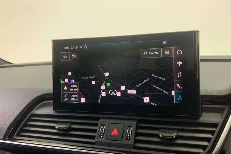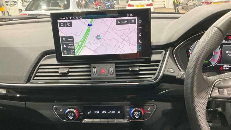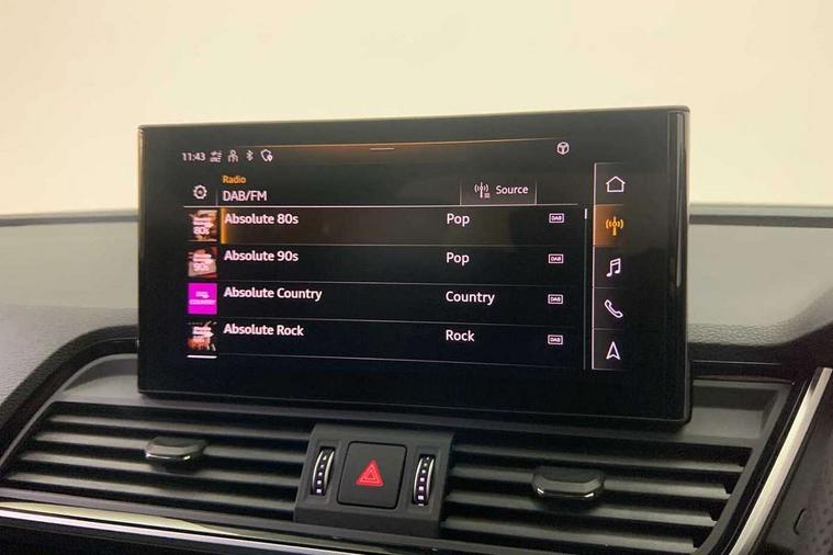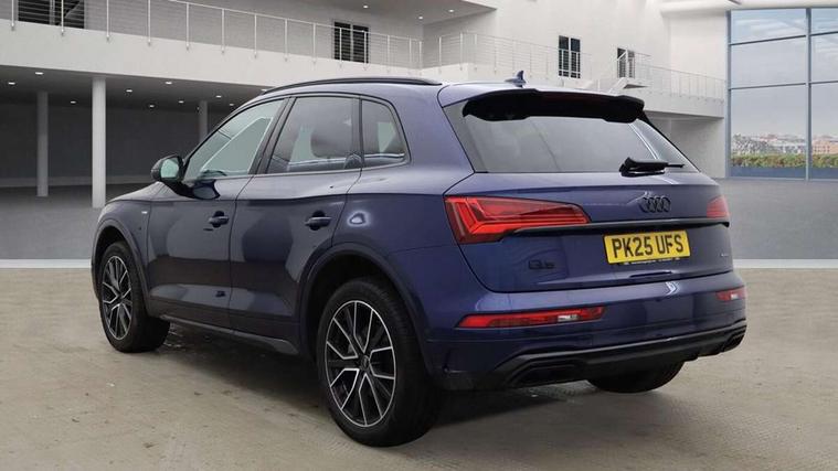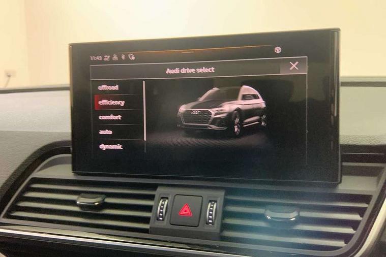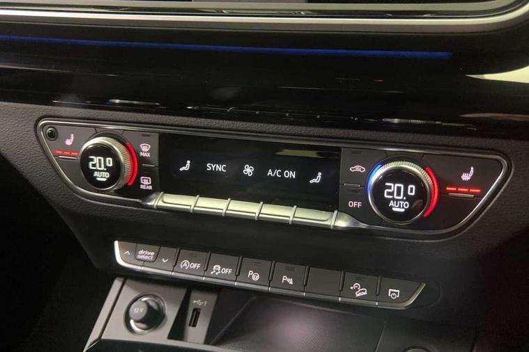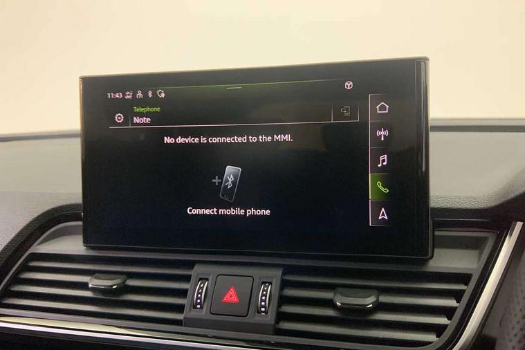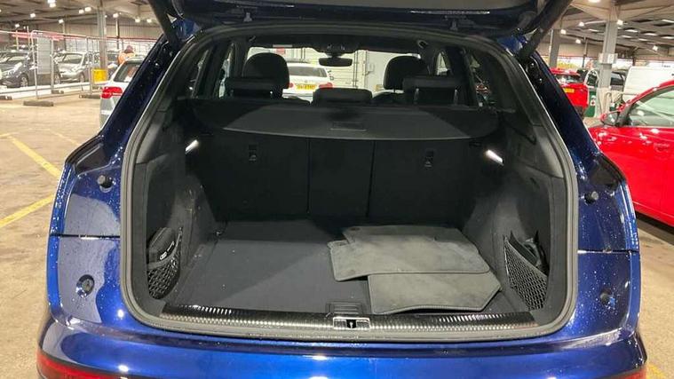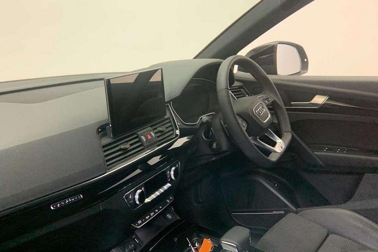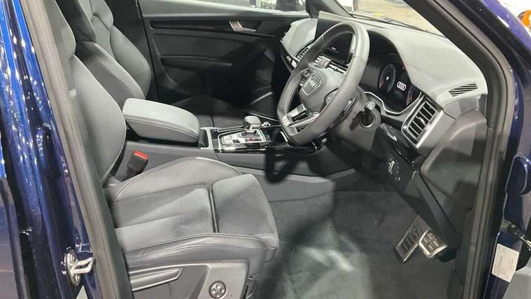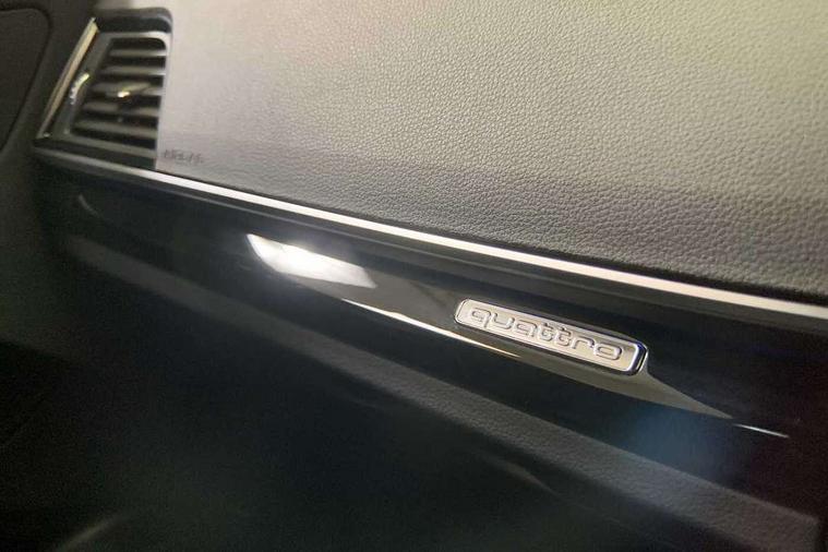 Acoustic front and rear parking sensor, Audi connect safety and service (e-call), Audi drive select, Audi virtual cockpit plus with 12.3" screen and three different layout designs, Audi wireless smartphone interface, Automatic start-stop system with coasting functionality and efficiency programme, Bluetooth interface, Camera based traffic sign recognition, Electro - mechanical power assisted steering, Lane departure warning, MMI navigation plus with 10.1" touch screen, Power tailgate, Reversing camera, Service interval indicator, Voice control system with Audi hotword activation "Hey Audi", Diesel particulate filter, Quattro on demand, S line sports suspension, 2 x USB charging port with aux input socket, 8 loudspeakers, DAB Digital radio, Acoustic windscreen, Auto dimming door mirrors, Auto dimming frameless rear view mirror, Automatic headlight adjustment, Automatic headlights and windscreen wipers, Black roof rails, Black styling with black rings, Body colour bumpers, Body colour rear diffuser with matt aluminium silver surrounds, Body colour underbody protection, Chrome plated exhaust trims, Daytime running lights, Door sills in Selenite silver, Electric adjustable/heated/folding door mirrors, Front air inlet surrounds in aluminium, Front and rear electric windows, Front radiator grille in honeycomb design, LED 3rd brake light, LED headlights and LED tail lights, Loading edge protection in stainless steel, Lower bumpers painted in contrast Manhattan grey, Rear chrome trim strip below lights, Rear privacy glass and rear side windows, Rear side wing doors, Rear wiper, Roof bars, S Line badges on the front wing panels, S Line front and rear bumpers, S Line rear spoiler, S Line side skirts, 3 rear headrests, Black cloth headlining, Comfort front centre armrest, Contrast stitching on seats, steering wheel and gear lever gaiter, Deluxe 3 zone electronic climate control, Front head restraints, Front sport seats with S embossed logo, Front/rear floor mats, Gear lever in black leather, Heated front seats, Height/reach adjustable steering column, Illuminated door sill trims with S logo, Luggage compartment cover, Manual seat adjustment with 4-way electric lumbar support, Single front passenger seat, Stainless steel pedals, Sunvisors with vanity mirrors, Top surface of the rear centre armrest in artificial leather, High gloss pack - Q5, LED interior light pack - Q5, 3 point seatbelts on all seats, 6 airbags - Driver, front passenger, curtain and side airbags, Attention and drowsiness assist, Electrically operated child locks on rear doors, Electromechanical parking brake, Electronic stabilisation control including ABS, ASR and EDL, First aid kit with warning triangle and vests, Front passenger airbag deactivation, Hill descent control, Hill hold assist, ISOFIX child seat mounting for front passenger seat and ISOFIX child seat mounting with Top Tether for outer rear seats, Multi collision brake assist, Pop-up bonnet for pedestrian protection, Pre sense city, Seatbelt monitoring, Tyre pressure warning, Anti theft alarm, Anti-theft wheel bolts, Remote central locking, Remote control key with SAFELOCK and keyless go, Air vents inserts and centre console in gloss black, Tool kit, Tyre repair kit,