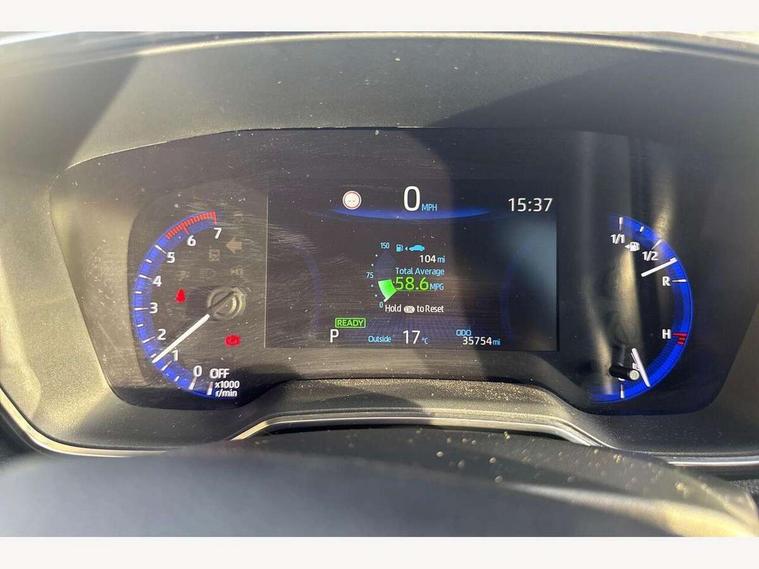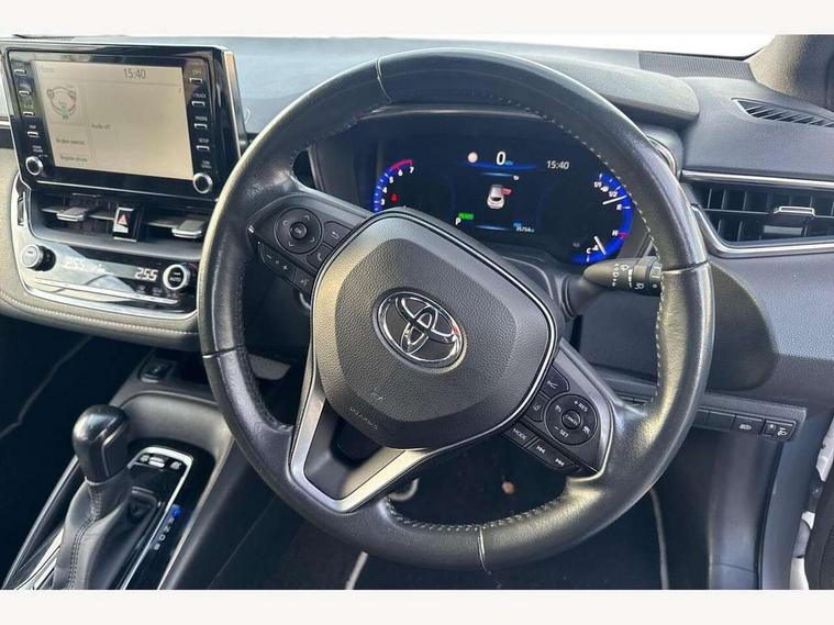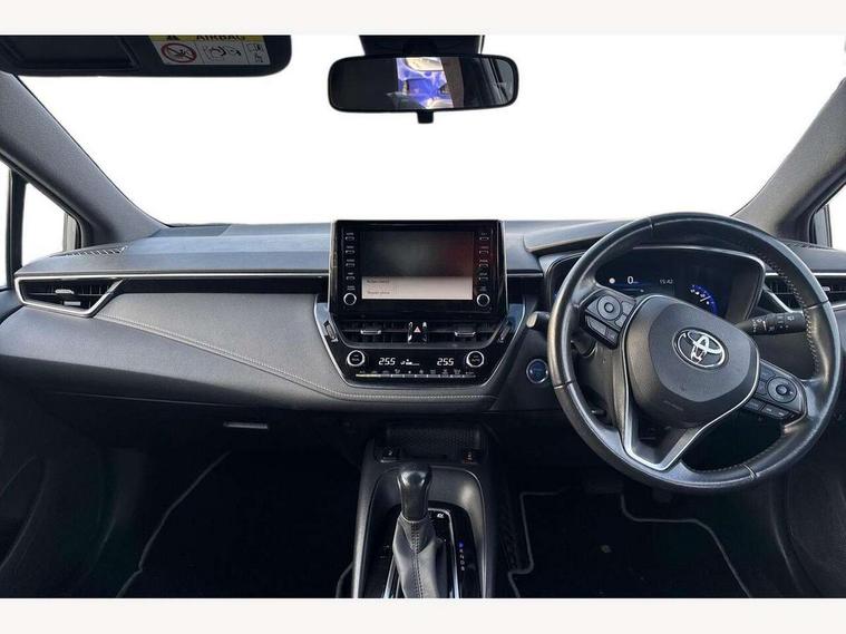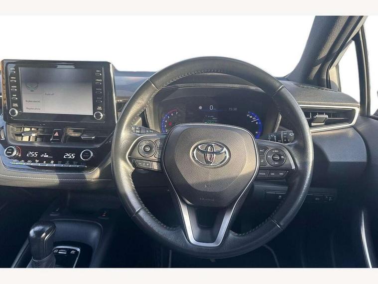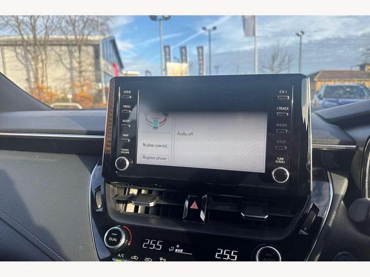 7" Multi information display screen, Bluetooth telephone connectivity, Connected car functionality upgrade, tracker, remote status and e-care, Dynamic radar cruise control (with RSA) including switch on steering wheel, E-call, Electrically assisted power steering, EV drive indicator, Lane Departure Alert (LDA) switch on steering wheel, Memory on adjustable speed limiter, Push button start, Reversing camera, Smartphone integration with Apple CarPlay and Android auto, Gasoline particulate filter, Vehicle Stability Control (VSC), 6 speakers, 8" Touchscreen with MM19 Multimedia system and voice recognition, AM/FM radio, DAB Digital radio, USB and Aux in connectors + 12V front outlet, Anti-jam protection on power windows, Auto up and down function on all power windows, Automatic headlights with high beam assist, Black metallic surround on lower front grille, Black toyota logo in front, Black window frames, Body colour rear spoiler, Body coloured bumpers, Body coloured door mirrors, Body coloured outside door handles, Follow me home headlights, LED daytime running lights, LED front fog lights, LED Headlights, LED High mounted stop light, Manual day/night rear view mirror, Power adjustable heated door mirrors, Power front windows, Power rear windows, Rain sensor, Rear side wing doors, Rear window defogger, Rear window wiper, Shark fin antenna, Time adjustment on intermittent wiper, Turning signal integrated indicators in door mirrors, Unique lower skirt, Unique side rocker with black insert, UV-filter on driver and passenger windows, 3 rear headrests, 3 seat bench in 2nd row, 3 spoke leather steering wheel + gear knob, 60/40 split folding rear seat, Adjustable speed limiter switch on steering wheel, Audio, multimedia and telephone switches on steering wheel, Boot light, Centre room light, Clean air filter, Driver and front passenger personal light, Driver and passenger assist grip, Driver and passenger sun visor with mirror and light, Dual zone automatic air conditioning with ECO mode switch, Fabric armrests, Front and rear cup and bottle holders, Front door pockets, Front head restraints, Front passenger seat, Heated driver and front passenger seats, Illuminated entry system in room lamp, ISOFIX seat fixing (2 fixings on rear outer seats), Leather gear shift with satin chrome on gear shift console, Manual height adjustable for driver and front passenger seat, Parcel shelf, Passenger seat back pocket, Pollen filter, Power adjustable lumbar support on driver seat, Power window switches with satin chrome inserts, Quilted fabric upholstery with grey stitches seats, Rear armrest with 2 cupholders, Rear passenger coat hooks (2), Satin chrome inside door handles, Shopping bag hooks in luggage compartment, Sliding armrest on centre console box, Slow opening glovebox with lights, Tilt/telescopic steering column, Voice recognition switch on steering wheel, Whiplash Injury Lessening (WIL) feature (active headrest) for seats, Toyota safety sense 2 pack - Corolla, 3x3 point rear seatbelts, Adjustable driver and front passenger seat belt extender to top anchor point, Anti lock braking system + Electronic brake force distribution, Brake assist function, Child locks on rear doors, Downhill Assist Control (DAC), Electronic parking brake, Emergency brake light signal (EBS), Front passenger airbag on/off switch, Front seatbelt reminder, HAC - Hill start assist control, Rear seat belt reminder, Seatbelt pretensioners and force limiters, Supplemental restraint system (SRS) 7 airbags - dual driver, dual side curtain, side impact and driver knee airbags, Traction control, Tyre pressure warning system, Acoustic vehicle alert system (AVAS), Alarm with motion sensor and immobilizer, Remote central locking + deadlocks, Satin chrome dash trim, Soft touch texture on upper dashboard, Unique wheel finish with red wheel cap,