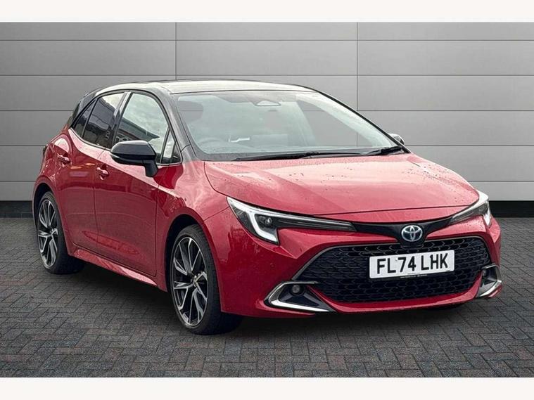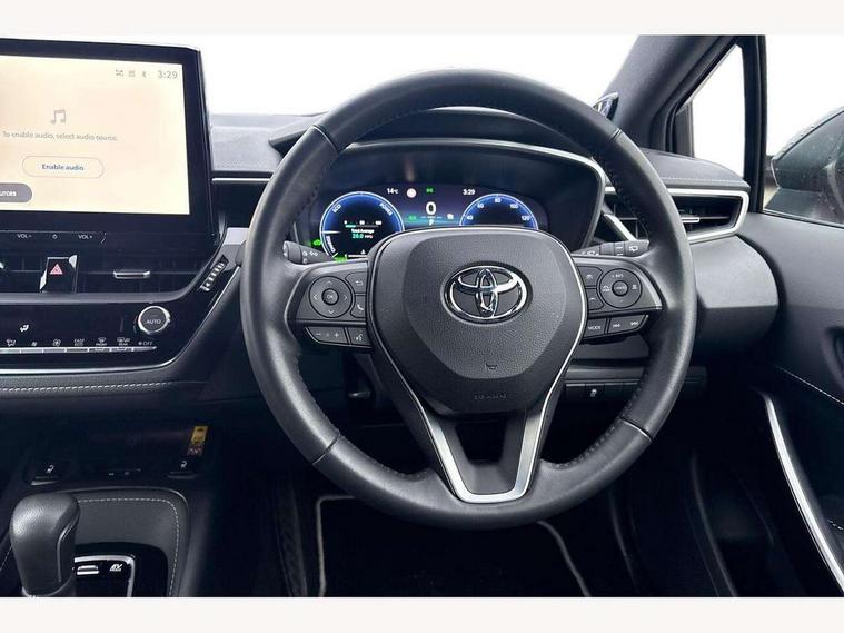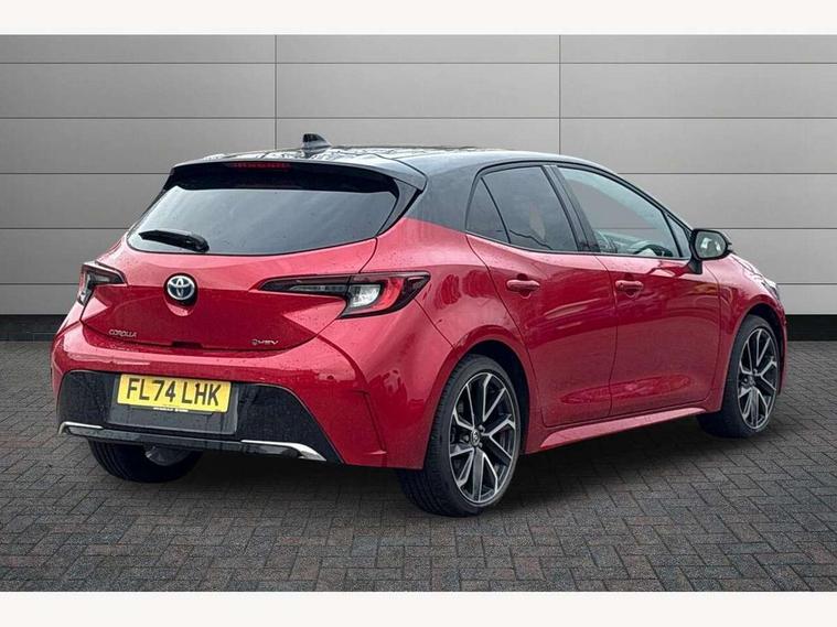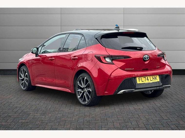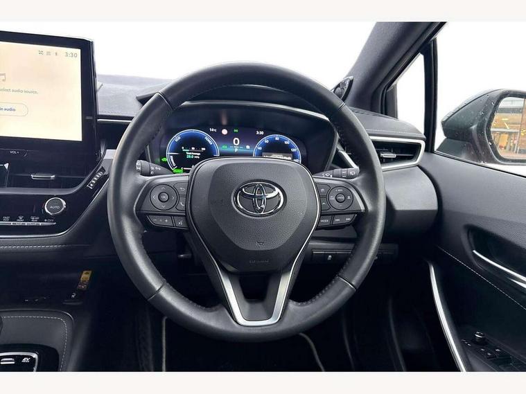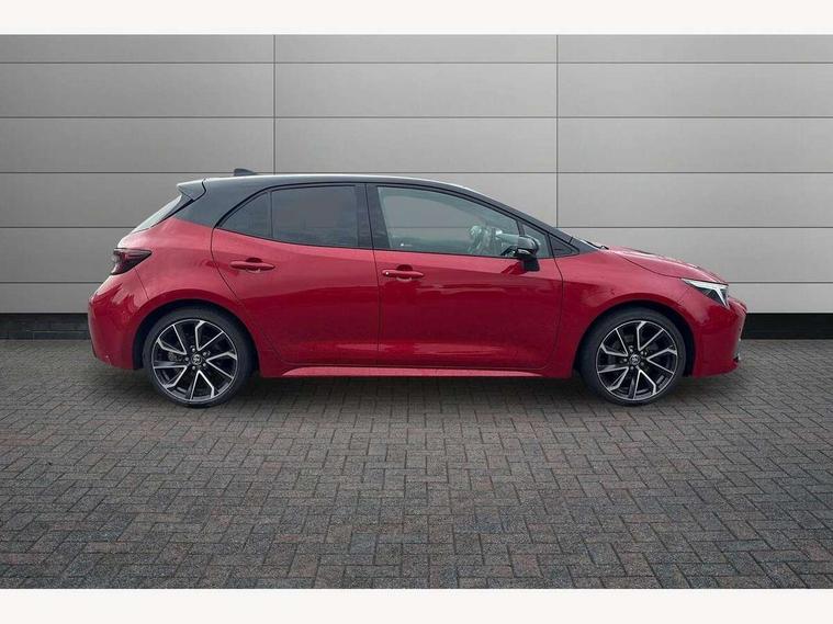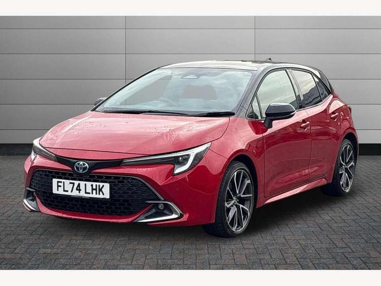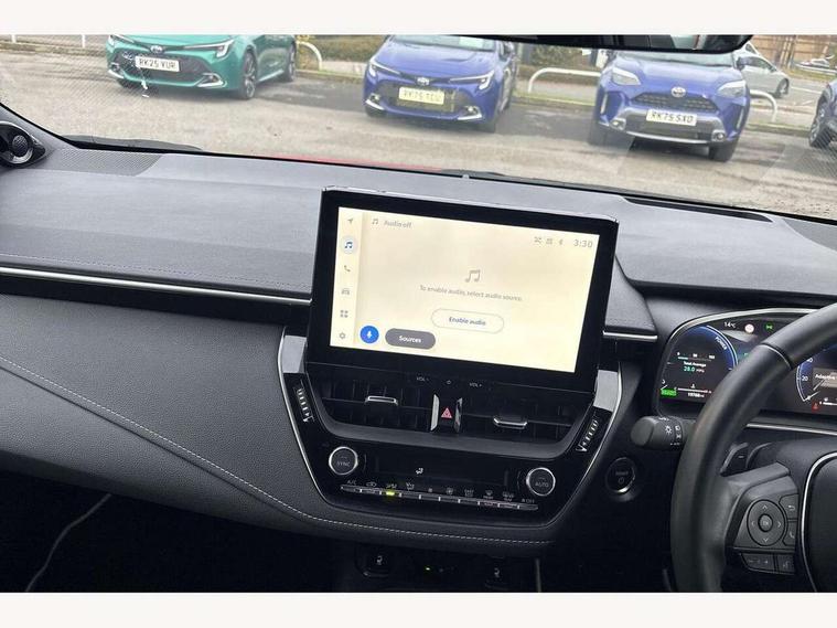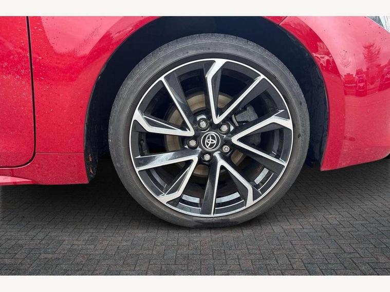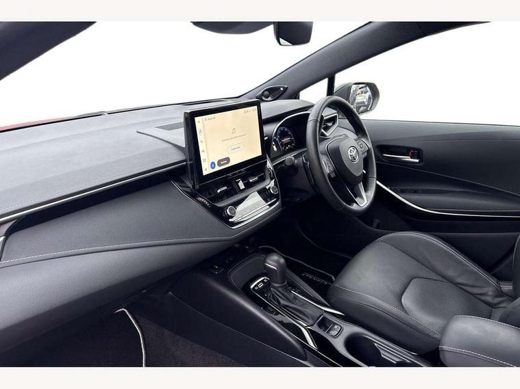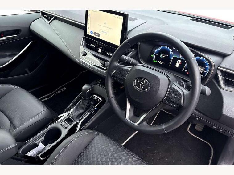 10.5" Multimedia display screen, Blind spot monitor and safe exit assist, Bluetooth telephone connectivity, Connected car functionality upgrade, tracker, remote status and e-care, Drive mode select (Eco, Normal), E-call, Electrically assisted power steering, EV drive indicator, Front and rear parking sensors with auto brake, Full Digital 12.3" TFT Digital Combimeter, Head up Display, Key reminder warning, Lane Departure Alert (LDA) switch on steering wheel, Memory on adjustable speed limiter, MyT connected services, Proactive driving assist (PDA), Rear cross traffic alert, Reversing camera, Smart entry and push button start, Smartphone integration with Apple CarPlay and wired android auto, Tailgate, Toyota remote services, Toyota smart connect navigation, Wireless charger, Gasoline particulate filter, Vehicle Stability Control (VSC), AM/FM radio, DAB Digital radio, Front USB-C in centre console, Front USB-C in dashboard, JBL Premium sound system with 8 speakers, Rear USB-C device charger, Smart voice assist/ Voice recognition, USB and Aux in connectors + 12V front outlet, Adaptive high beam system (AHS), Anti-jam protection on power windows, Auto headlight levelling system, Auto up and down function on all power windows, Automatic folding mirrors, Automatic headlights with high beam assist, Black centre and side air vents, Black metallic meshed front grille, Black toyota logo in front, Body coloured bumpers, Body coloured door mirrors, Body coloured front spoiler, Body coloured outside door handles, COROLLA alloy door scuff plates, Electrochromatic mirror, Follow me home headlights, LED daytime running lights, LED front fog lights, LED High mounted stop light, LED multi beam headlights, LED rear combi lights with LED lightguide, Noise reduction layer on windscreen, Piano black diffuser, Power adjustable heated door mirrors, Power front windows, Power rear windows, Privacy glass with UV filter, Rain sensing wipers, Rear bumper decoration with chrome plated inserts, Rear side wing doors, Rear under guard with chrome ornament, Rear window defogger, Rear window wiper, Reverse tilting door mirrors, Roof spoiler, Satin chrome insert on front air vents, Satin chrome insert on front door assist grips, Satin chrome inserts on rear passenger air vents, Shark fin antenna, Tailgate release with push button, Time adjustment on intermittent wiper, Turning signal integrated indicators in door mirrors, Unique grille pattern, Unique lower skirt, Unique side rocker with black insert, UV-filter on driver and passenger windows, 2 Shopping bag hooks in luggage compartment, 3 rear headrests, 3 seat bench in 2nd row, 3 spoke leather steering wheel with satin insert + gear knob, 4 tie down hooks in luggage compartment, 60/40 split folding rear seat, Adaptive cruise control (ACC) switch on steering wheel, Adjustable speed limiter switch on steering wheel, Audio, multimedia and telephone switches on steering wheel, Black armrest on centre console box, Black gear shift console, Boot light, Boot underfloor storage, Centre room light, Driver and front passenger personal light, Driver and passenger assist grip, Driver and passenger seatback pockets, Driver and passenger sun visor with mirror and light, Dual zone automatic air conditioning with ECO mode switch, Front and rear cup and bottle holders, Front door pockets, Front head restraints, Front passenger seat, Front sliding synthetic leather armrest, Heated seats, Illuminated entry system in room lamp, ISOFIX seat fixing (2 fixings on rear outer seats), Leather gear shift with satin chrome on gear shift console, Manual height adjustable for driver and front passenger seat, Manually tilt with sliding driver and front passenger seat, Nanoe-X air purifier, Paddle shifts, Parcel shelf, Perforated leather upholstery, Pollen filter, Power window switches with satin chrome inserts, Rear air conditioning, Rear armrest with 2 cupholders, Rear passenger coat hooks (2), Remote air conditioning, Satin chrome inside door handles, Satin chrome surround on heater control panel, Satin chrome surround on speedometer, Sliding armrest on centre console box, Slow opening glovebox with lights, Sports seats, Textile floor mats, Tilt/telescopic steering column, Voice recognition switch on steering wheel, Whiplash Injury Lessening (WIL) feature (active headrest) for seats, White ambient lighting on open tray and front cup holder, Toyota safety sense 3 pack - Corolla, 3x3 point rear seatbelts, Adjustable driver and front passenger seat belt extender to top anchor point, Anti lock braking system + Electronic brake force distribution, Brake assist function, Child locks on rear doors, Downhill Assist Control (DAC), Electronic parking brake, Emergency brake light signal (EBS), Front passenger airbag on/off switch, Front seatbelt reminder, HAC - Hill start assist control, Rear seat belt reminder, Seatbelt pretensioners and force limiters, Supplemental restraint system (SRS) 7 airbags - dual driver, dual side curtain, side impact and driver knee airbags, Traction control, Tyre pressure warning system, Acoustic vehicle alert system (AVAS), Alarm with motion sensor and immobilizer, Power passenger window lock, Remote central locking + deadlocks, Satin chrome dash trim, Soft touch texture on upper dashboard, Stitching on lower dashboard, Stitching on upper dashboard, 18" Dark grey machined face 5 double spoke alloy wheels, Tyre repair kit, Unique wheel finish with red wheel cap,