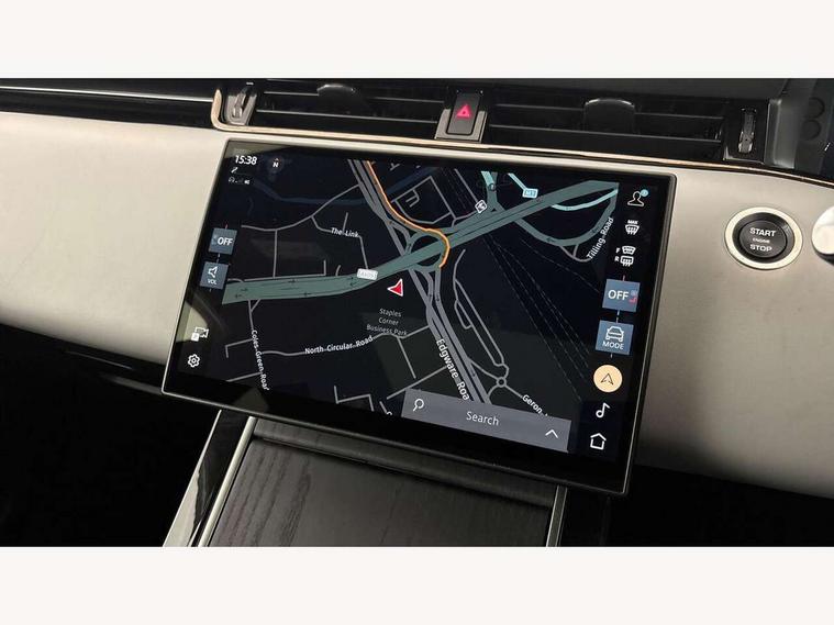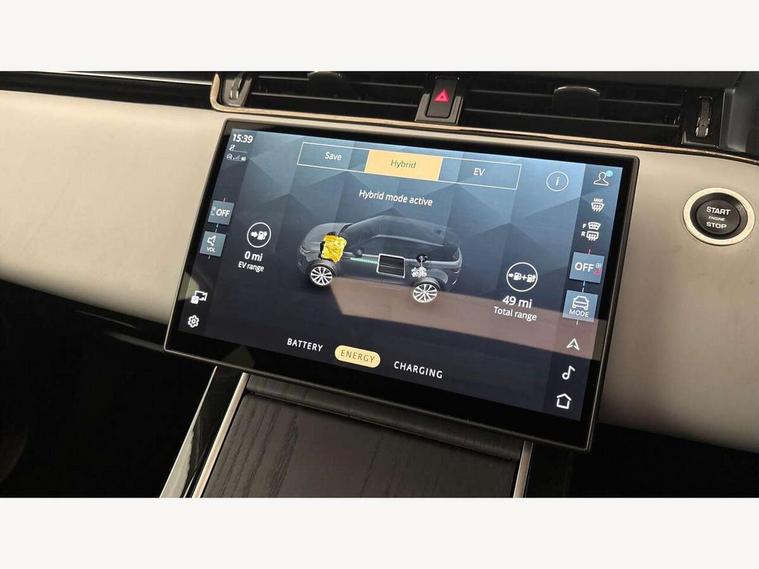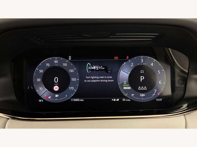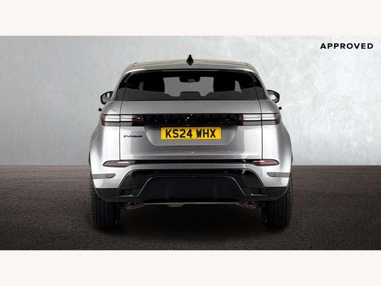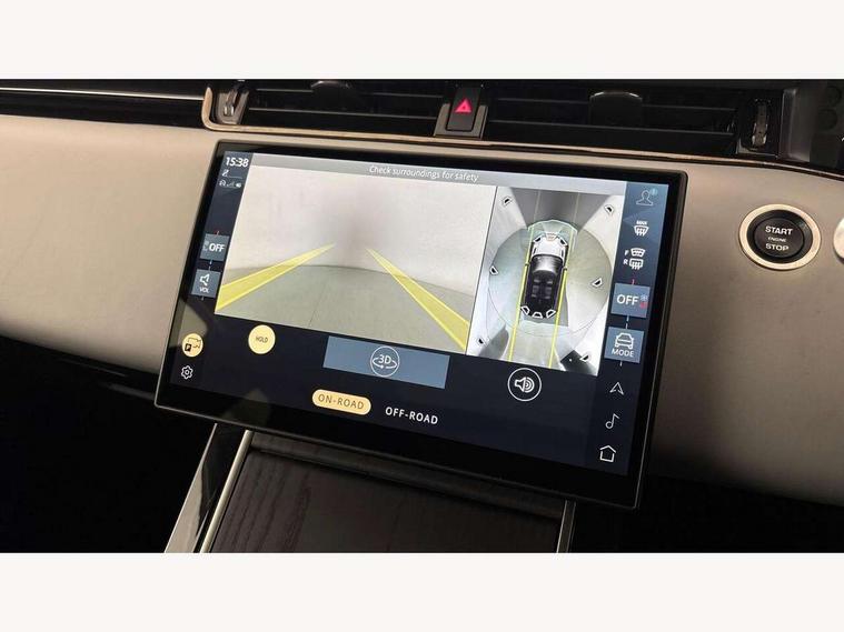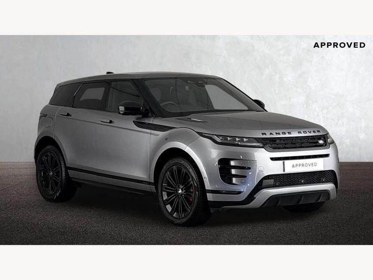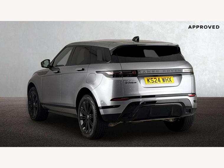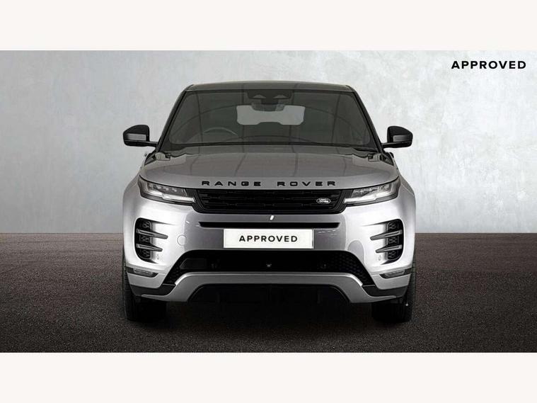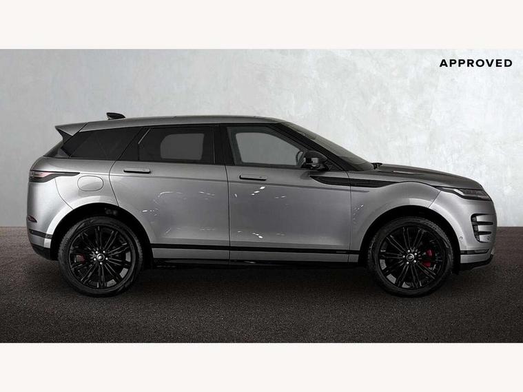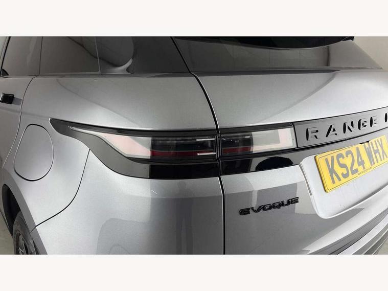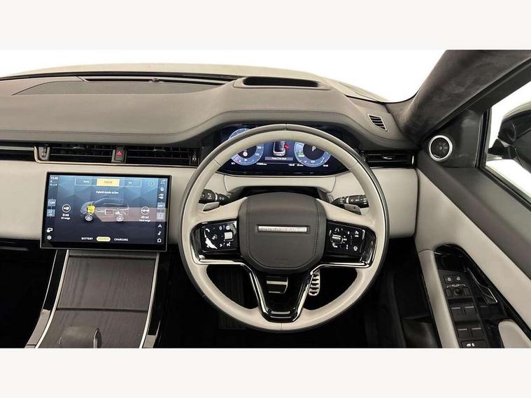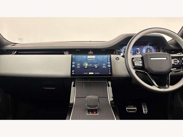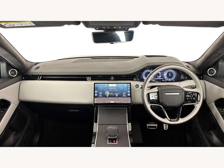 11.4" touch screen, 3D 360 degree surround camera with wade sensing, Adaptive cruise control, Android Auto, Apple car play, Blind spot assist, Bluetooth connectivity, Brake pad wear indicator warning light, Driver condition monitor, eCall emergency system, Eco mode, Electronic power assisted steering (EPAS), Front and rear parking aid, Head up Display, InControl remote, Interactive driver display, Land Rover InControl apps, Lane keep assist, Pivi pro connected includes diamond pivi variant, smart settings, connected navigation pro, nuance speech licence, Powered tailgate/boot lid, Rear collision monitor, Rear traffic monitor, Traffic sign recognition with adaptive speed limiter, Voice control system, Wireless device charging, All terrain progress control, Configurable dynamics, Electric rear axle drive, Home charging cable, Large fuel tank, Passive suspension, Public charging cable, Terrain Response 2, Digital Audio Broadcast radio-DAB, Steering wheel mounted controls, Acoustic laminated windscreen, Auto headlights, Automatic headlight levelling, ClearSight interior rear view mirror, Electric windows with one touch open/close and anti trap, Flush deployable exterior door handles, Front and rear recovery eyes, Front fog lights, Heated rear window with timer, Heated washer jets, Heated windscreen, Pixel LED headlights with signature DRL and LED tail Lights, Power fold, auto-dimming, heated door mirrors with approach lights and auto dimming driver side, Rain sensing windscreen wipers, Range rover branding illuminated metal tread plates in loadspace and row 1 with brand name script and metal in row 2, Rear animated directional indicators, Rear fog lights, Rear side wing doors, Rear wiper, Side repeater indicators in mirror, Sliding panoramic roof with powered sunblind, Tailgate spoiler, Third brake light, Winter wiper park position, 14 way driver memory electric front seats with 2 way manual headrests + 4 way lumbar support, bolsters, 40:20:40 split folding rear seats with centre headrest and armrest, Ambient interior lighting, Bright metal pedals, Cabin Air Purification plus, Configurable cabin lighting, Customer configurable single point entry, Electrically adjustable steering column with memory function and easy entry/exit, Front and rear cupholders, Heated and cooled front seats, Heated rear seats, Heated steering wheel, Isofix system on outer rear seats, Overhead lighting console, Overhead stowage for sunglasses, Passive front head restraints, Premium carpet mats, Rear air vents, Rear head restraints, Satin chrome gearshift paddles, Single passenger seat, Sunvisors with illuminated vanity mirrors, Twin sliding front centre armrest, Online pack with data plan - Evoque, Power socket pack 2 - Evoque, 3 rear 3 point seatbelts, Anti-lock braking system (ABS), Brake hold function, Customer configurable autolock, DSC - Dynamic Stability Control, Electronic brake force distribution, Electronic parking brake, Electronic traction control, Emergency braking, Front and rear seatbelt reminder, Hill descent control, Hill launch assist, Low traction launch, Occupant protection assist, Passenger seat occupant detector, Power operated child locks, Roll stability control, Six airbags - Driver and passenger airbags/driver knee airbag/front side airbag and curtain airbags, Torque vectoring brake, Tyre pressure monitoring system, Alarm, Immobiliser, Intrusion sensor, Keyless entry, Locking wheel nuts, All season tyres,