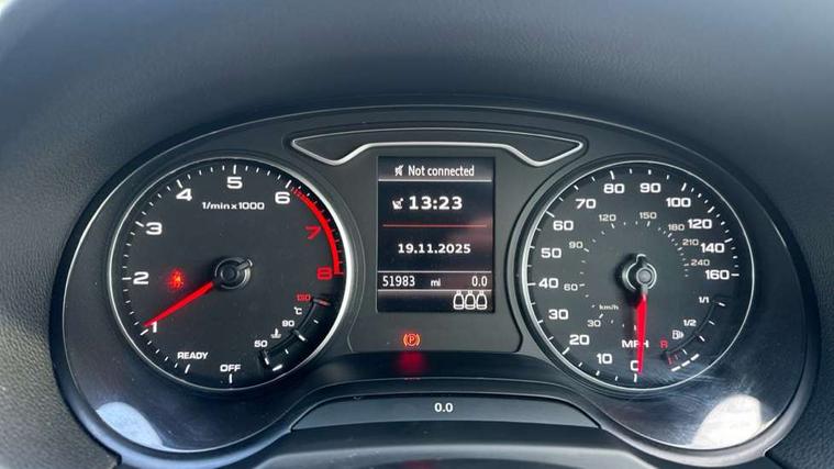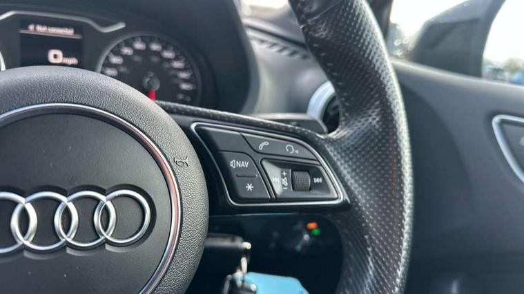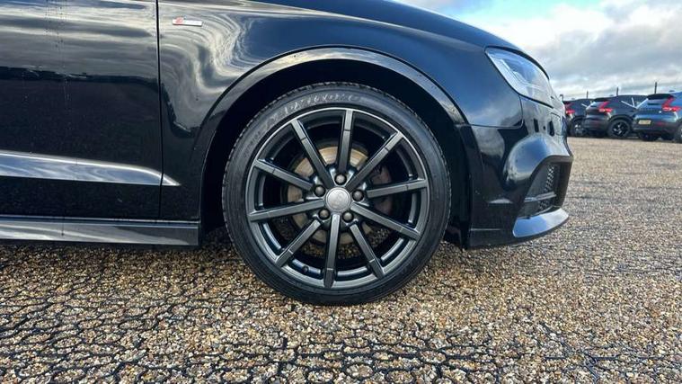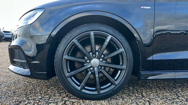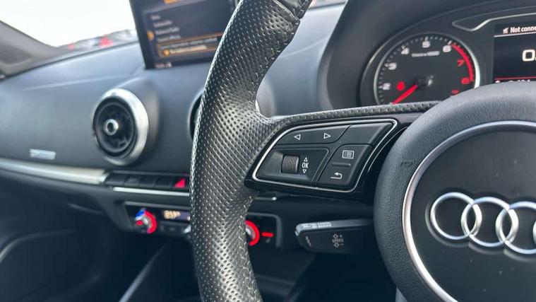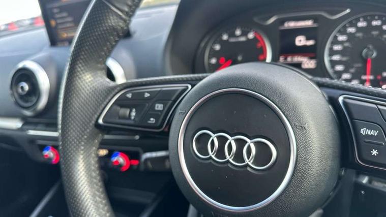 Audi connect, Audi drive select, Audi smartphone interface, Bluetooth interface, Colour driver's information system display, SD card based satellite navigation system, Service interval indicator, Voice control system, 2 USB ports, Audi music interface, Aux-in socket, CD player, DAB Digital radio, MMI radio plus with 7" colour MMI screen and MMI controller, Automatic lights and wipers, Black door mirrors, Black rear diffuser, Body colour roof spoiler, Chrome exhaust tailpipes, Electric operated/heated door mirrors, Front and rear electric windows, Heated rear window, Heated windscreen washer jets, LED daytime running lights, Privacy glass, S Line body styling, 3 adjustable rear headrests, 3 spoke flat bottomed multi-function leather steering wheel, 4 lashing points to secure luggage, Adjustable front armrest, Black cloth headlining, Driver/passenger sunvisors, Dual zone electronic climate control, Front and rear interior lights with delay, Front sports seats, Front/rear floor mats, Height/depth adjustable steering column, Illuminated door sills, Illuminated glovebox, ISOFIX child seat preparation+airbag deactivation, Jack and tool kit, Stainless steel pedals, Storage compartment in centre console, Storage compartments in doors, Storage under driver's seat, Black styling pack - A3/S3, LED interior light pack - A3/RS3, Non smoking pack - A3, Storage and luggage pack - A3/RS3, 3 point seatbelts on all seats, ABS/EBD, ASR, Curtain airbags, Driver and passenger side airbags, Driver/Front Passenger airbags, Drivers knee airbag, EDL, Electromechanical parking brake, ESC - Electronic Stability Control + traction control, Front passenger airbag deactivation, Seatbelt warning, Tyre pressure warning, Warning triangle and first aid kit, Anti theft alarm, Anti-theft wheel bolts, Immobiliser, Remote control central locking, Aluminium air vent surrounds, Aluminium trim elements, Space saver spare wheel,