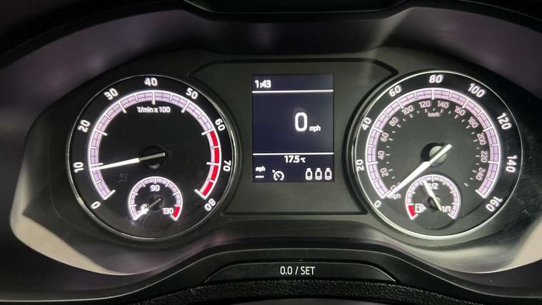 Driver alert system, Driver fatigue sensor, Driver profile selection, Electro-mechanical PAS, Outside temperature gauge, Service interval indicator, Start/stop system with regenerative braking, DAB radio with Bluetooth, SD card slot, USB connection, Acoustic glass, Aero front windscreen wipers with intermittent function, Automatic headlight control system, Body colour door mirrors and handles, Body coloured bumpers, Electric front and rear windows with child proof lock, Electrically adjustable heated folding and auto dimming door mirrors with boarding spots, Heated rear windscreen, LED rear lights with high functionality, Light assistant (coming/leaving home/tunnel light), Privacy glass, Safety reflectors on front doors, Third brake light, 1.5 litre bottle holders in driver and front passenger door panels, 12V socket in boot, 12v socket in front centre armrest with storage compartment and rear air vents, 2 Folding hooks and nets in boot, 2 Front readings lights for driver and passenger, 3 rear height adjustable headrests, 4 foldable roof handles with rear coat hooks, 4 lashing points on luggage floor, Backrest release, Cargo elements in boot, Chrome inner door handles, Driver and passenger seats height adjust, Dual zone climate control, Folding tables on the front seat backrests, Front seat and rear pockets, Height adjustable front three point seats belts with tensioners, Height/reach adjust steering wheel, Ice scraper, Illuminated and cooled glovebox, Illuminated luggage compartment, Isofix child seat preparation outer rear, Manual lumbar support for front seats, Net programme in boot, Pen holder, Pollen filter, Rear boot cover, Rear reading lights, Rear seats fixed folding and divided 60:40, Removable LED torch in the boot, Safety vest holder, Storage box in upper central dashboard closed, Storage net on centre console passenger side, Sunglasses storage compartment, Sunvisors with illuminated vanity mirrors, Umbrella under passenger seat, Airbags - Front side, head, knee and curtain, Automatic door unlocking in case of crash, Automatic fuel cut off in case of crash, Driver airbag, Electronic parking brake with auto hold function, Emergency rear braking signal, ESC including ABS, MSR, ASR, EDS, HBA, DSR, RBS, MKB and traction control, Front assist radar scanning of the space in front of the car with automatic braking, Hill hold control, Passenger airbag with switch-off function, Pedestrian monitor, Seatbelt reminder signalisation and pretensioner for all seats, Three point seatbelts rear, Two tone horn, Tyre pressure display, Tyre pressure monitor, Alarm with interior monitoring, back up horn and tilt sensor with safe function, Electronic engine immobiliser, Remote central locking with 2 remote folding keys, Chrome framed air vents, Storage on wheel cover,