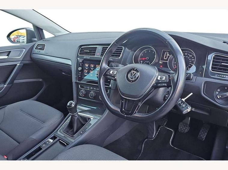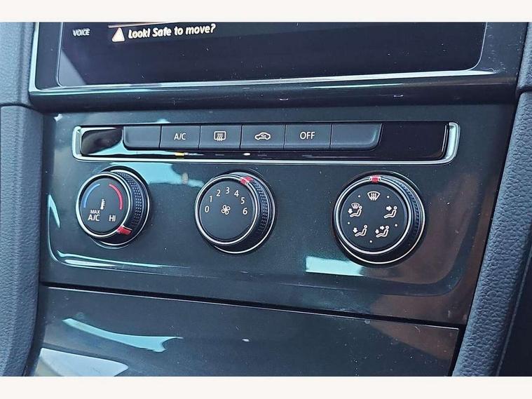 'Lights On' Reminder warning buzzer, ACC - Adaptive cruise control with front assist, forward collision warning, distance monitoring, city emergency brake and speed limiter, Bluetooth telephone and audio connection for compatible devices, Brake pad wear indicator warning light, Driver alert system, Driver profile selection, Driving Mode Selection with four preset modes - Eco, normal, sport or individual modes, Instrument cluster in white, Multifunction computer with visual gear change recommendation for fuel consumption, Power assisted speed sensitive electro-mechanical steering, Push tank flap, Speed limit display, Speedo, rev counter, electronic odometer, trip, service interval display, exterior temperature and fuel gauge, Stop/start system, Warning buzzer and light for front seatbelts unfastened, Battery regeneration during braking, XDS electronic differential lock, Composition media system, DAB Digital radio receiver, Driver Personalisation profile selection, MP3/WMA compatability, Multi device interface (MDI) with USB connection, Personalisation 1.1 profile for media, Premium USB cable in choice of either Apple or Android smartphone compatibility, SD card slot, SMS Functionality, USB and SD card connectivity, Black front air intake and radiator grille with chrome insert, Black rear diffuser, Body colour bumpers, Body colour door handles, Body colour door mirrors with integrated indicators, Dusk sensor + automatic driving lights, Electric front windows, Electric rear windows, Electrically adjustable and heated door mirrors, Fully galvanised body, Heated rear windscreen, Hidden exhaust pipe, High level 3rd brake light incorporating LED Technology, LED daytime running lights, LED front fog lights with static cornering light function, Rear fog lamp, Rear tinted glass 65% light absorbing from B pillar backwards, Rear window aerial, Rear window wash/wipe with intermittent wipe, Reflectors in all doors, Tailgate with integrated rear roof spoiler, Windscreen wipers/ intermittent wipe + 4 position delay, 12V socket in luggage compartment, 3 rear headrests, 4 load lashing points in luggage compartment, 60/40 split folding rear seat backrest, Auto fold down lever in rear seat backrest, Bag hook in luggage compartment x 2, Cooled glovebox, Cupholder cover, Dust/pollen filter, Front and rear reading lights incorporating LED technology, Front centre armrest with storage compartment and two rear air vents, Front seat back storage pockets, Grab handles front x 2, rear x 2 with integrated coat hooks, Height and reach adjustable steering wheel, Illuminated vanity mirrors, Instrument lighting white adjustable panel illumination, Interior light delay, Isofix preparation for 2 rear child seats, Load through provision with rear centre armrest and cupholders x2, Luggage compartment lighting, Overhead storage box, Passenger underseat drawer, Pearl grey headlining, Storage box in luggage compartment, Storage compartment in roof console with cover, Storage compartments in centre console, Storage compartments in front doors, Storage compartments in rear doors, Stowable luggage compartment cover, Sun visors, Variable boot floor, height adjustable and removable, Convenience Pack - Golf, Light and Sight pack - Golf, Mirror pack - Golf, 3 rear three point seatbelts, Airbags - Driver's and front passenger's, curtain airbag, Driver's knee, front side impact and passenger's airbag deactivation switch, Anti-lock Braking System (ABS) with Hydraulic Brake Assist (HBA), Automatic post collision braking system, Child locks on rear doors, Driver/Passenger optimised head restraints, Electronic parking brake with auto hold, Electronic stability control (ESC) including Electronic differential lock (EDL) and ASR (Traction control) with deactivation via infotainment system, Front ventilated disc brakes and rear disc brakes, Pre crash preventive occupant protection, Three point height adjustable front seatbelts with tensioners, Tyre pressure loss indicator, Alarm with interior protection and deactivation via infotainment system, Electronic engine immobiliser, Remote central locking with 2 remote folding keys, Brushed dark silver decorative inserts in dash and door panels, Chrome plated air vent surround, Chrome plated electric mirror adjustment light switch surround, Polar night black centre console, Steel space saver spare wheel,