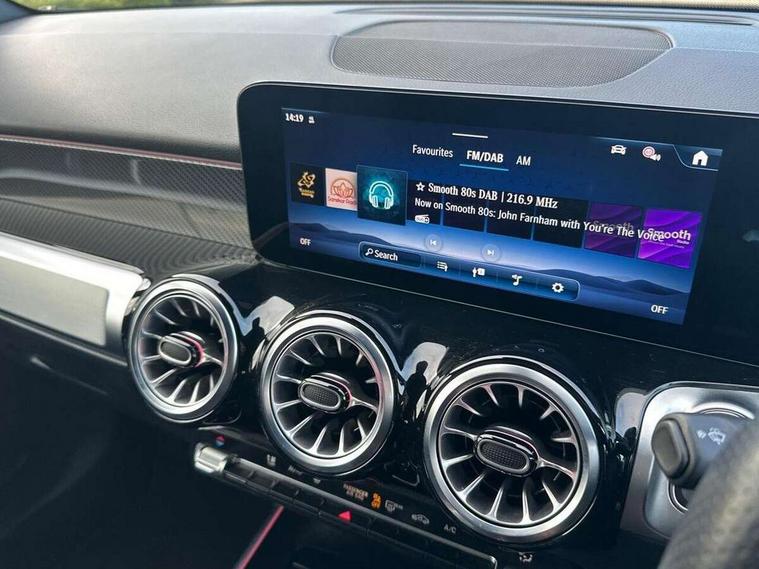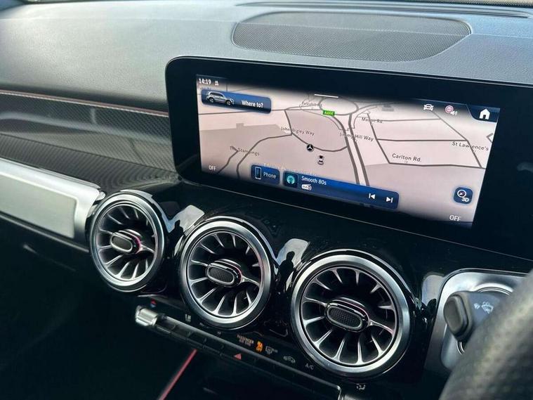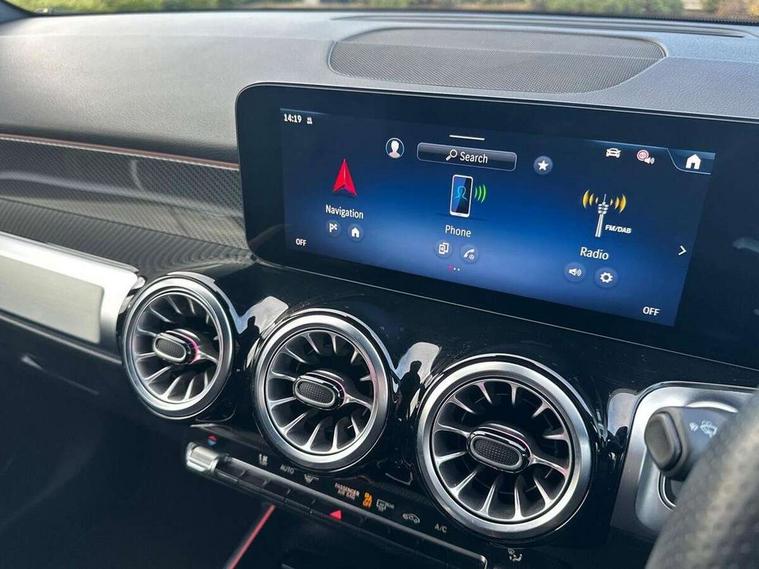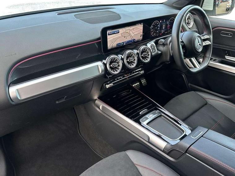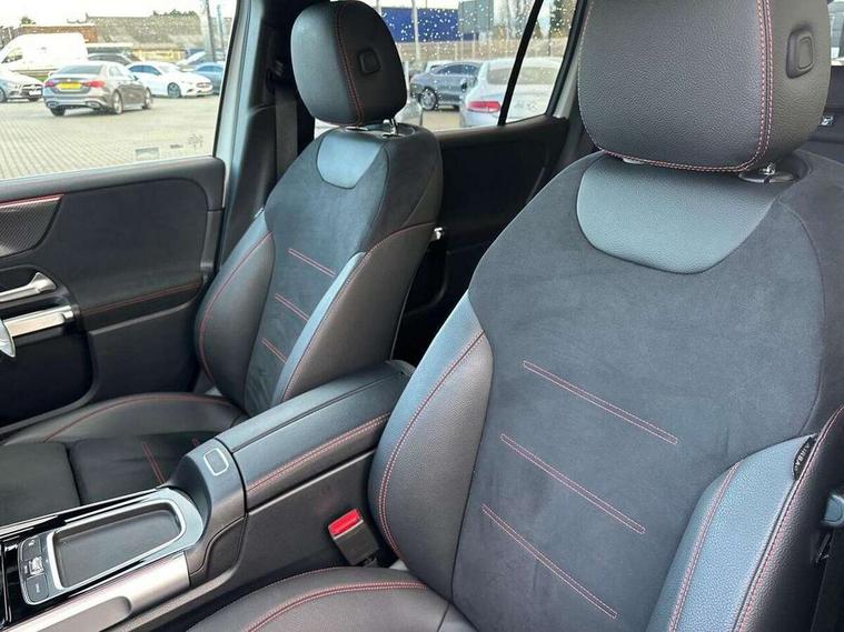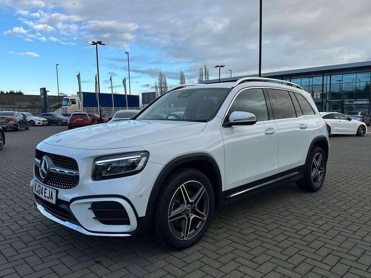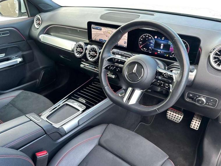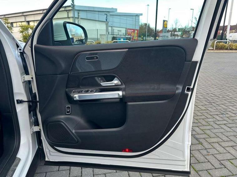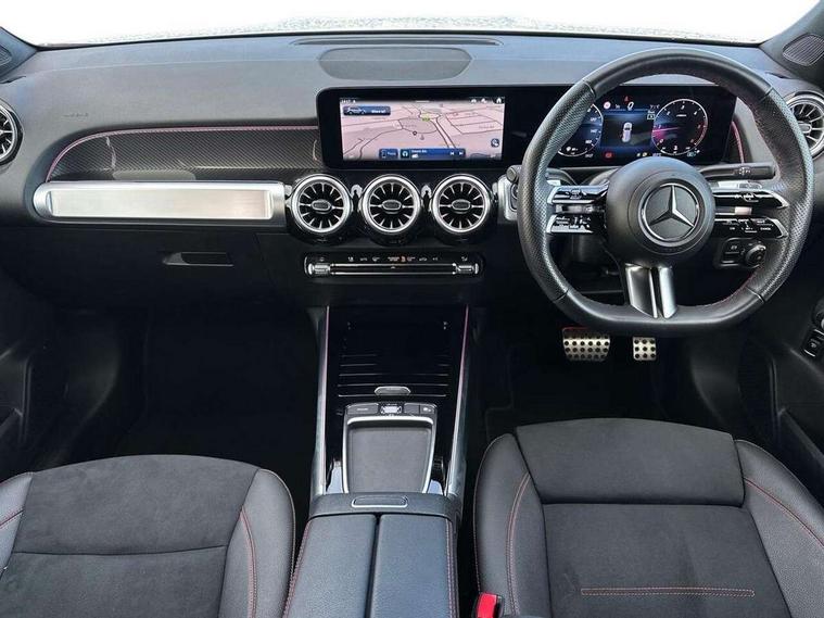 10.25 inch touchscreen central media display, 10.25" Digital instrument cluster display screen, 12 ultrasonic sensors in front and rear bumpers, 180 degree reversing camera with parking guidelines, Assisted parking: reversing backwards into perpendicular and parallel parking spaces, Attention assist - Monitors steering behaviour and long journey fatigue, Bluetooth connection, Brake pad wear indicator warning light, Car wash mode, Convenience opening and closing, Direct steering, DYNAMIC SELECT with a choice of driving modes (ECO, Comfort, Sport and Individual), ECO start/stop function, Engine start/stop button, Fluid level warning indicator for fuel, oil, coolant and washer fluid, Hard disk navigation, Hey Mercedes Voice activation, Lamp failure indicator, Lane keep assist, MBUX navigation premium, Mercedes me connect including emergency call system, accident recovery, breakdown and maintenance management, Mercedes me remote services, Outside temperature gauge, Owners manual and service booklet in English, Pre-installation of private car share, Preinstallation for parking damage notification, Radio aerial integrated into front and rear windshields, Remote boot closing, Service indicator (ASSYST), Smartphone integration with Apple CarPlay and Android auto, Speed limit assist, Tailgate, Trip computer in multifunction display with current consumption indicator, Ultrasound sensors - positioned in the handle of the tailgate, Wireless charging, Comfort suspension with ride height lowering, Rear axle multi-link, 1 USB-C port in the oddments compartment (Charge + Data transfer), 2 USB-C ports for the rear on the centre armrest (Charge only), 2 USB-C ports under the front centre armrest (Charge + Data transfer), DAB digital radio tuner, MBUX multimedia system, Mercedes Benz sound system (100 W) with 6 speakers, Pre installation for Mercedes Benz Link, Adaptive brake lights, Adaptive high beam assist, AMG front apron with front splitter in the colour of the vehicle with chrome trim element, AMG rear apron with visible tailpipe trim and chrome trim element, AMG specific/dual flow exhaust pipes in chrome (non-functional), Auto dimming rear view mirror, Beltline trim and window line trim strip in high gloss aluminium, Black grained side sill trim with chrome inlay, Body coloured door handles, Electric adjustable and heated door mirrors with integrated LED side indicators, Electric folding door mirrors, Front and rear electric windows, Headlamp assist automatic headlamp activation, Heat insulating dark-tinted glass starting from B-pillar, Heated glass rear windscreen + timer control, High level LED third brake light, Interior mirror with black reading lamps and frameless, LED high performance headlamps with integrated LED daytime running lights, LED tail lamp, Polished aluminium roof rails, Radiator grille as a diamond grille with chrome pins and central Mercedes star, Rain sensor windscreen wipers, Rear fog lamp, Rear side wing doors, Rear wiper, Single louvre in matt grey with chrome inserts and black highlights, Two visible tailpipe trim elements exhaust, Ultrasonic sensors - positioned in the front and rear bumpers, Wheel arch liners in the colour of the vehicle, 12V socket in the oddments compartment, 3 seat bench in 2nd row, 3 twin spoke flattened multifunction steering wheel in nappa leather - horizontal twin spoke in high gloss black, vertical twin spoke in silver chrome, 4 way adjustable lumbar support, 40:20:40 split folding rear seats, Air vents with silver chrome surrounds, AMG floor mats, AMG sports pedals with brushed stainless steel surfaces and black rubber studs, Automatic child seat recognition sensor, Black roof lining, Door handles with chrome inserts, Fluorescent jacket, Front and rear headrests, Front centre armrest with stowage, Galvanised steering wheel gearshift paddles in silver chrome, Handle recess lighting, Heated front seats, Height adjustable head restraints, Height/reach adjustable steering column, Interior lighting - 64 colour Ambient lighting, Luggage net on driver/front passenger seat backrest, Single front passenger seat, Sports seats, Stowage compartment with retractable cover, Sun visors with illuminated vanity mirrors, THERMATIC automatic climate control, Third row of seats for two people on rear seat, Twin front cup holders, Two outer rear seat isofix and top tether child seat fixing points, Easy pack tailgate, Interior lighting with light and sight pack - GLB, Seat comfort package - GLB, 3 rear 3 point seatbelts, Active bonnet pedestrain safety measure which detects an impact and raises bonnet by 65mm, Active brake assist includes forward collision warning system with autonomous braking, Adaptive brake assist with hold function and hill start assist, Airbags - kneebag for driver, Anti-lock braking system (ABS) with brake assist, Black seatbelts, Bonnet with power domes, Childproof locks manually operated for rear doors and electrically operated for rear power windows, Crash responsive emergency lighting, Curve dynamic assist, Driver and front passenger head and sidebags, Driver and front passenger windowbags, Dual stage driver and front passenger airbags, Electric parking brake, Electronic stability programme with acceleration skid control, Front and rear seatbelt reminder, Front brake callipers with Mercedes Benz lettering, Front passenger seat occupancy sensor, Perforated front brake discs, Tyre pressure monitoring system, Warning triangle and first aid kit, Guard 360 degree vehicle protection - Anti theft alarm system, tow away protection with visual, acoustic warning and alarm, Interior monitoring system, Keyless Go Access and drive authorisation system, KEYLESS-GO starting function, Remote central locking and crash sensor with emergency opening function, Thatcham category 1 alarm system with immobiliser and interior protection, Vehicle key with KEYLESS GO functionality, Carbon structure trim, 19" AMG 5 twin spoke light alloy wheels aerodynamically optimise