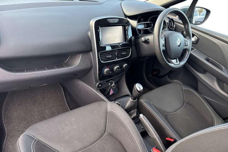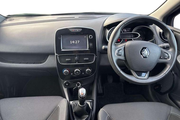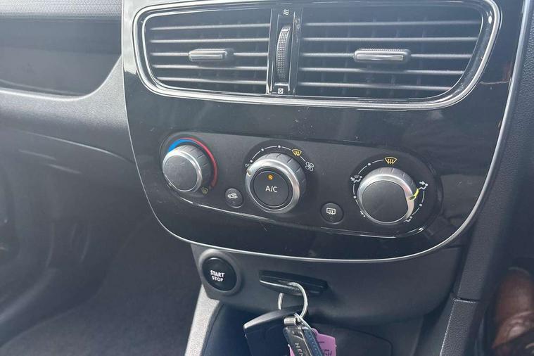 Cruise control + speed limiter, Push button starter, Renault MediaNav with 7" touch screen and Navteq Nav 'n' Go Satellite Navigation, Smartphone cradle, Trip computer, Variable PAS, 4x20W Arkamys radio with bluetooth handsfree and USB, Aux-in socket, Automatic headlights + automatic windscreen wipers, Black door protector with chrome inserts, Black headlamp surrounds, Body colour door handles, Body coloured bumpers, Body coloured rear spoiler, Chrome tailgate decoration, Electric adjustable door mirrors, Electric front windows + one touch + anti-pinch, Front fog lamps, Heated door mirrors, LED daytime running lights, Rear wiper, Variable front intermittent wipers, 12V Accessory socket, 3 rear height adjustable headrests, 60/40 split rear seats, Air recirculation control, Chrome gear knob insert, Chrome interior door handles, Design cloth upholstery, Driver's seat height adjustment, Front cupholders, Front door storage bin, Glovebox, Height adjustable front headrests, Height/reach adjust steering wheel, Isofix system on outer rear seats, Leather steering wheel, Multi function steering wheel, Pollen filter, System for Restraint and Protection SRP-front seats, 3 point seatbelts on all rear seats, ABS+EBD+Brake assist, Driver and passenger front and side airbag deactivation, Driver/Front Passenger airbags, Driver/front passenger side airbags, ESP + Traction control + Understeer control, Front side airbags(head+thorax), Height adjustable driver's seatbelt, Hill start assist, Seatbelt warning, Tyre pressure monitoring system, Anti-drill door locks, Child lock control of rear doors and windows, Deadlocking system, Hands free Renault card, Locking fuel filler cap, RAID (Renault Anti-Intruder Device) with automatic door locking, Remote central locking, Thatcham Cat 2 engine immobiliser, Dark carbon soft touch dashboard, Gloss black air vent surround, Gloss black centre console, Gloss black dashboard inserts,